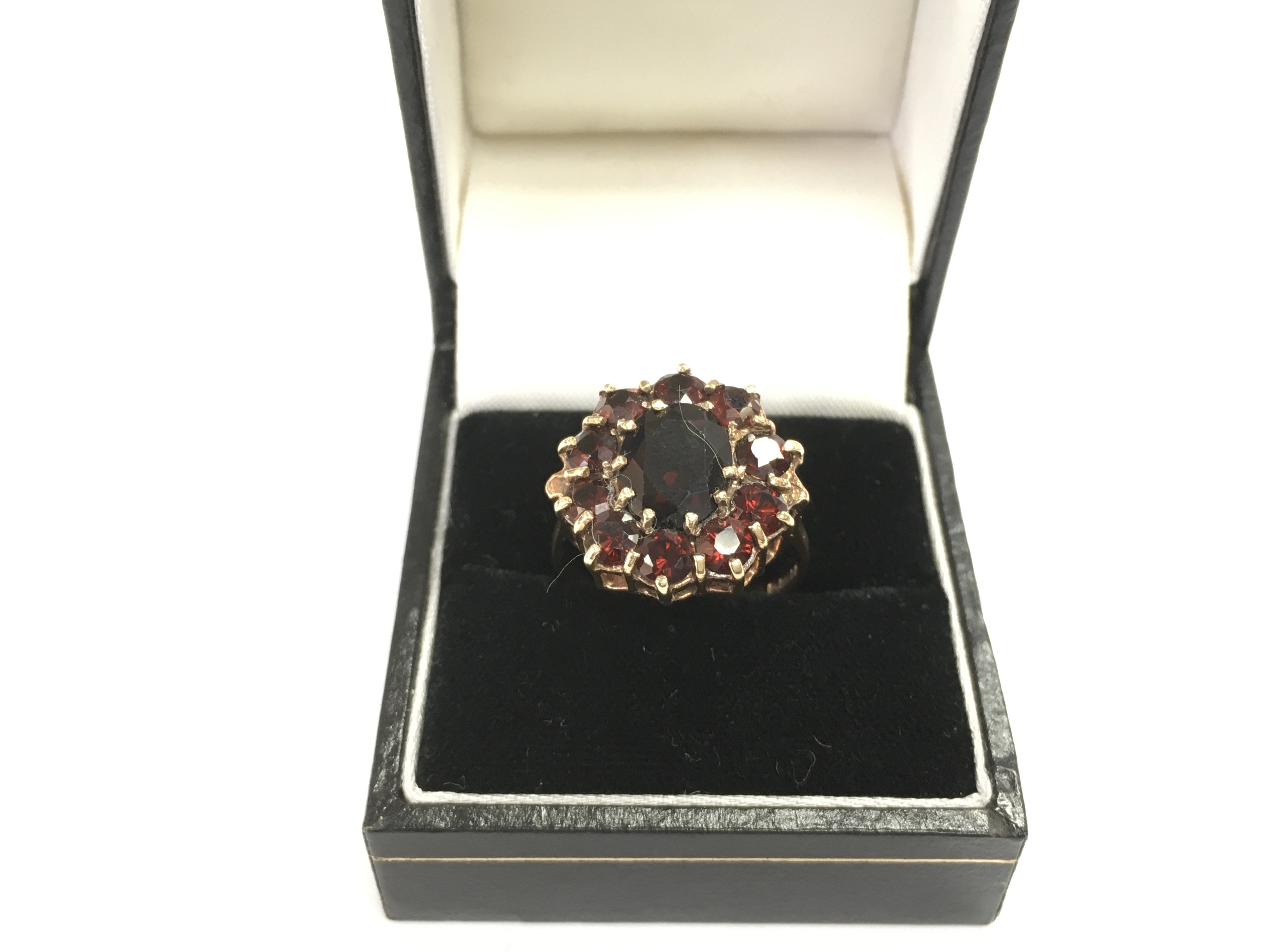 A 9ct gold and garnet cluster ring, approx 3.98g and approx size N. Shipping category A.