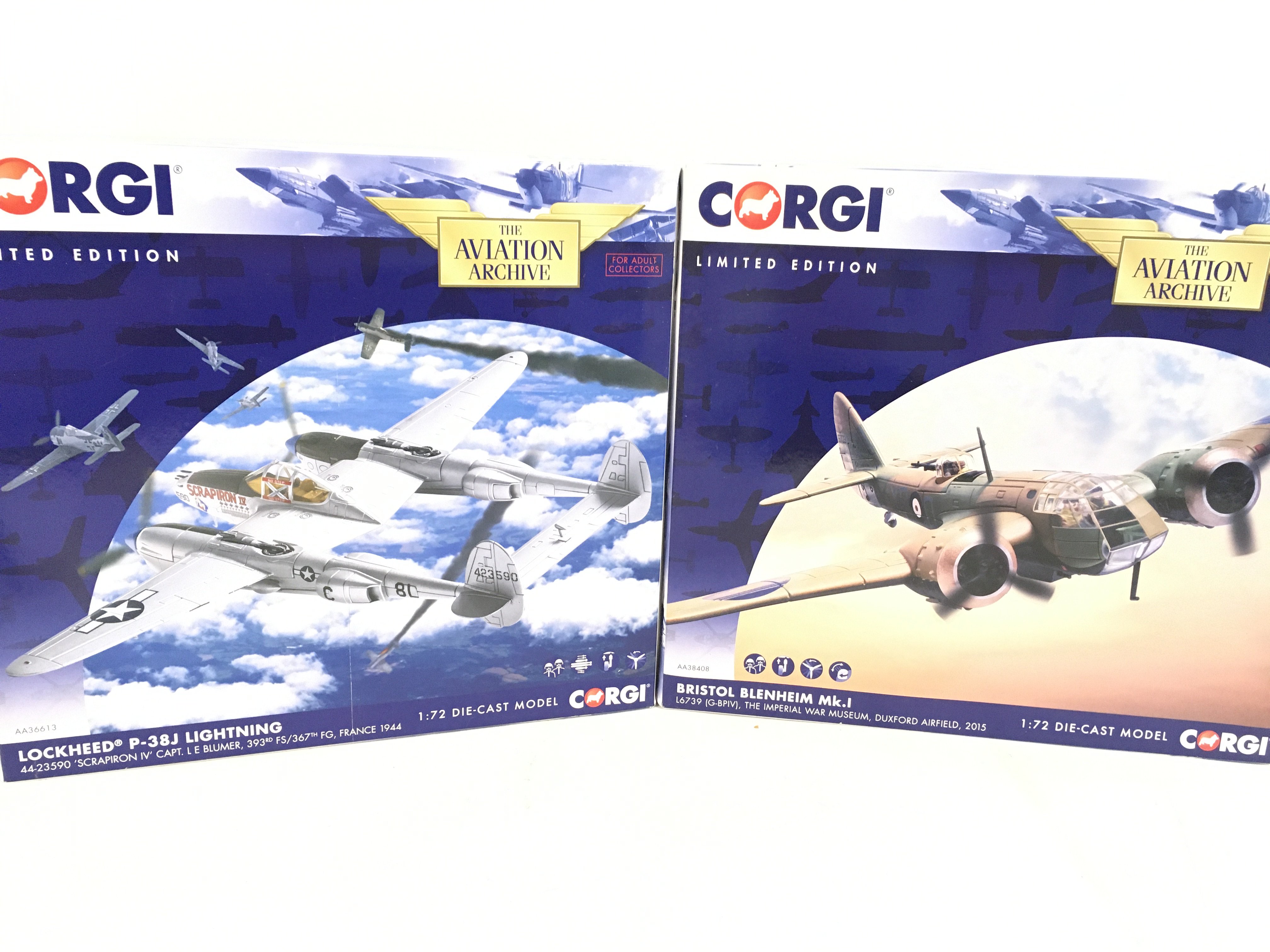 2 X Boxed Aviation Archive Models. A Lockheed P-38J Lightning #AA36613 and a Bristol Blenheim MK.I #AA38408 A/F. (2).