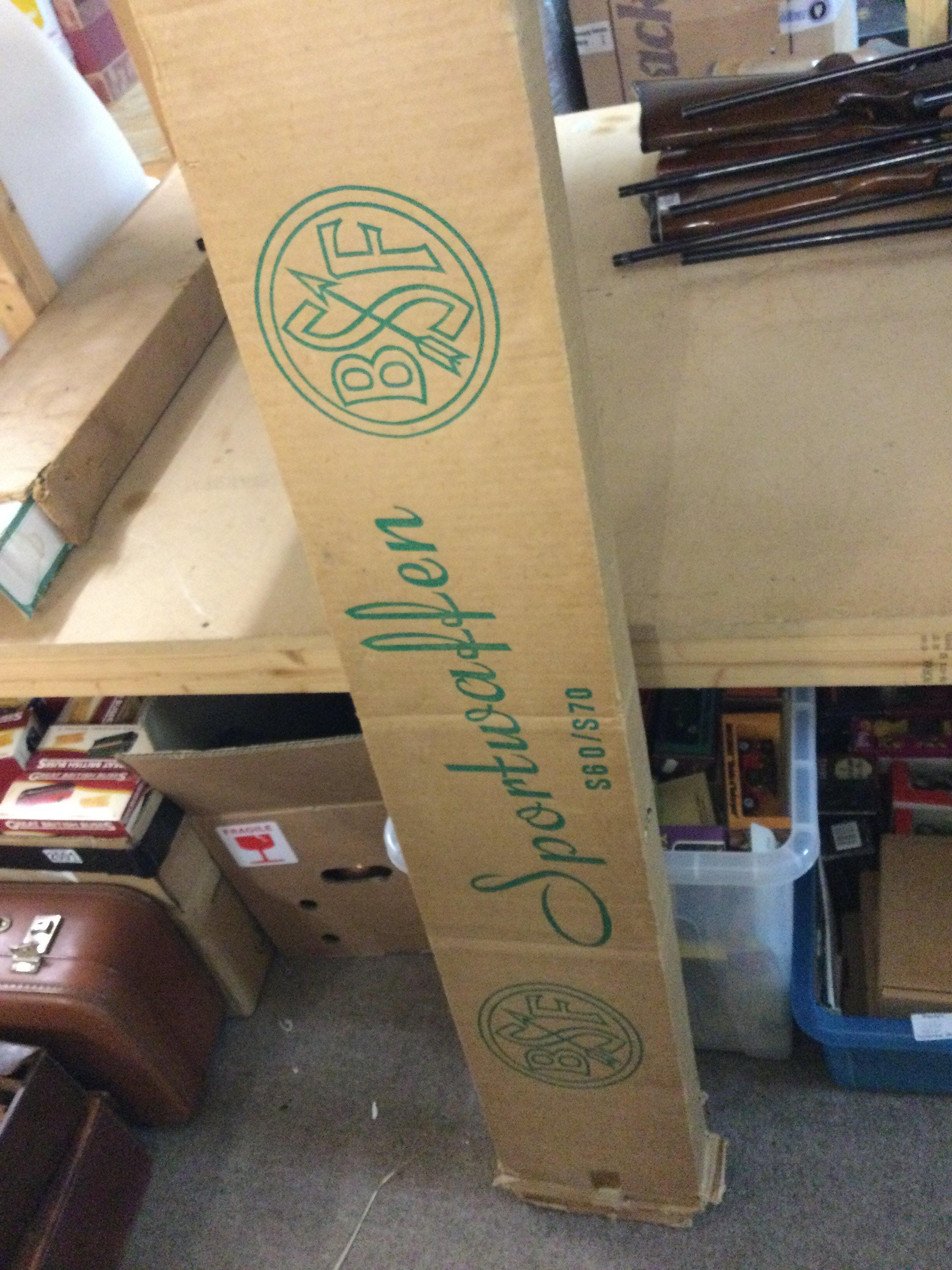 A BSF S70 Boxed vintage 4.5 calibre air rifle, 112cm long. This lot cannot be posted