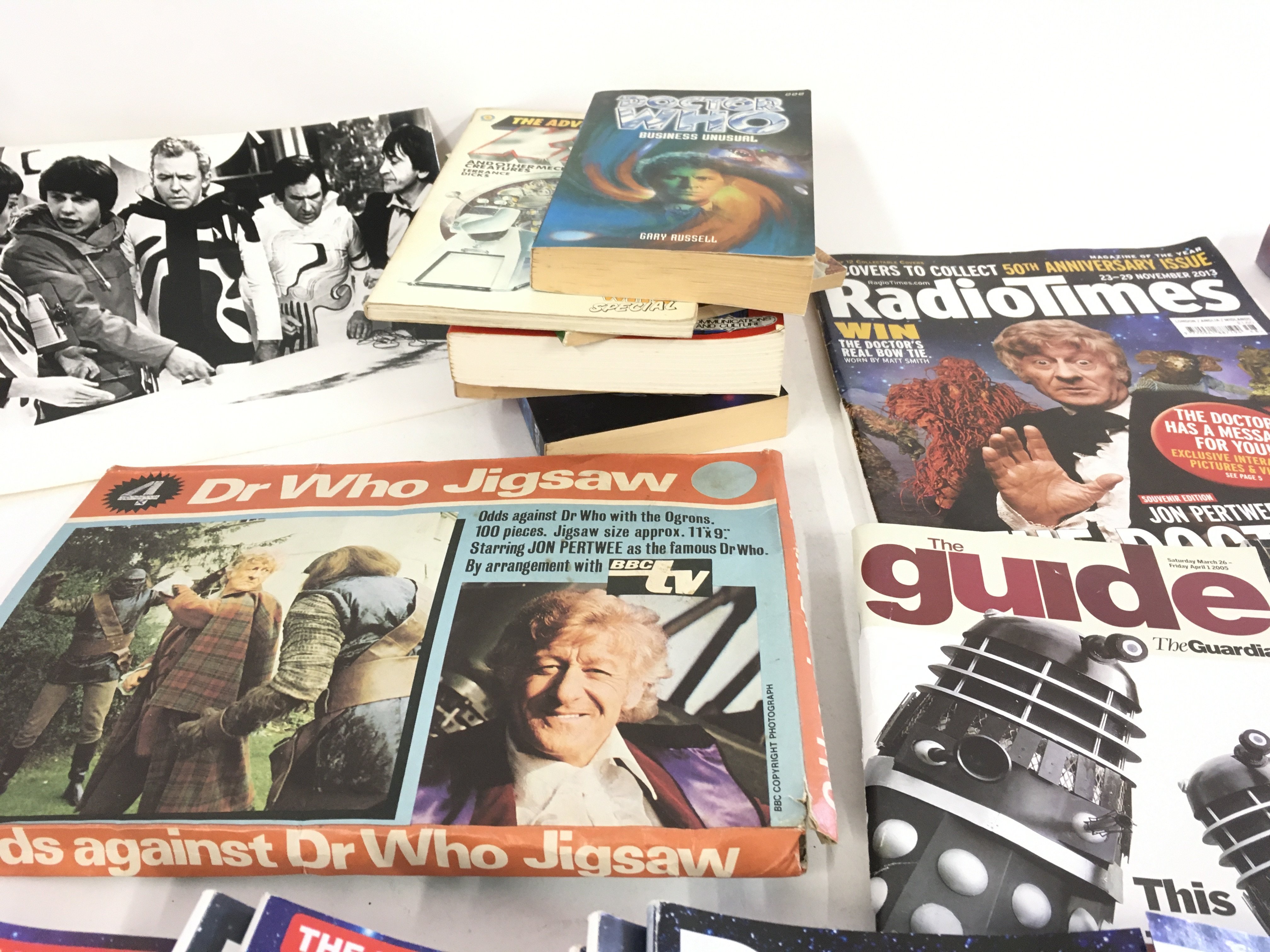 A collection of of Dr.Who books..photos..jigsaw..dvds..and Radio Times magazines with Dr Who articles