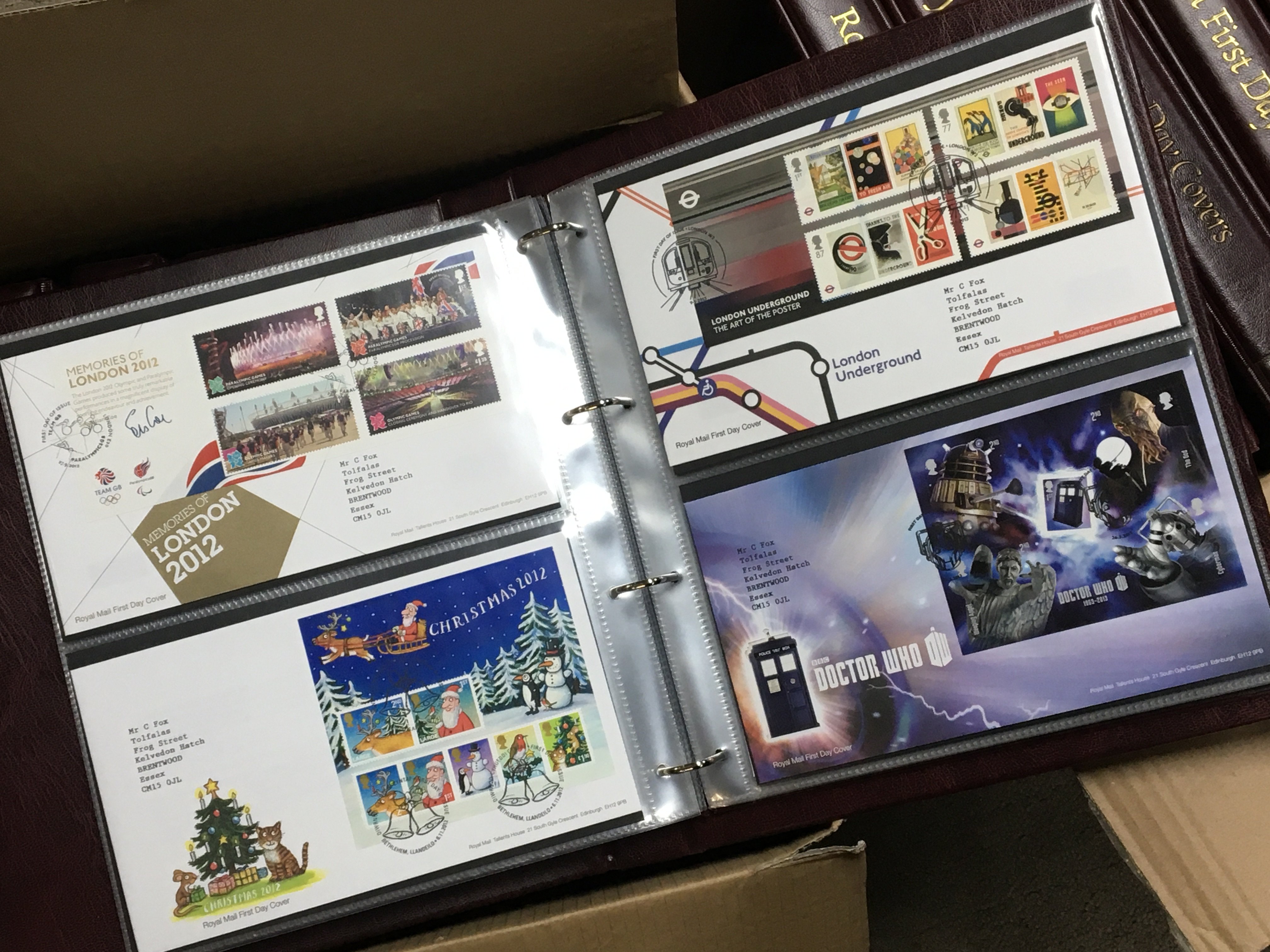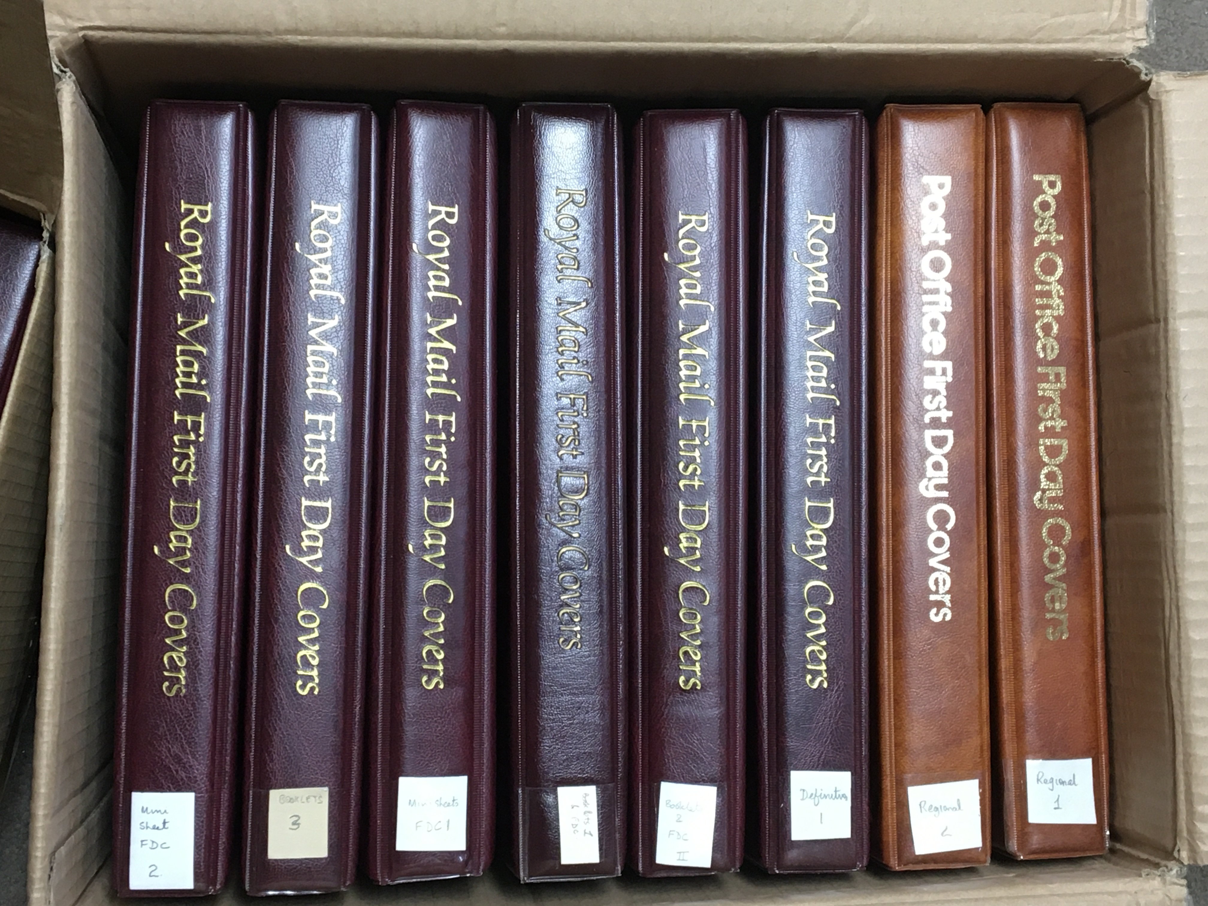 A Collection of first day covers including coin covers Regional 1 and 2 date range 2 July 1973 -April 2000 many with conforming stamp booklets FDC1 mini sheets of unused Pictorial FDCI date range 1979-2007 2008-2014. In two boxes excellent presentation.