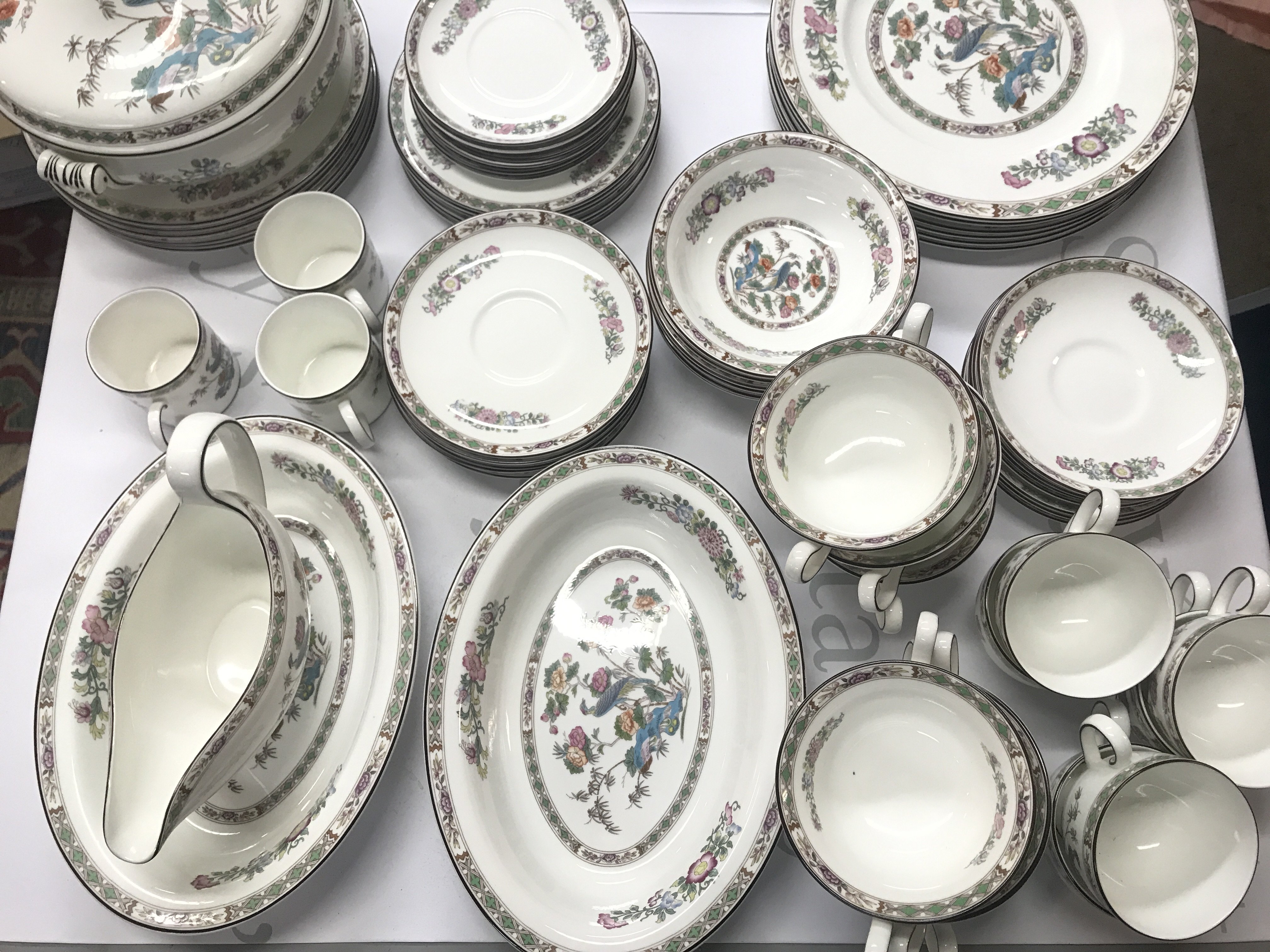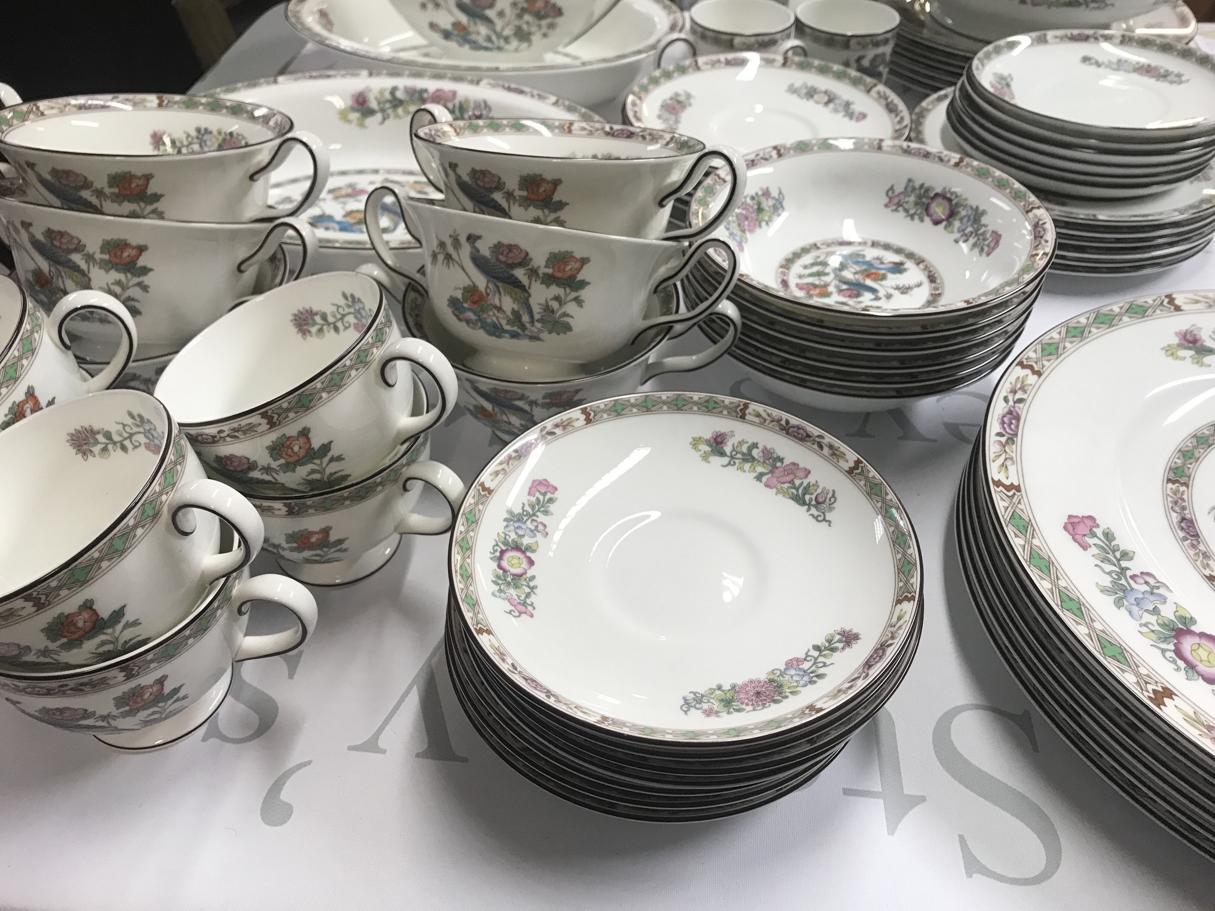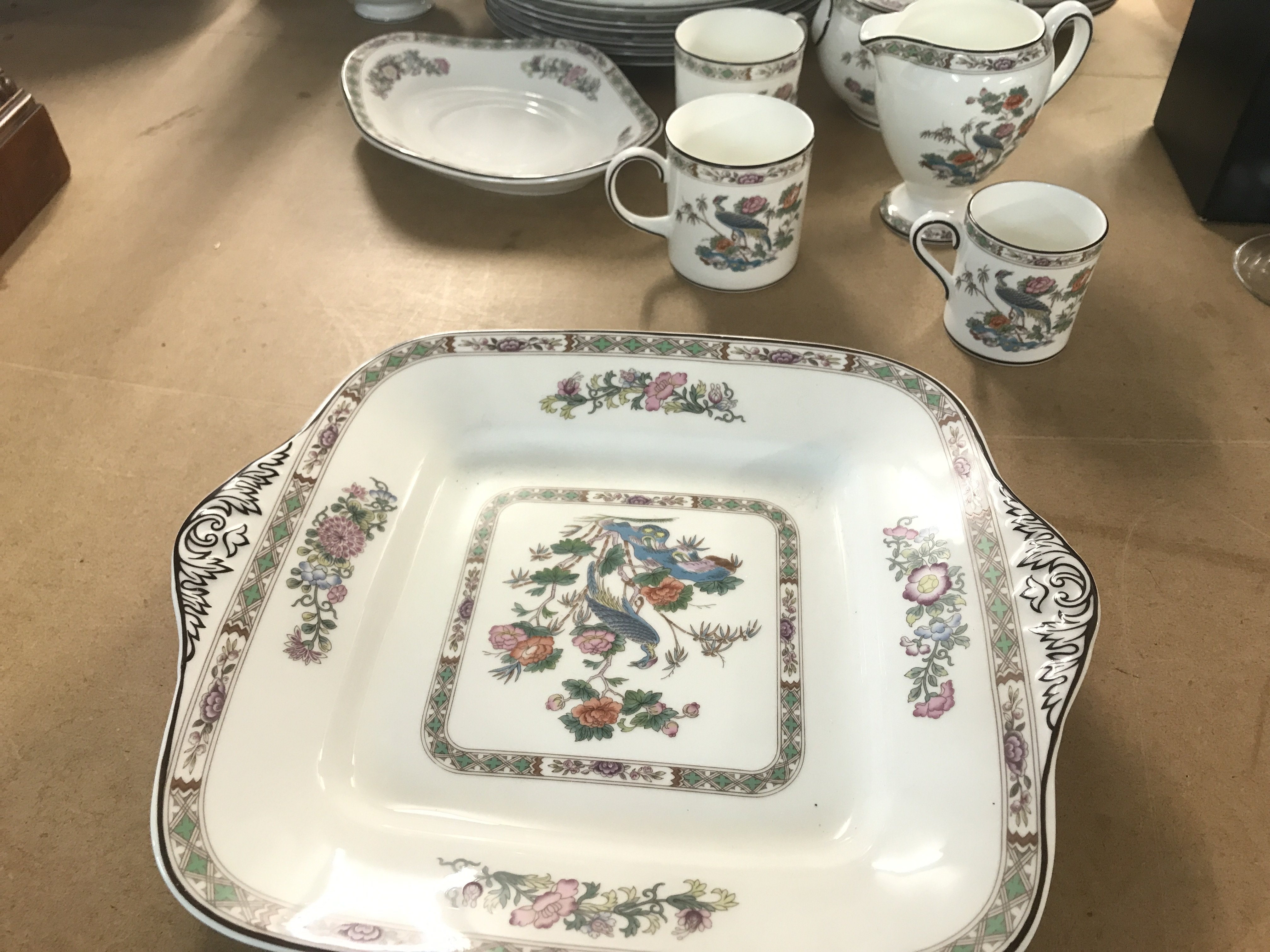 A wedgewood Kutani Crane pattern dinner service. No obvious damage noted. Postage D