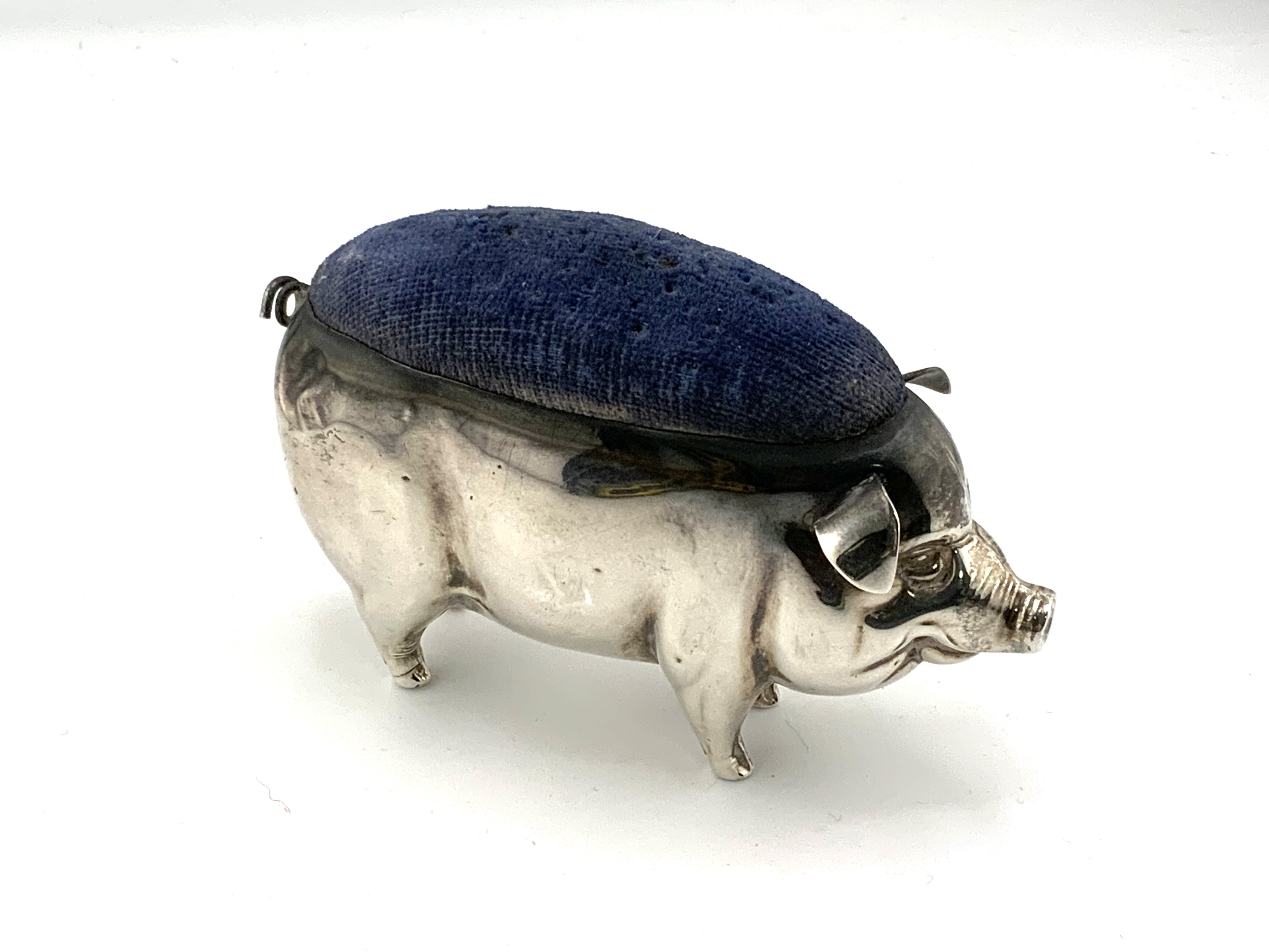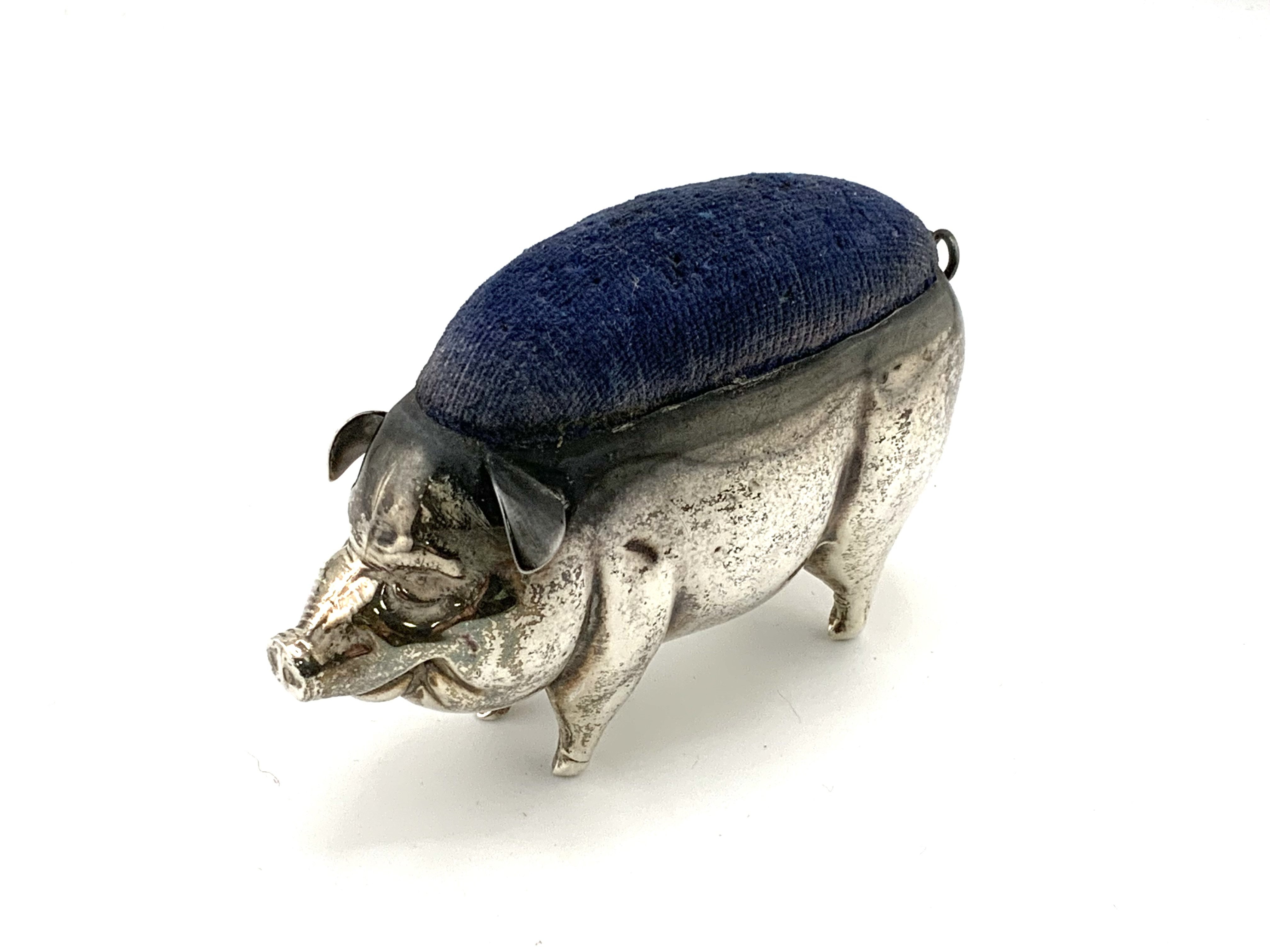 An Edwardian hallmarked silver pig pincushion, marks for Birmingham 1908 (A)