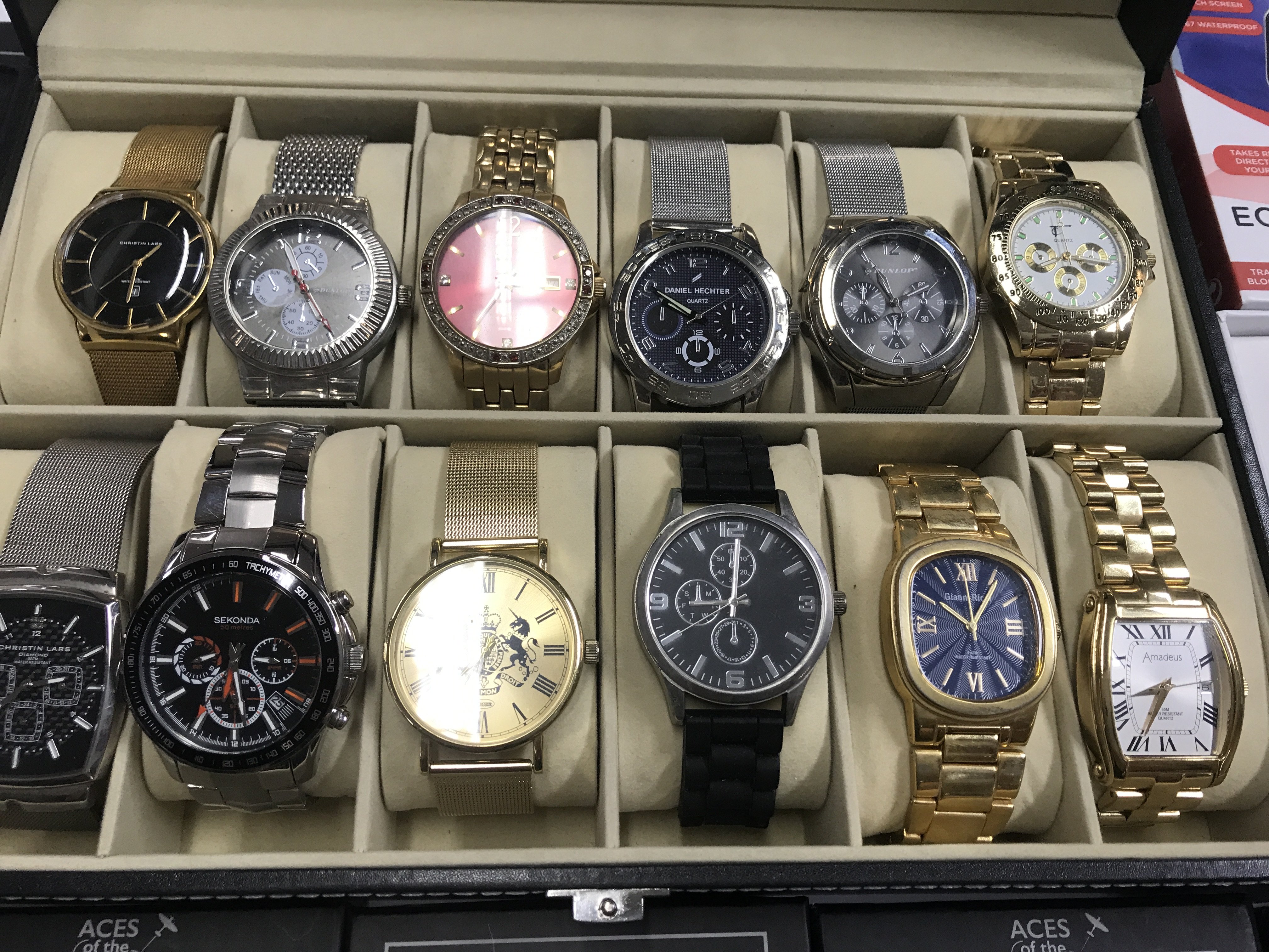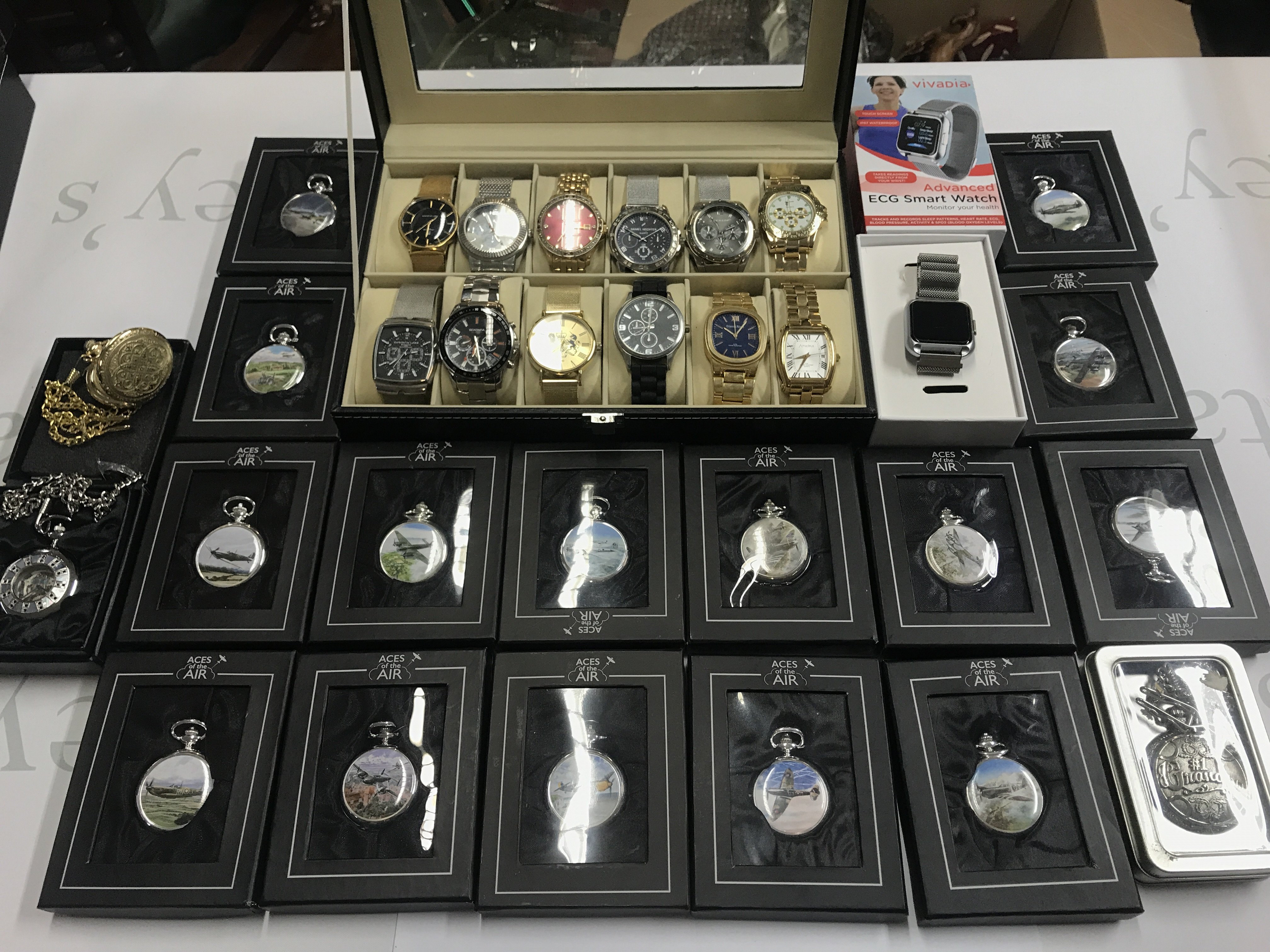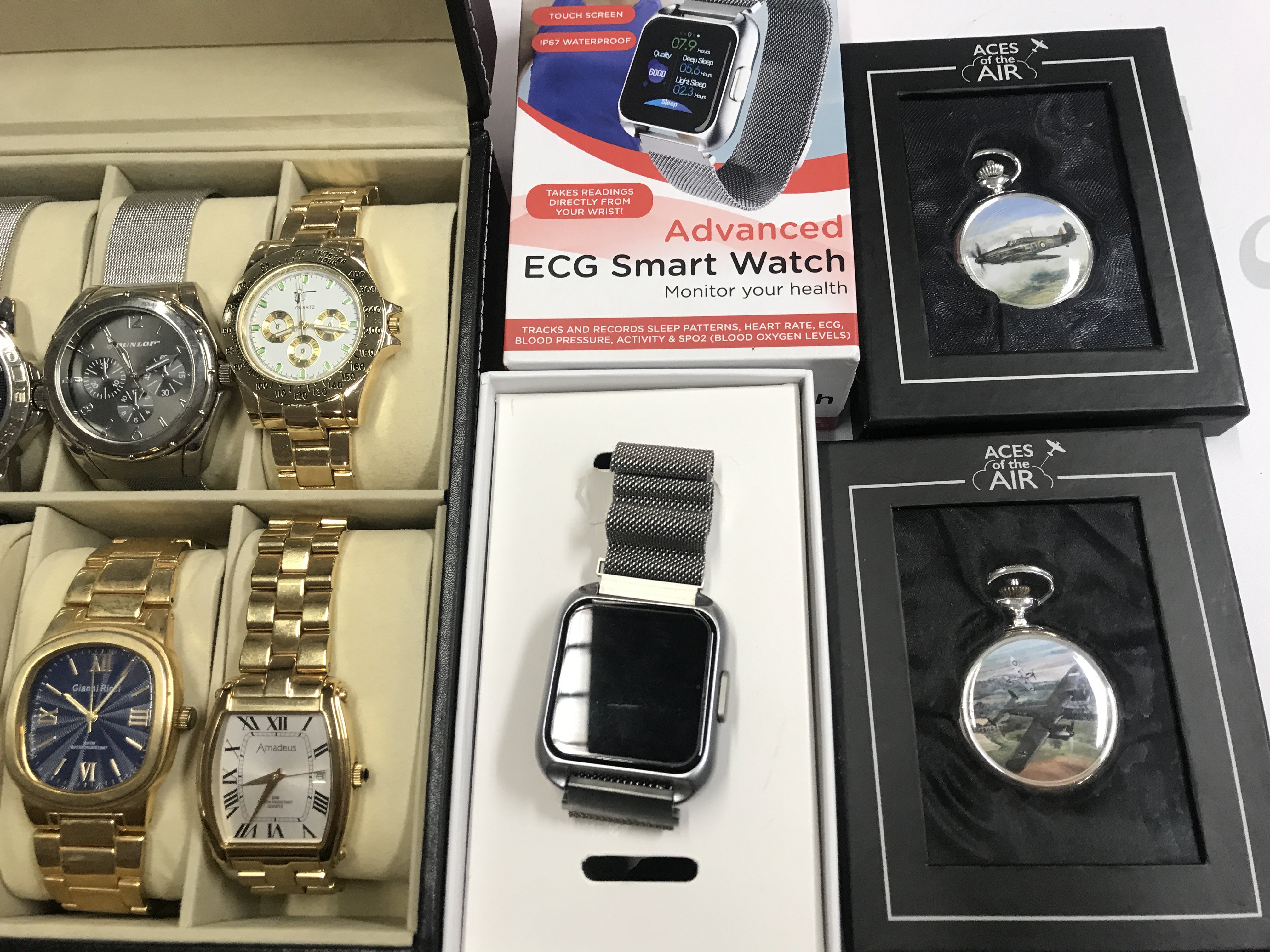 A collect of watches and pocket watches including Christin Lars Sekonda and an ECG smart watch etc. Postage B