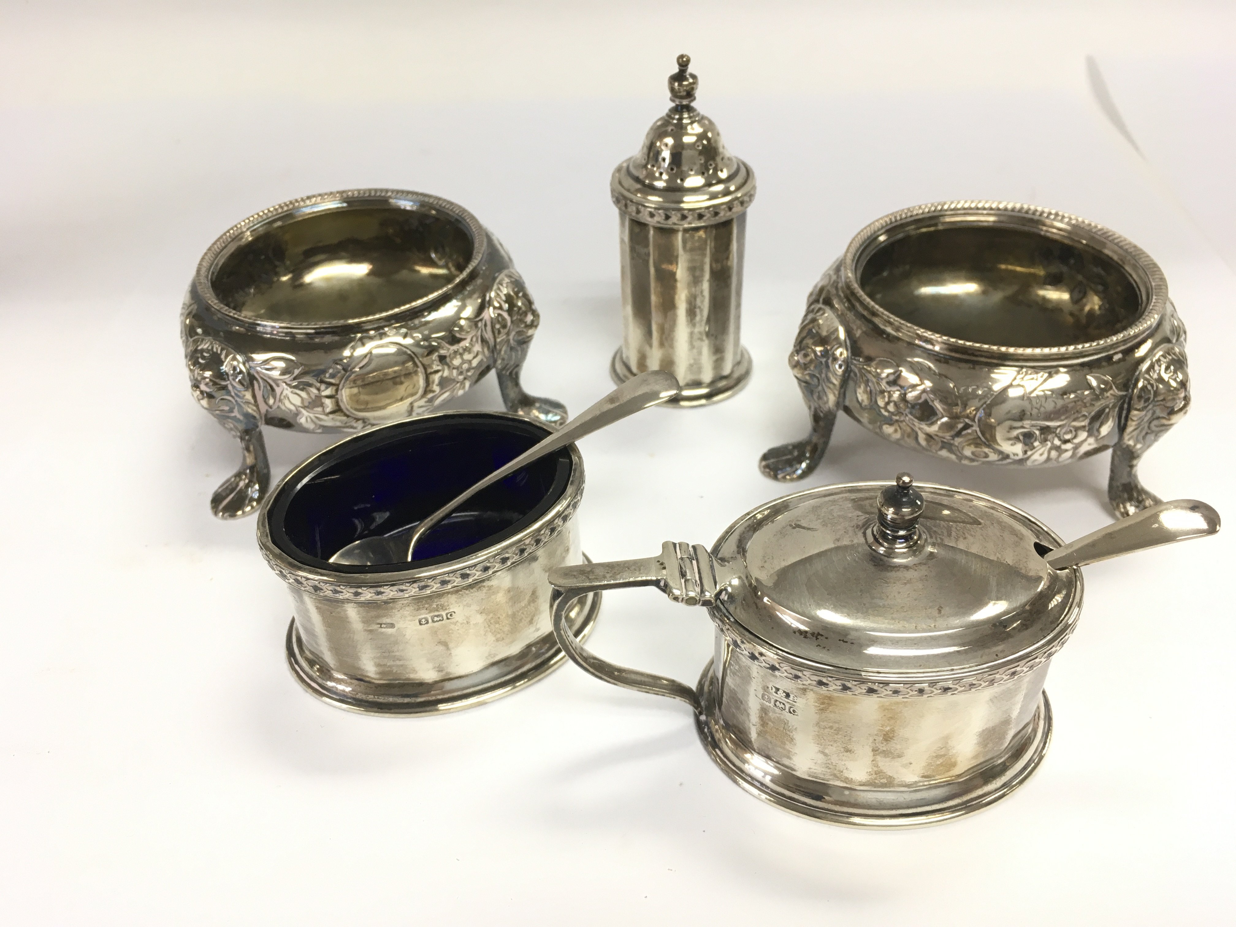 A collection of silver salt cellars. Shipping category B.