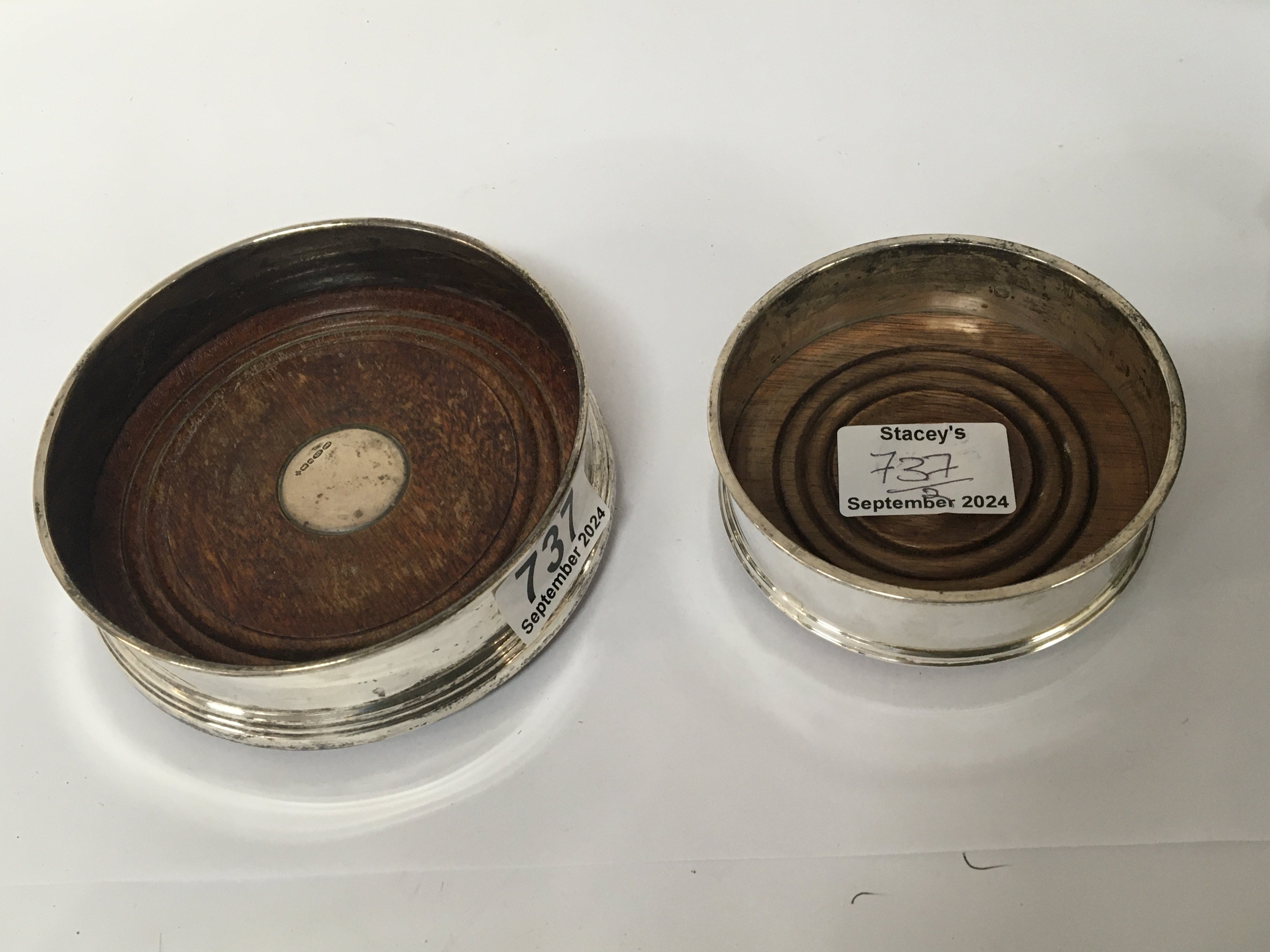 Two silver wine coasters London and Birmingham hallmarks (2)