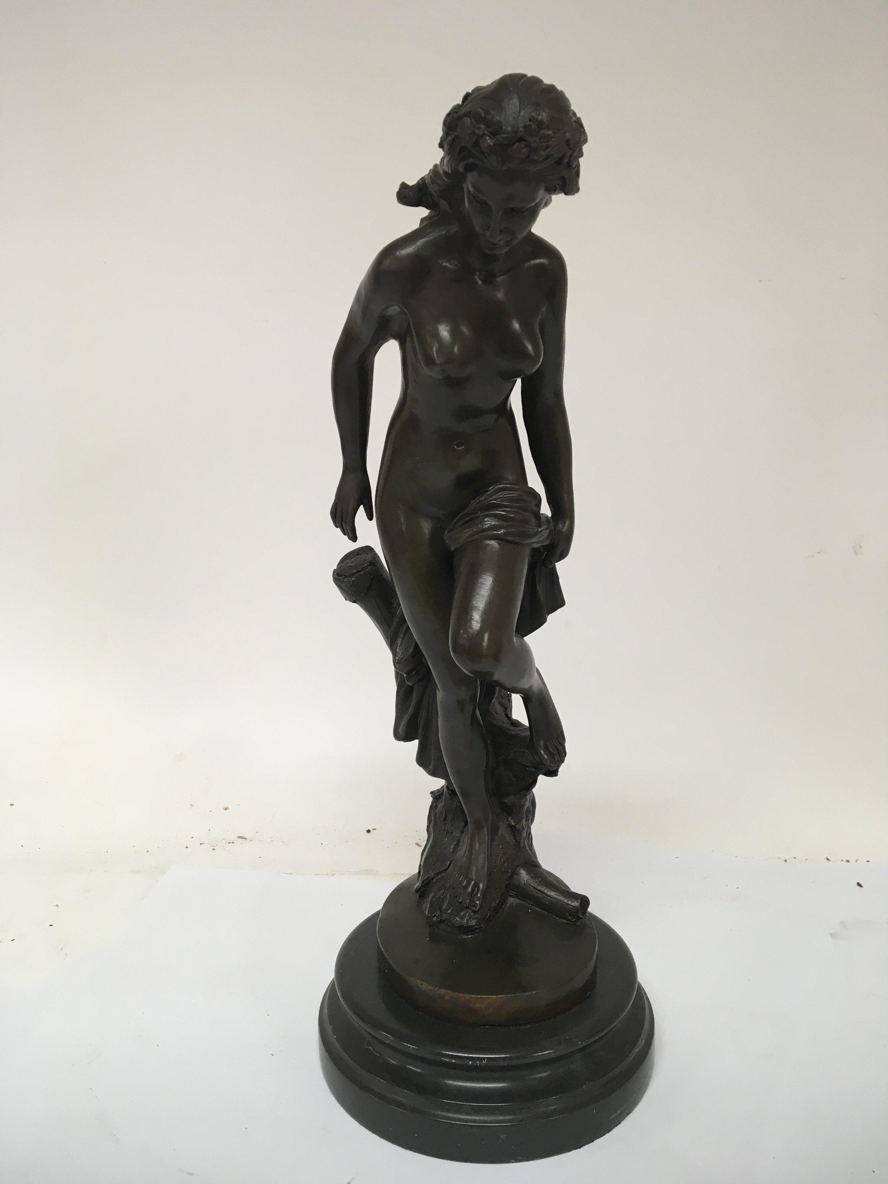A 20th century bronze figure of a Neo -Classical inspired nude female on a marble base.