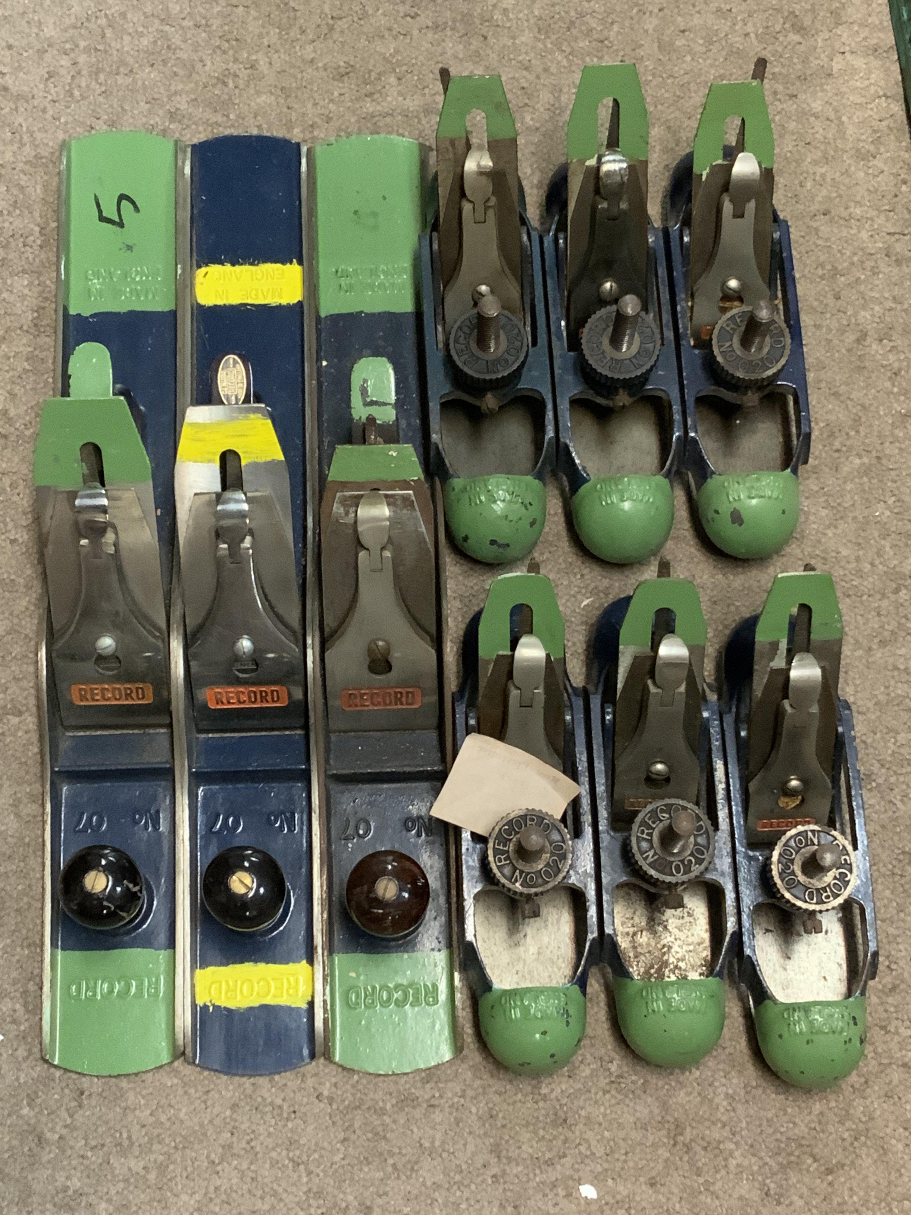 6 vintage No.020 Record Compass planes, together with 3 Record Jointer planes. (D)