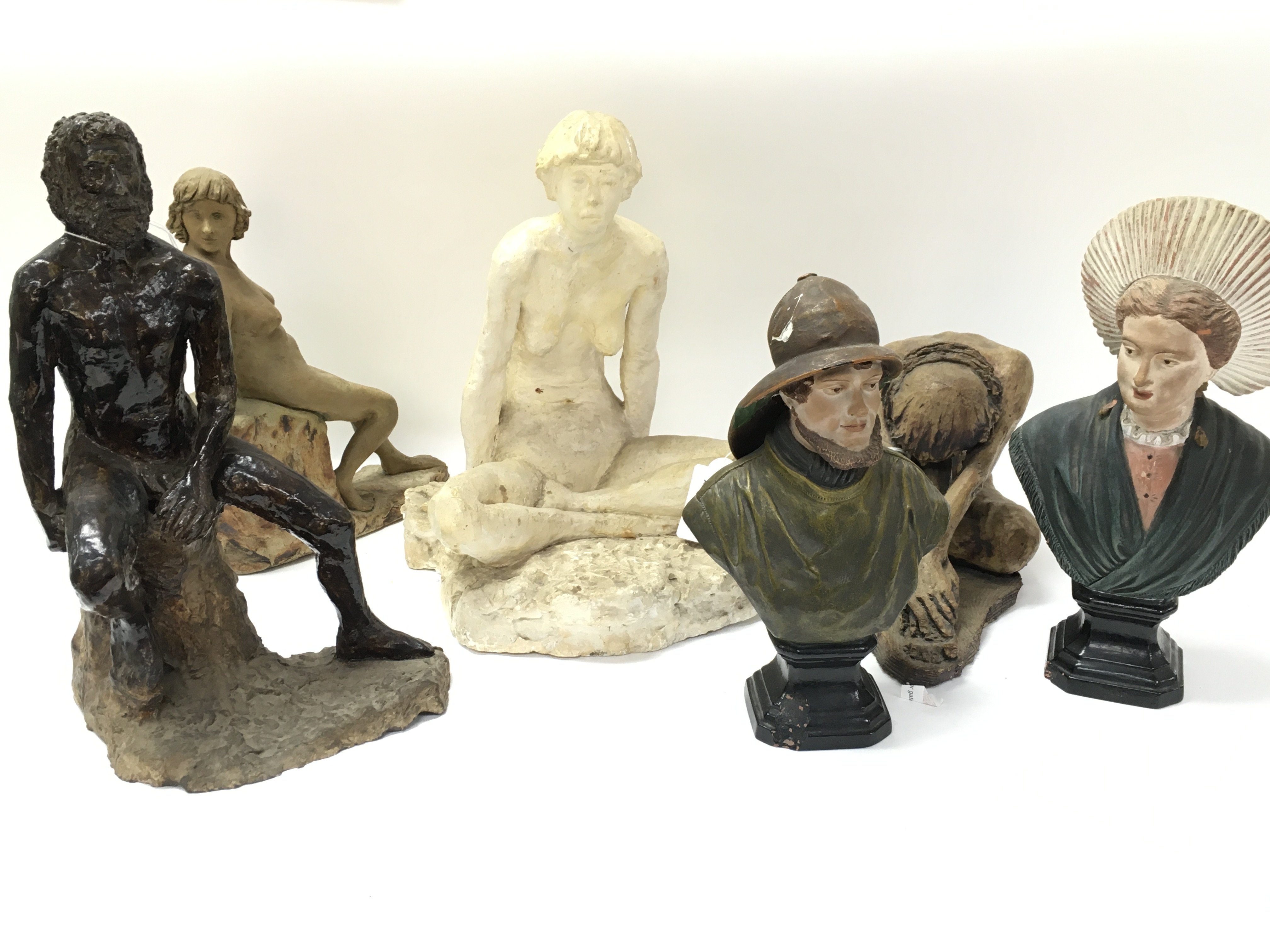 A collection of studio pottery figures including nude ladies and busts. This lot cannot be posted