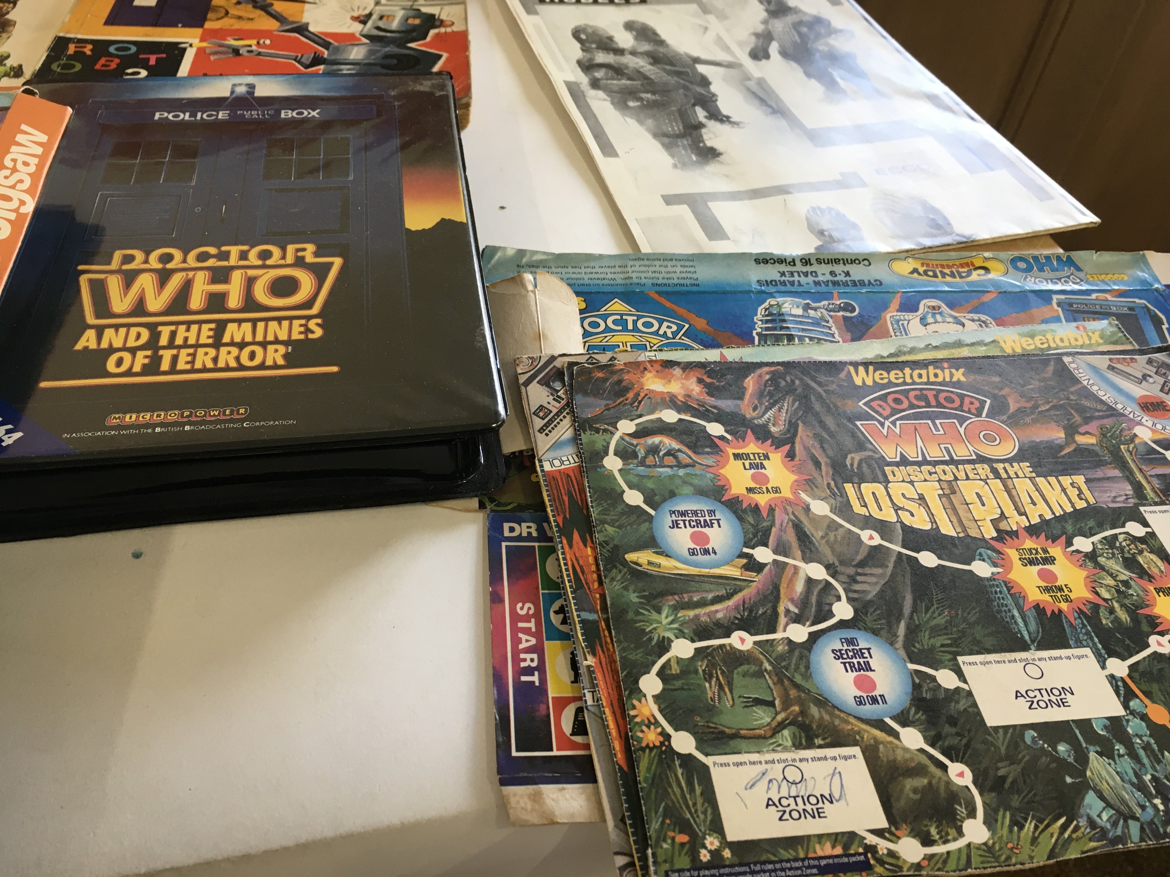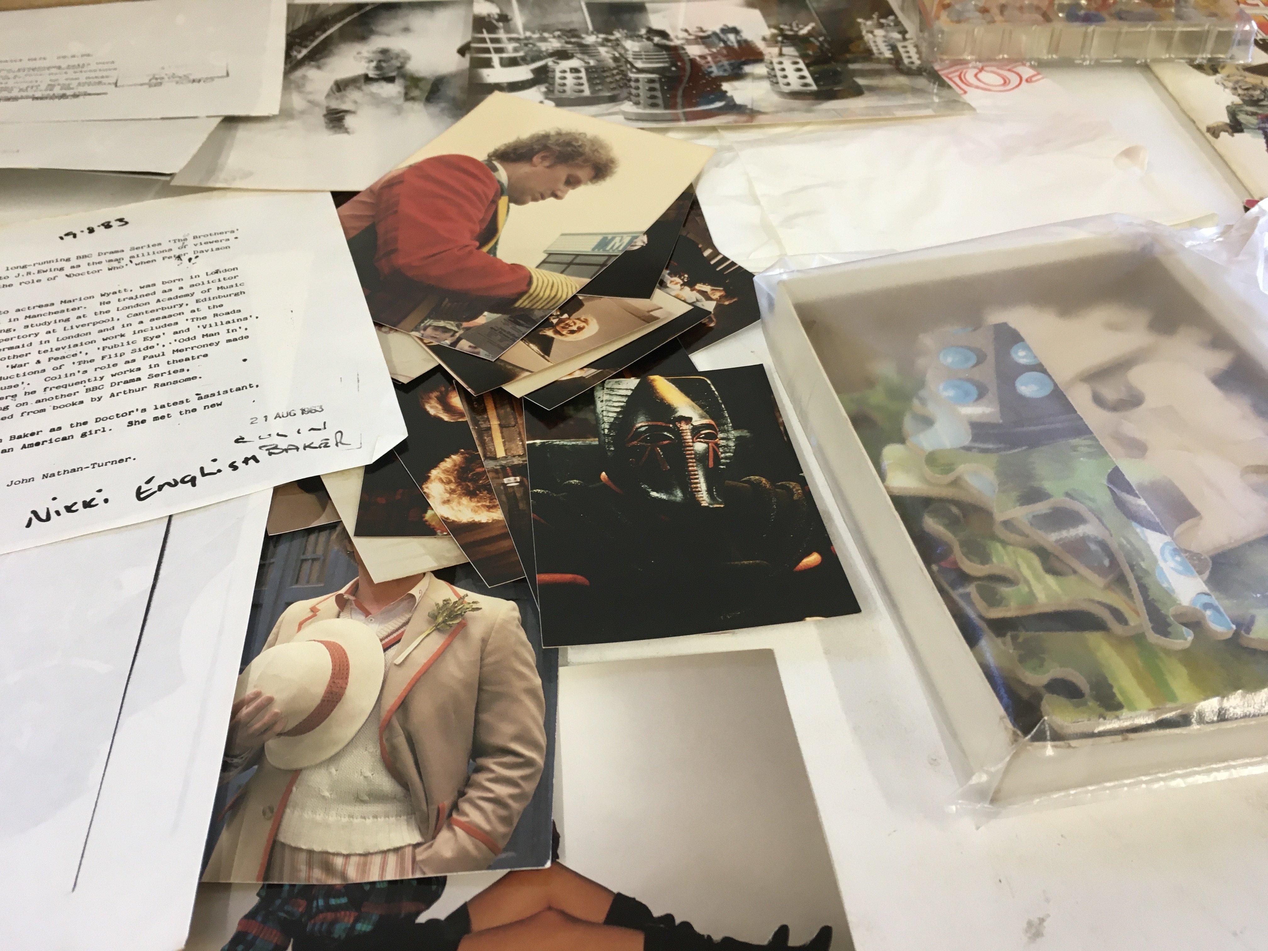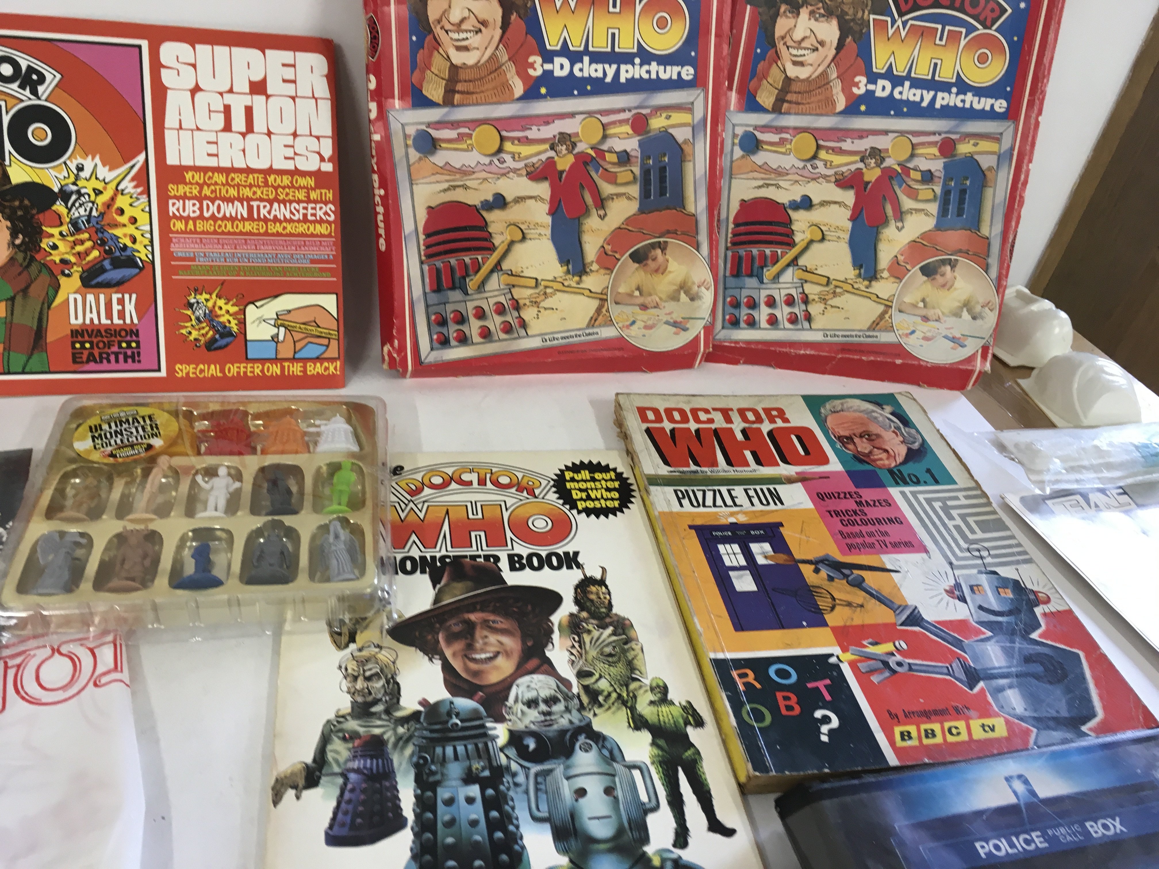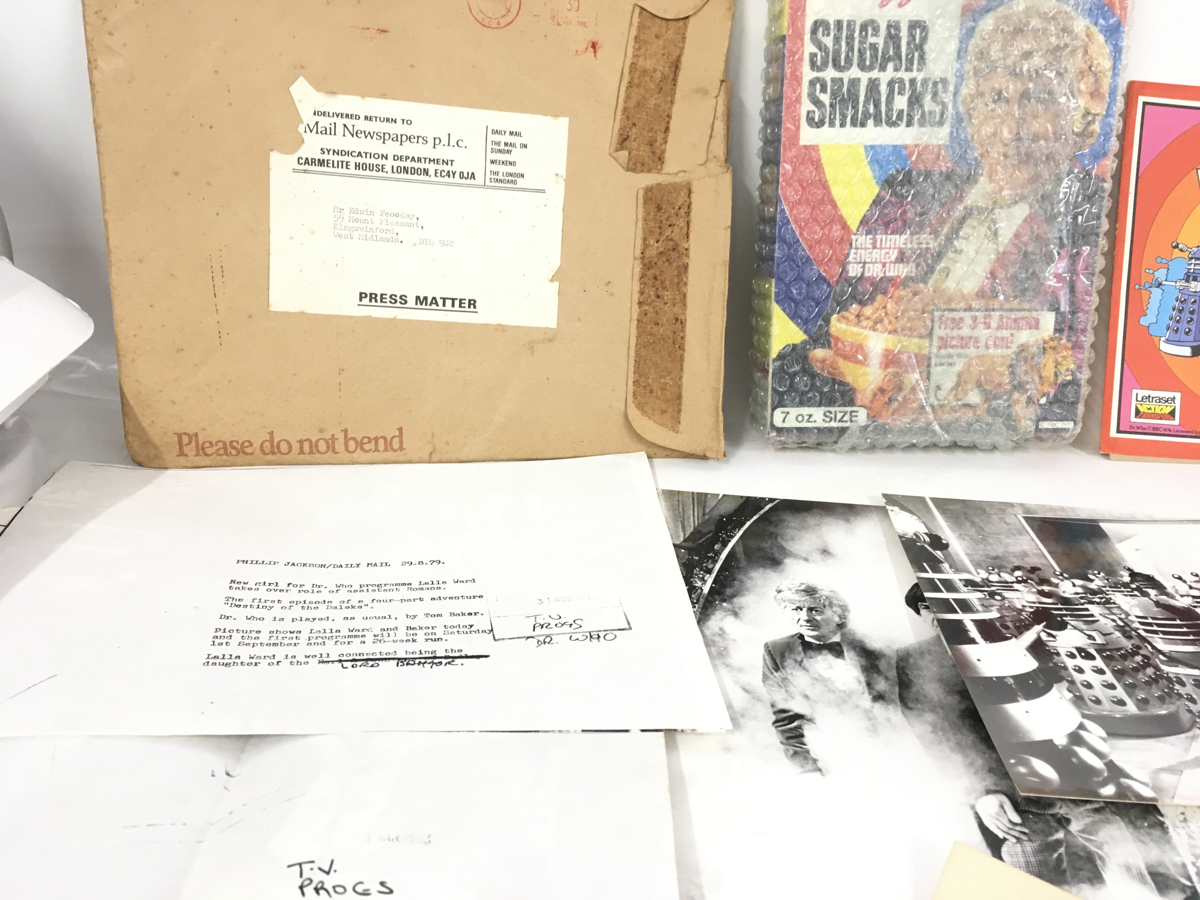 A mixed collection of of Dr Who memorabilia including toys..jigsaws..press photos and press releases some signed..cereal packaging etc