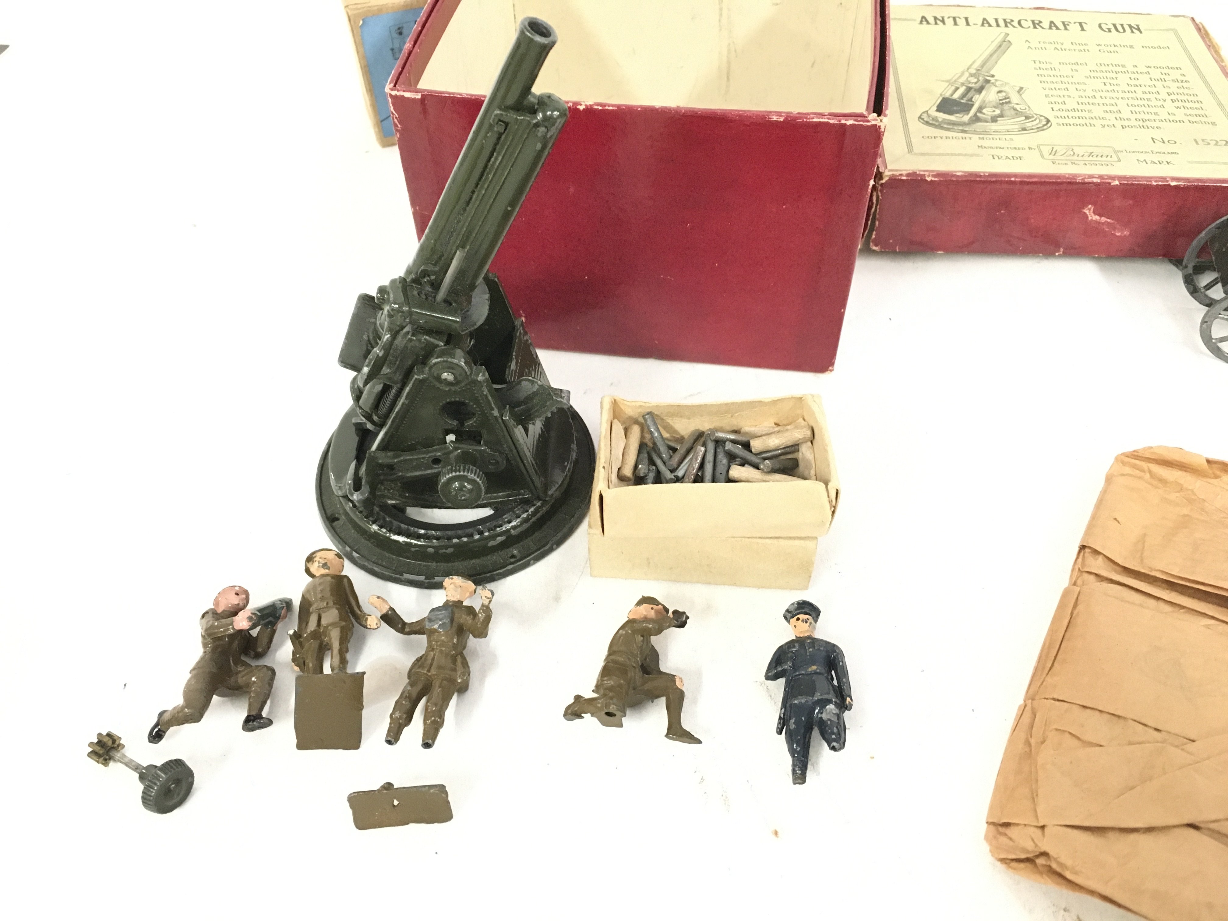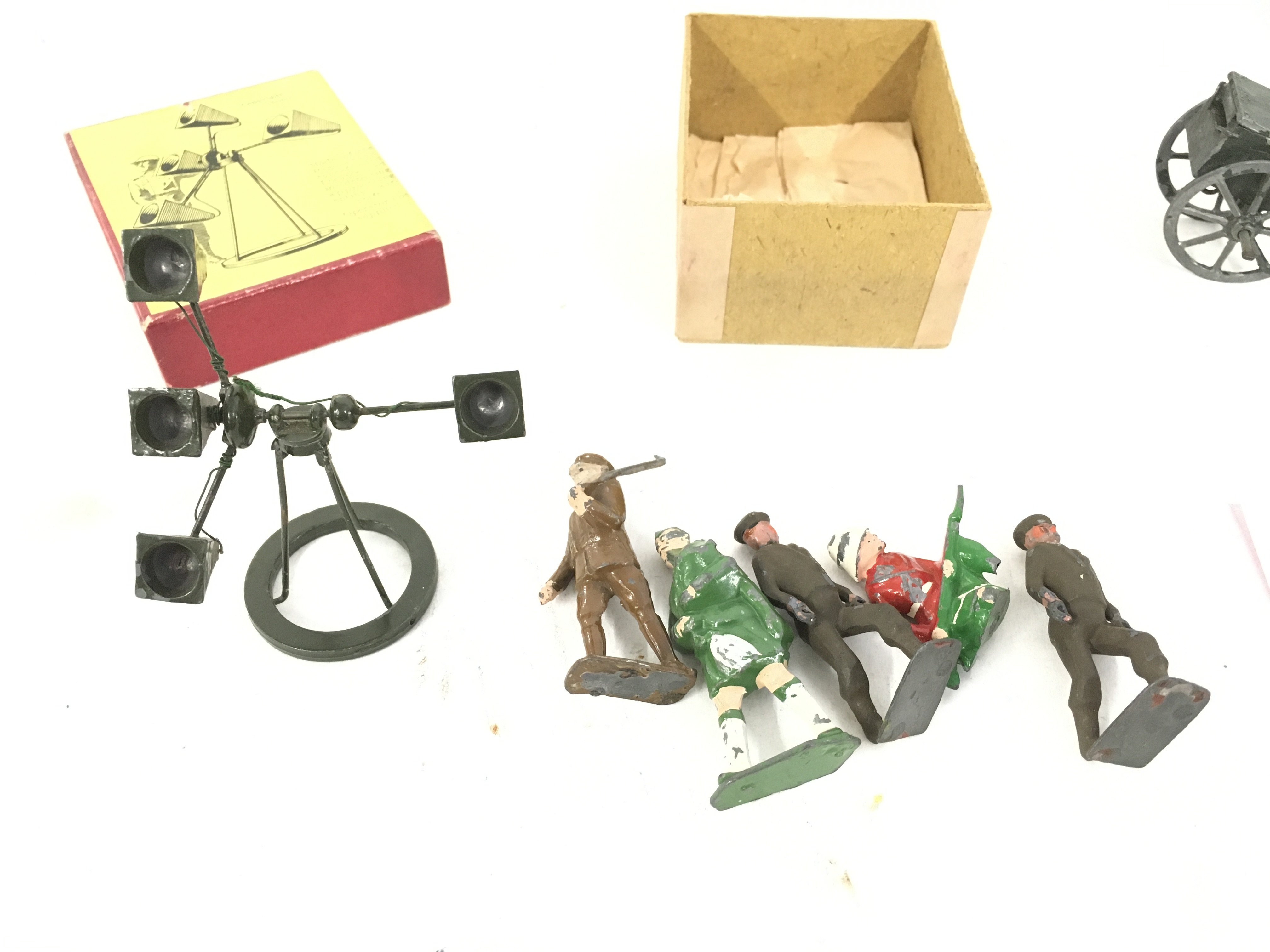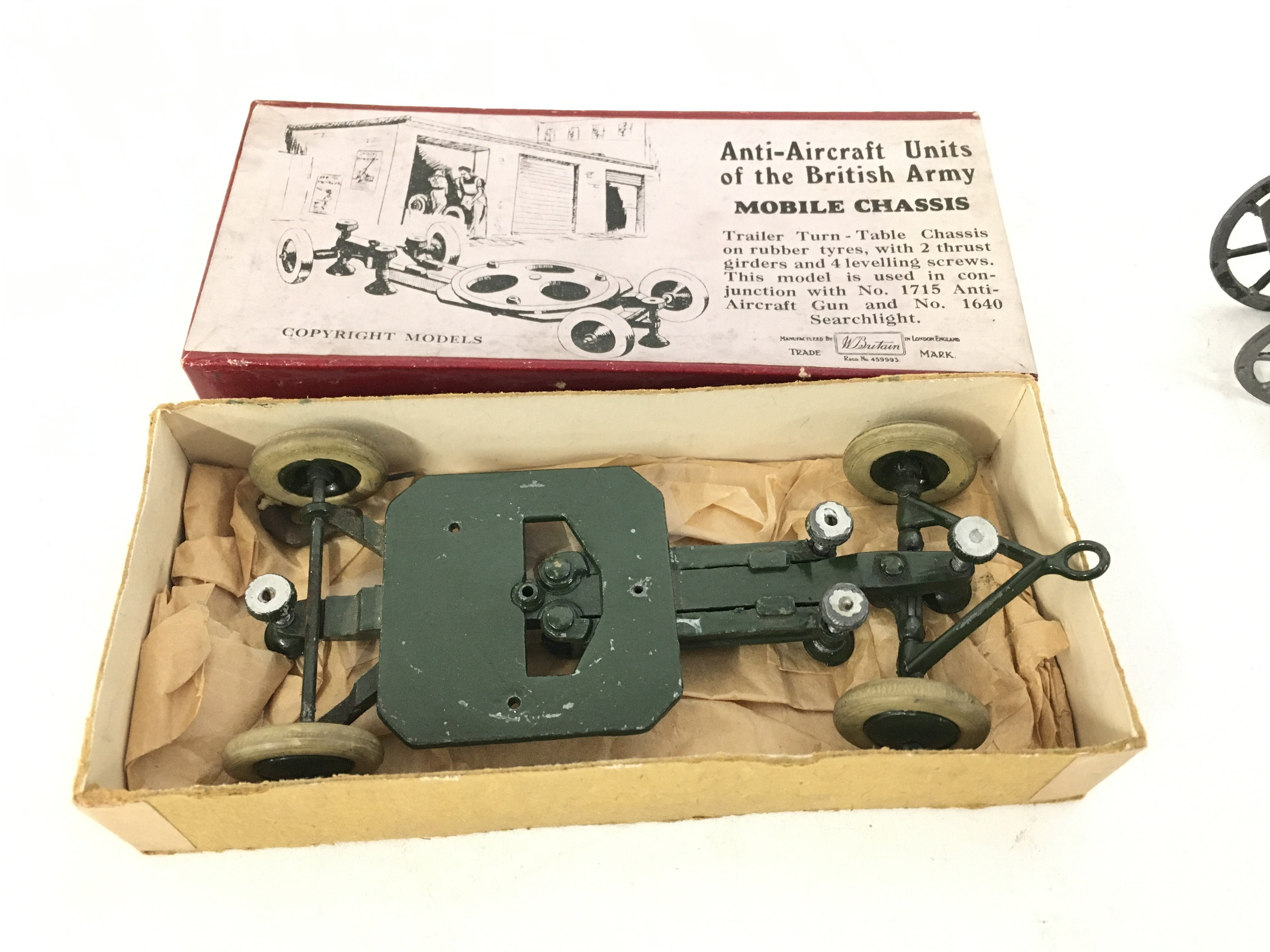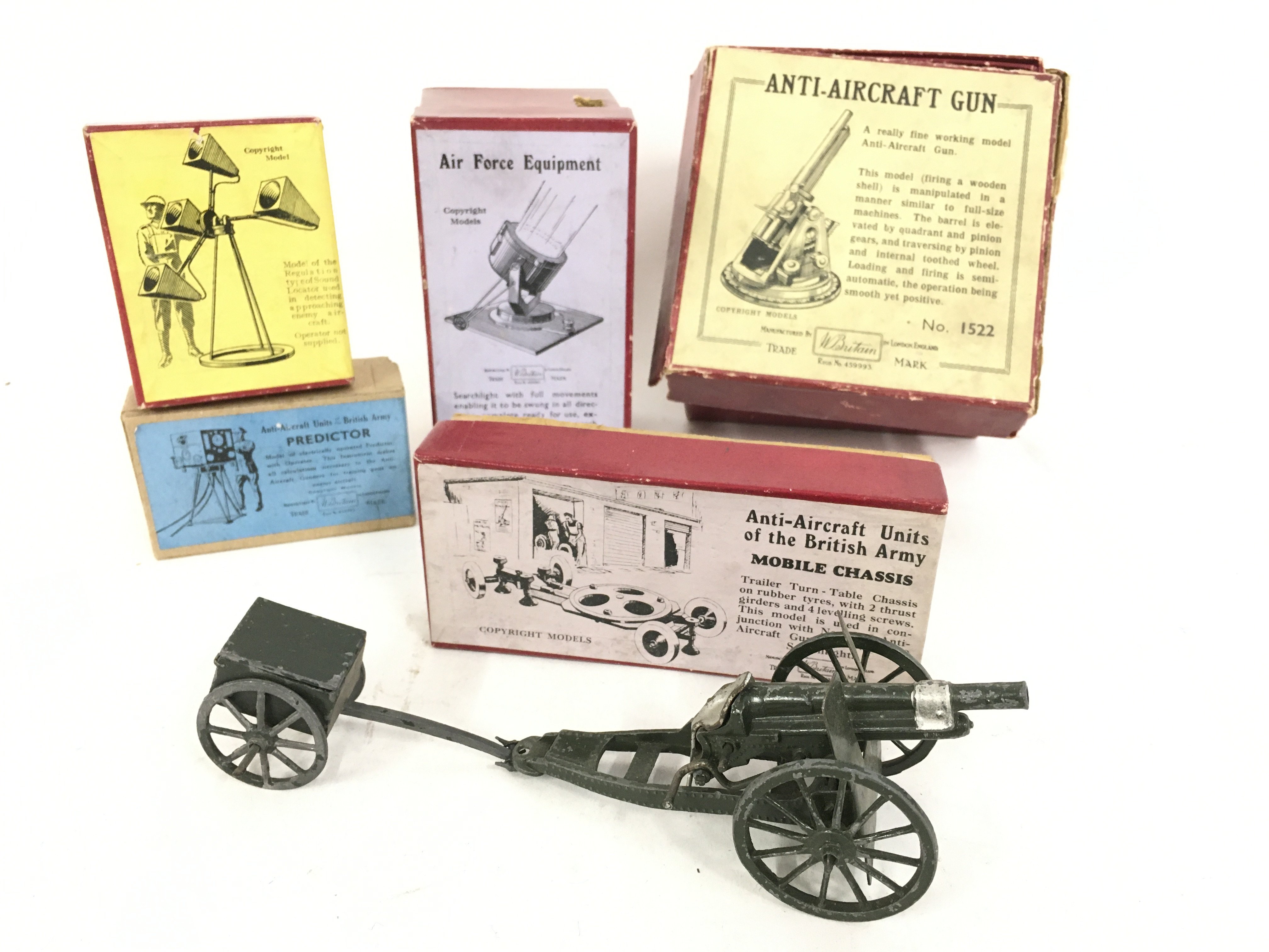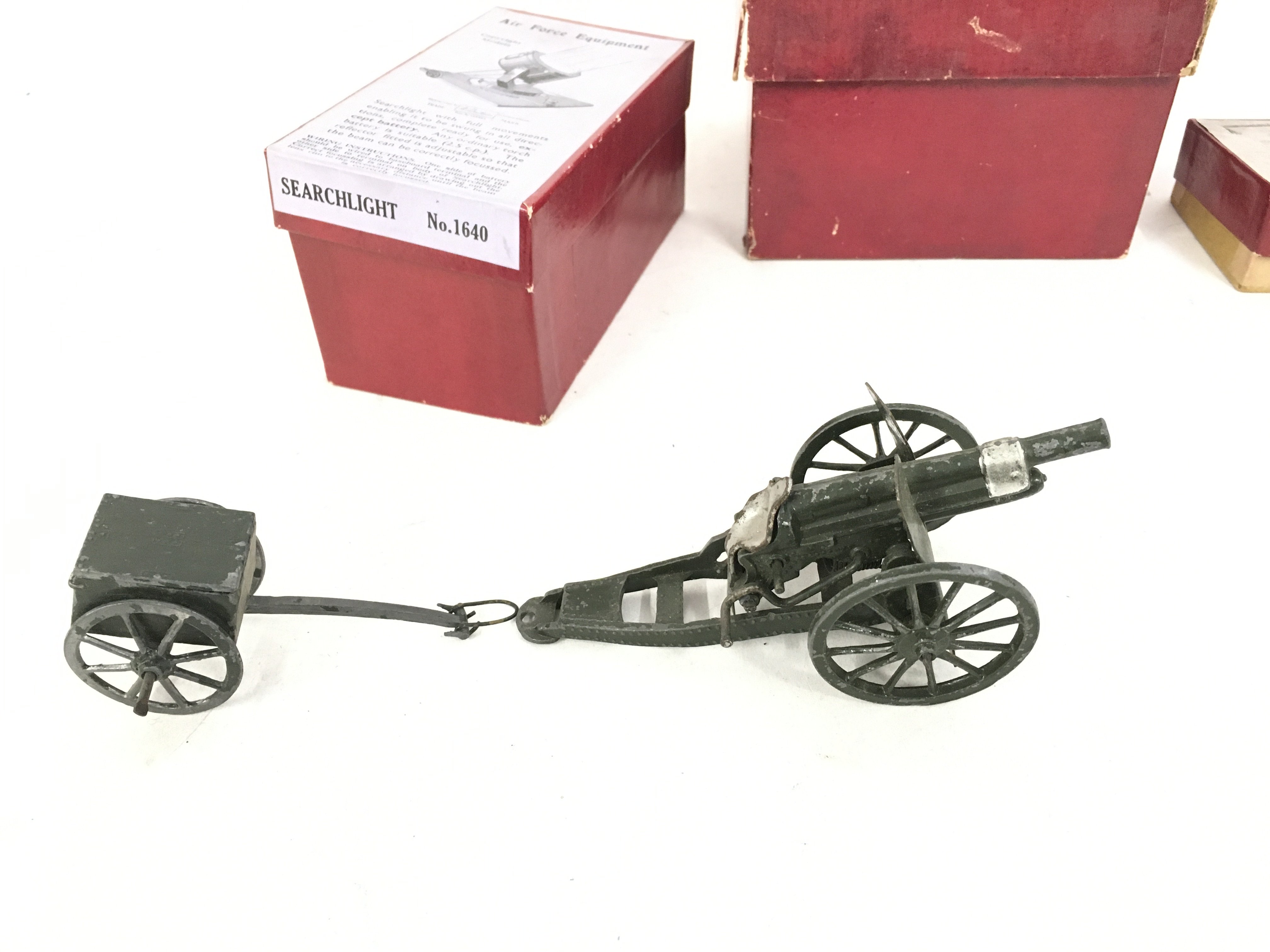 A Collection of Boxed Britains. Including a Sound Locator. a Predictor. A Mobile Chassis. A Anti-Aircraft Gun and a Searchlight. Also A Loose Field Gun.