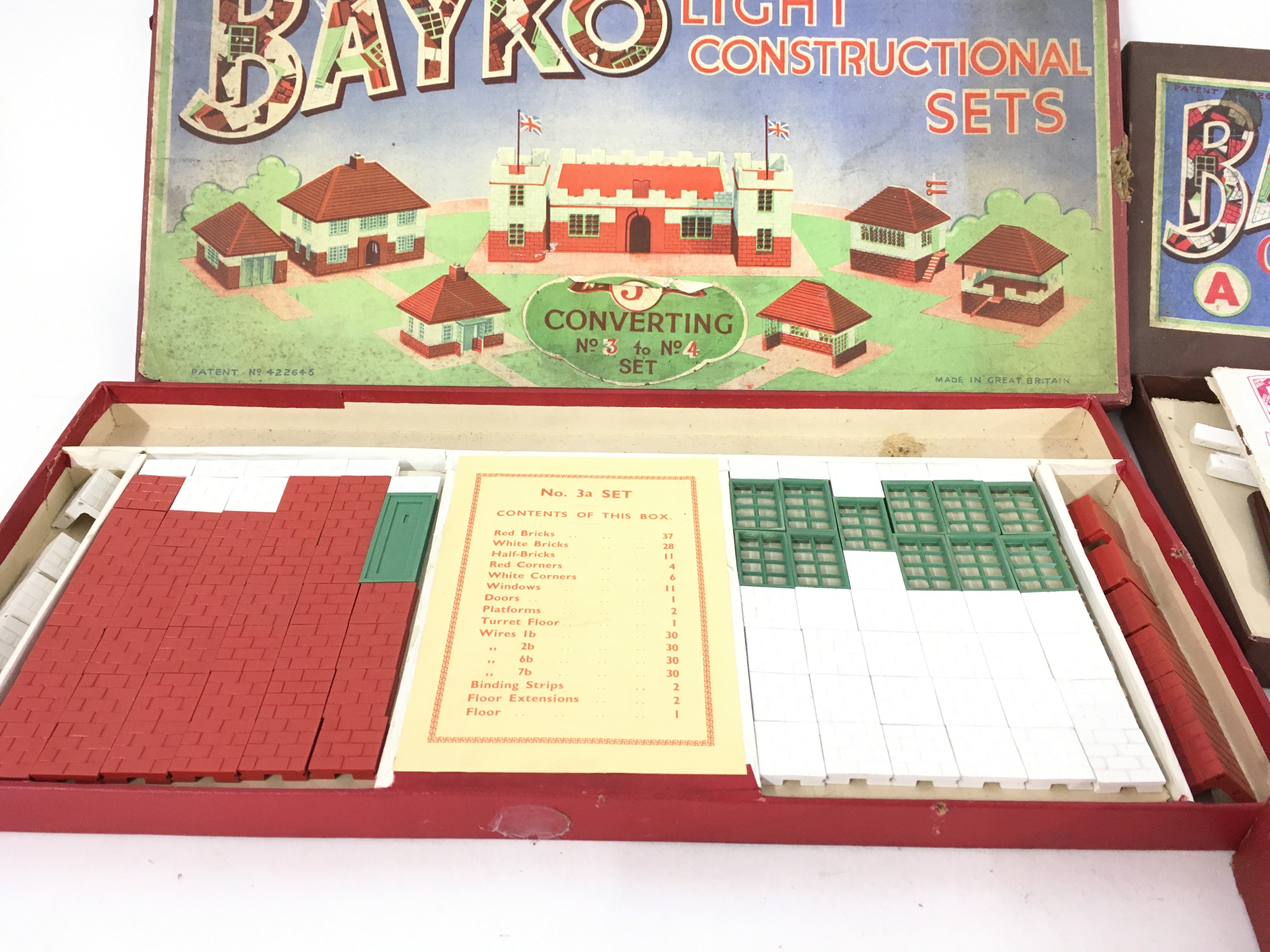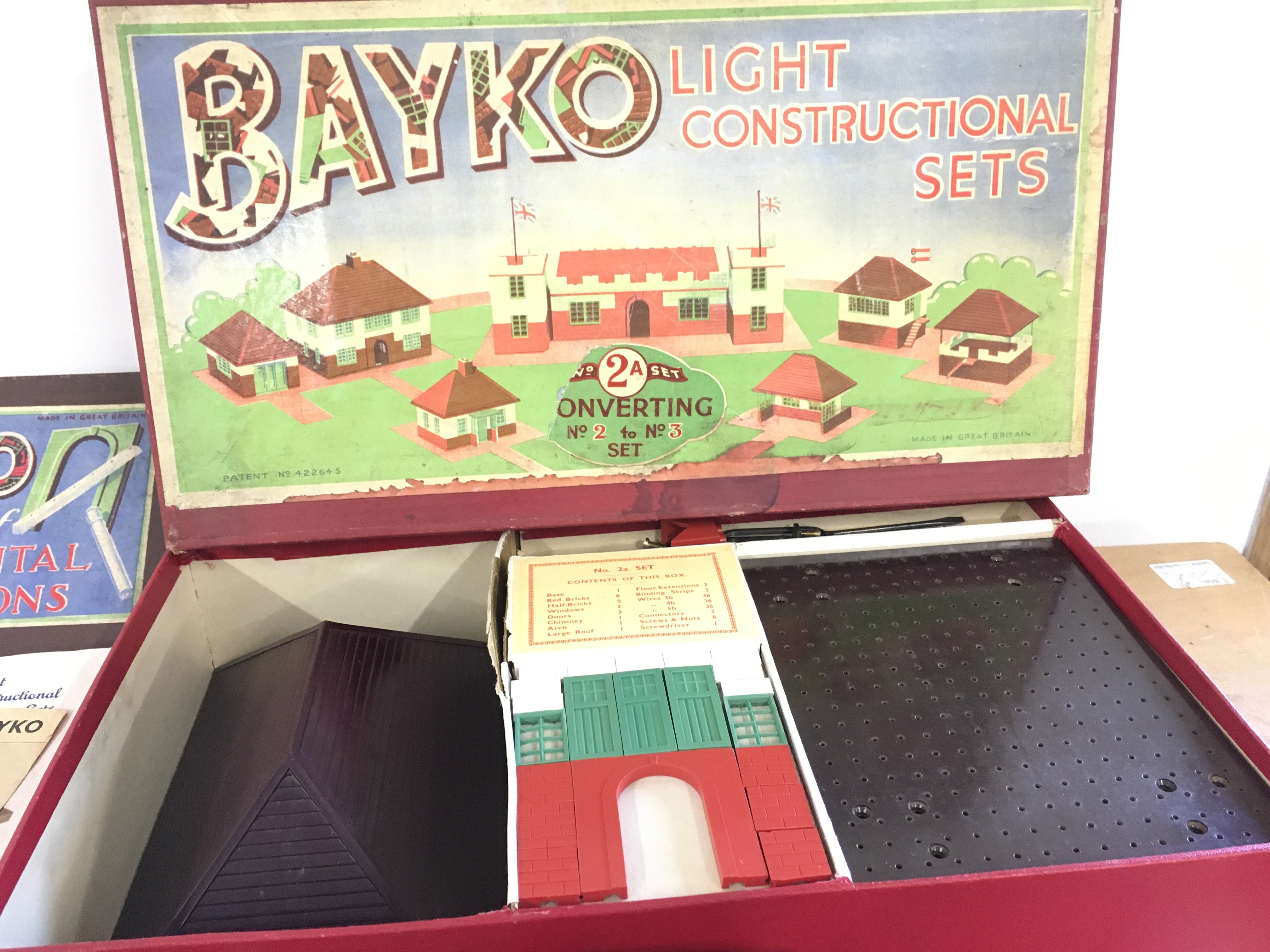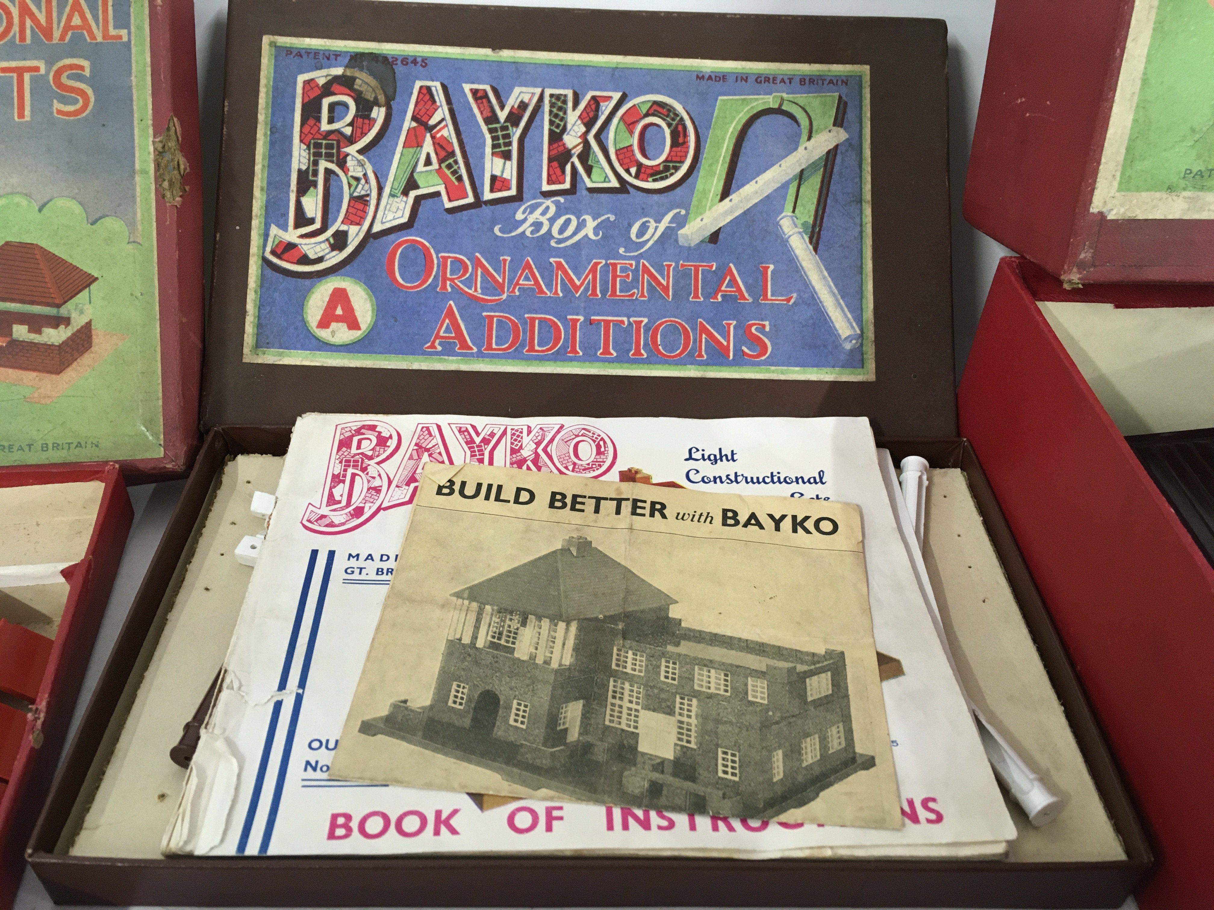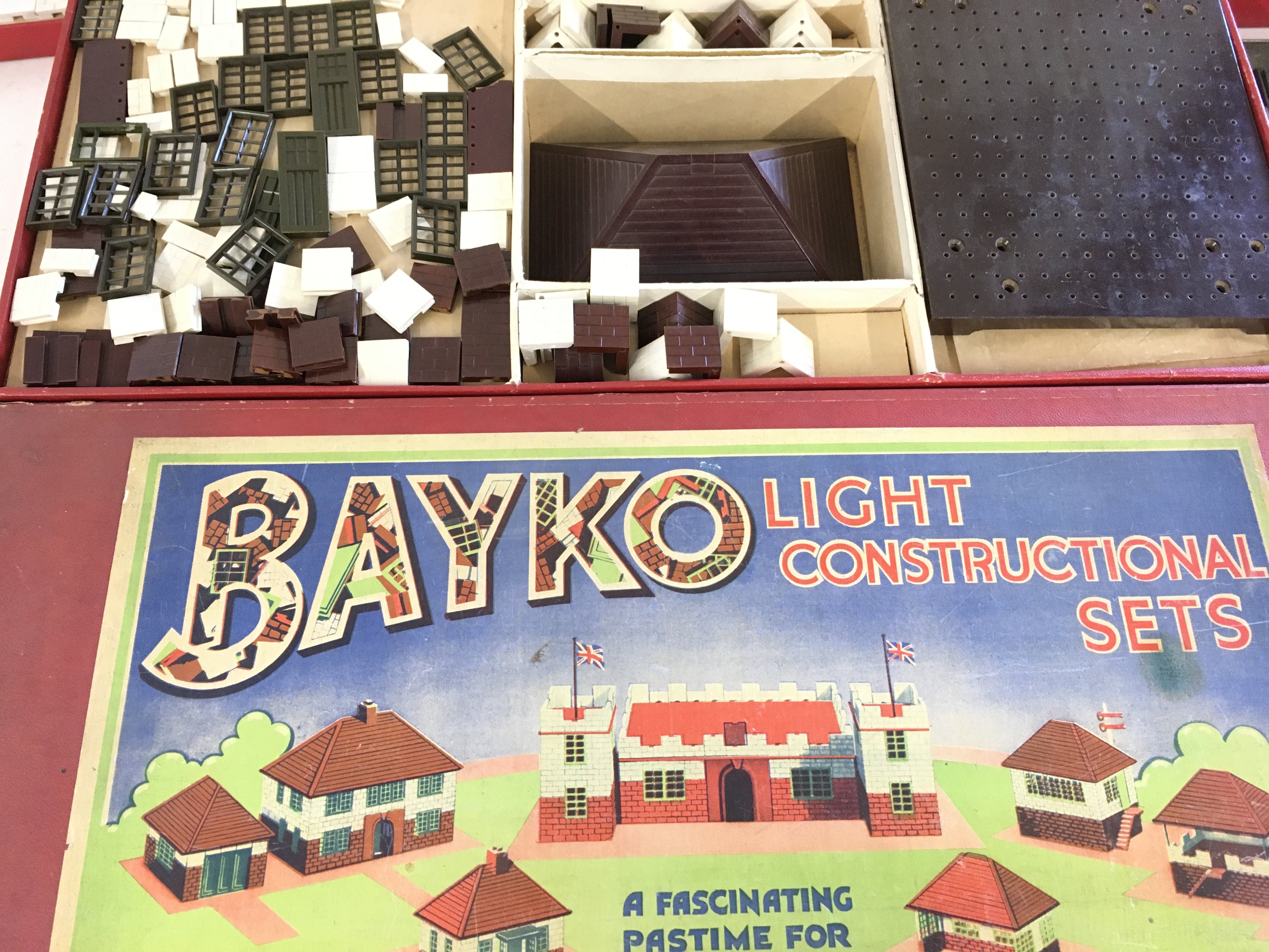 A group of vintage 4 Bayko construction and accessories sets plus a tin with building rods.