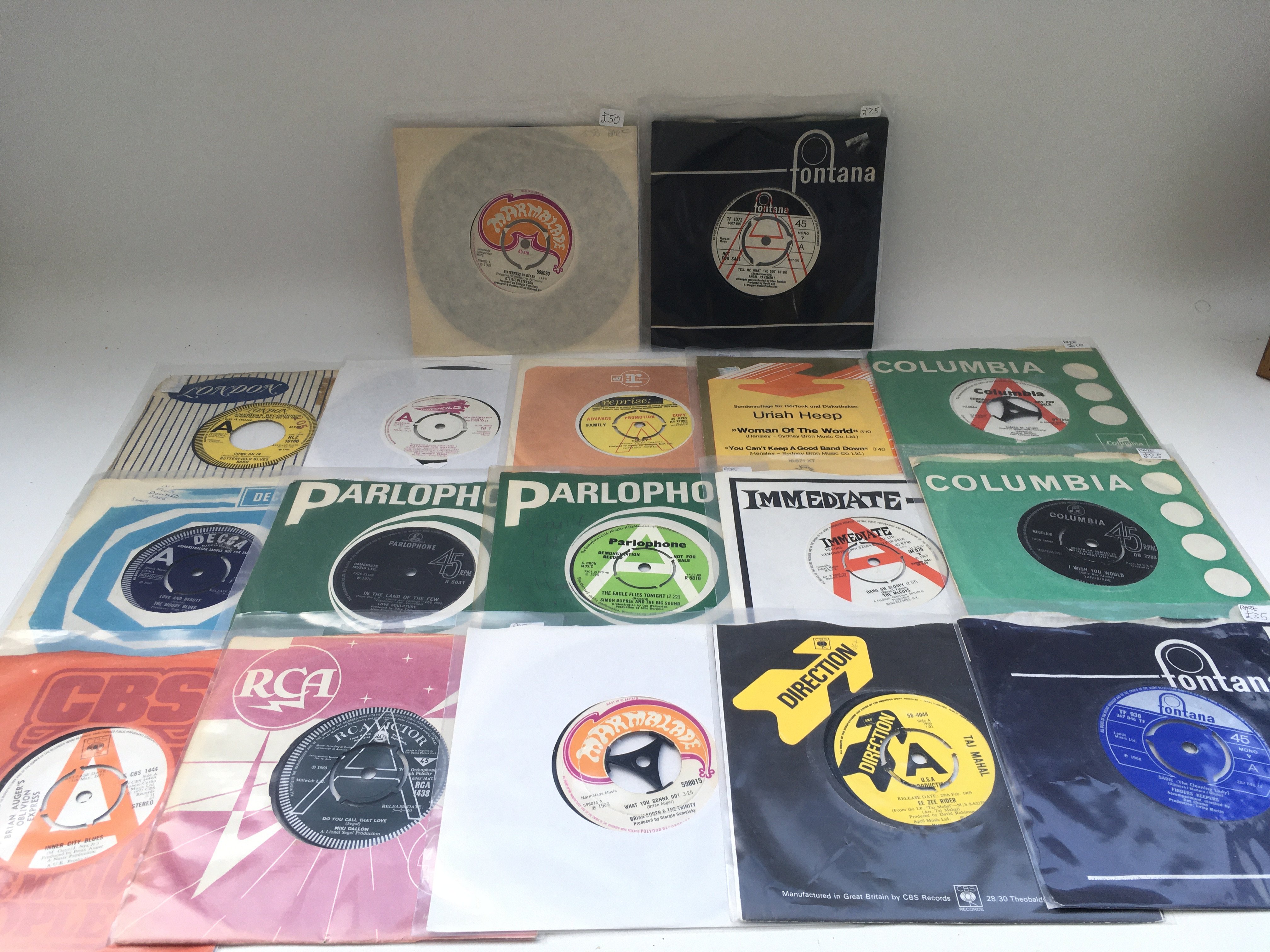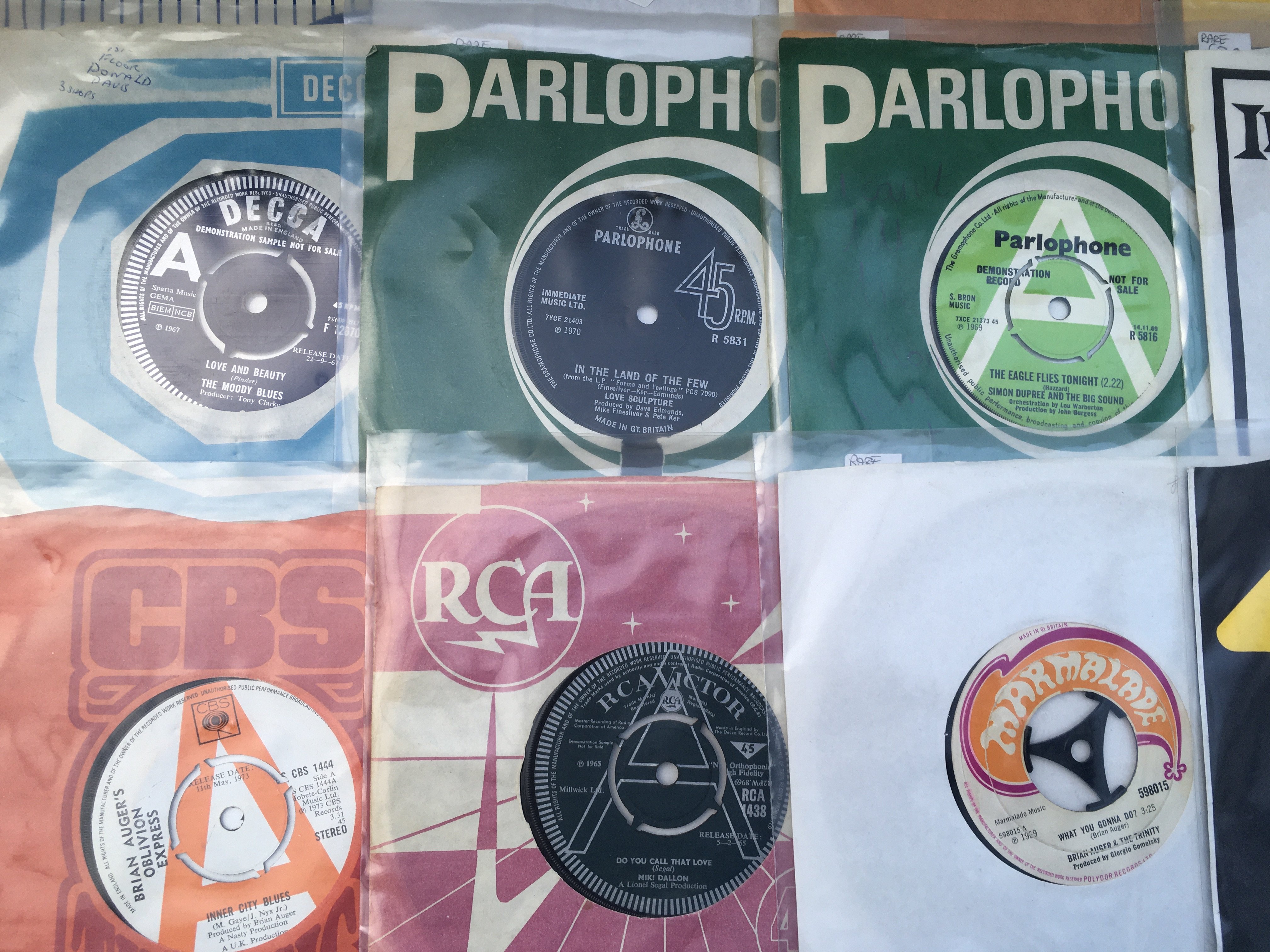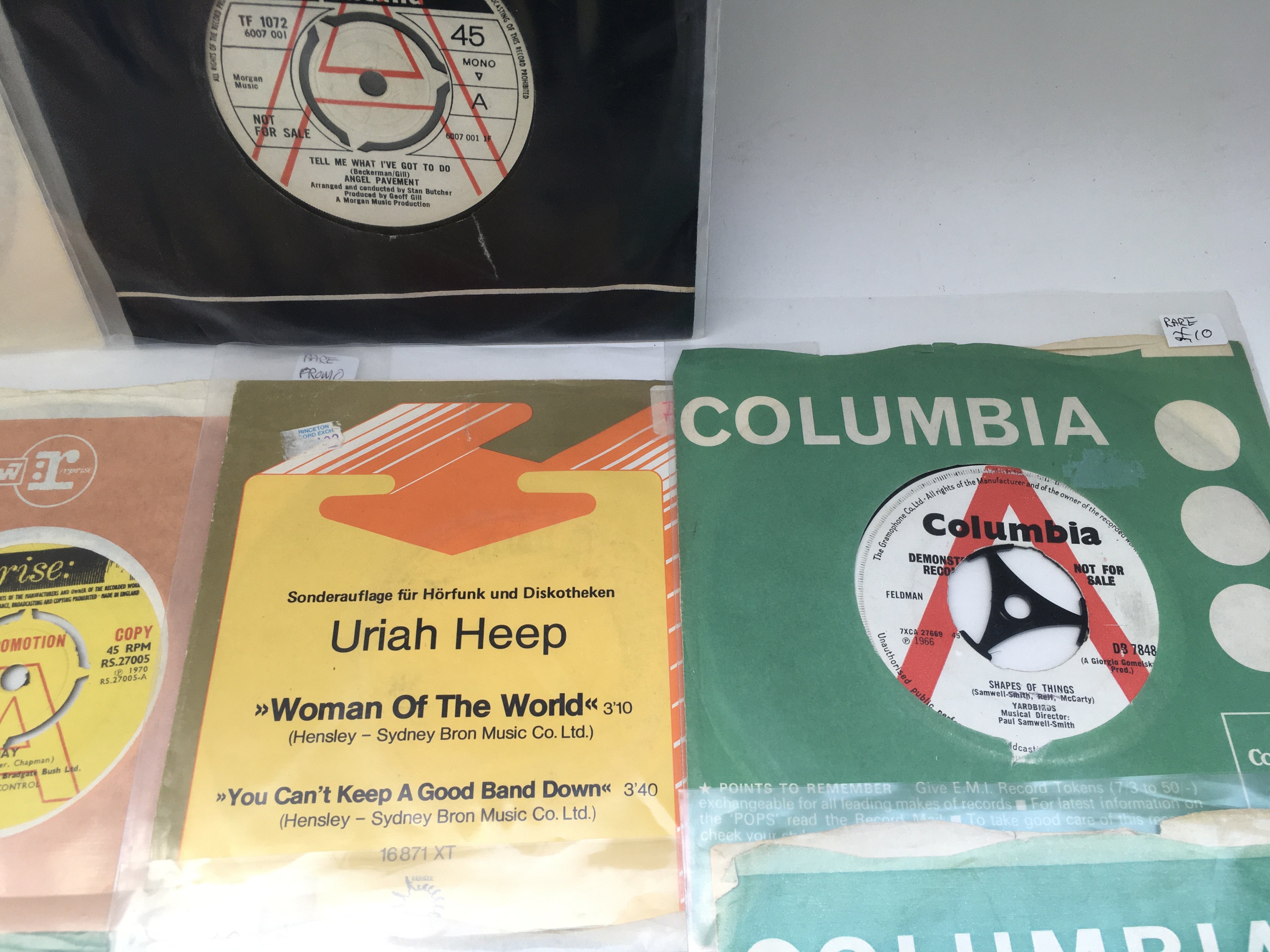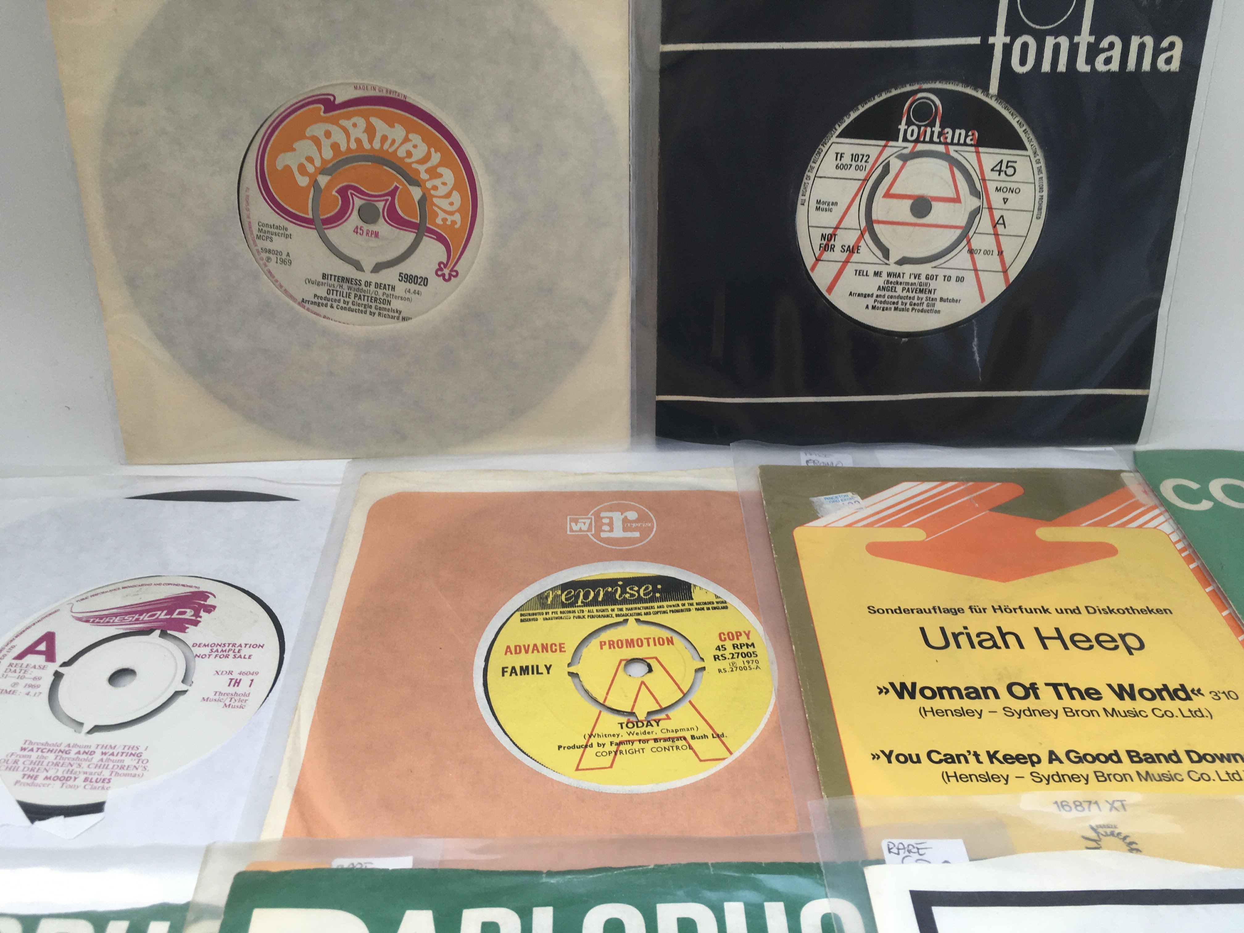 Seventeen collectable 7" singles comprising mainly demo discs by various artists including Angel Pavement, Family, Uriah Heep, Yardbirds and others.