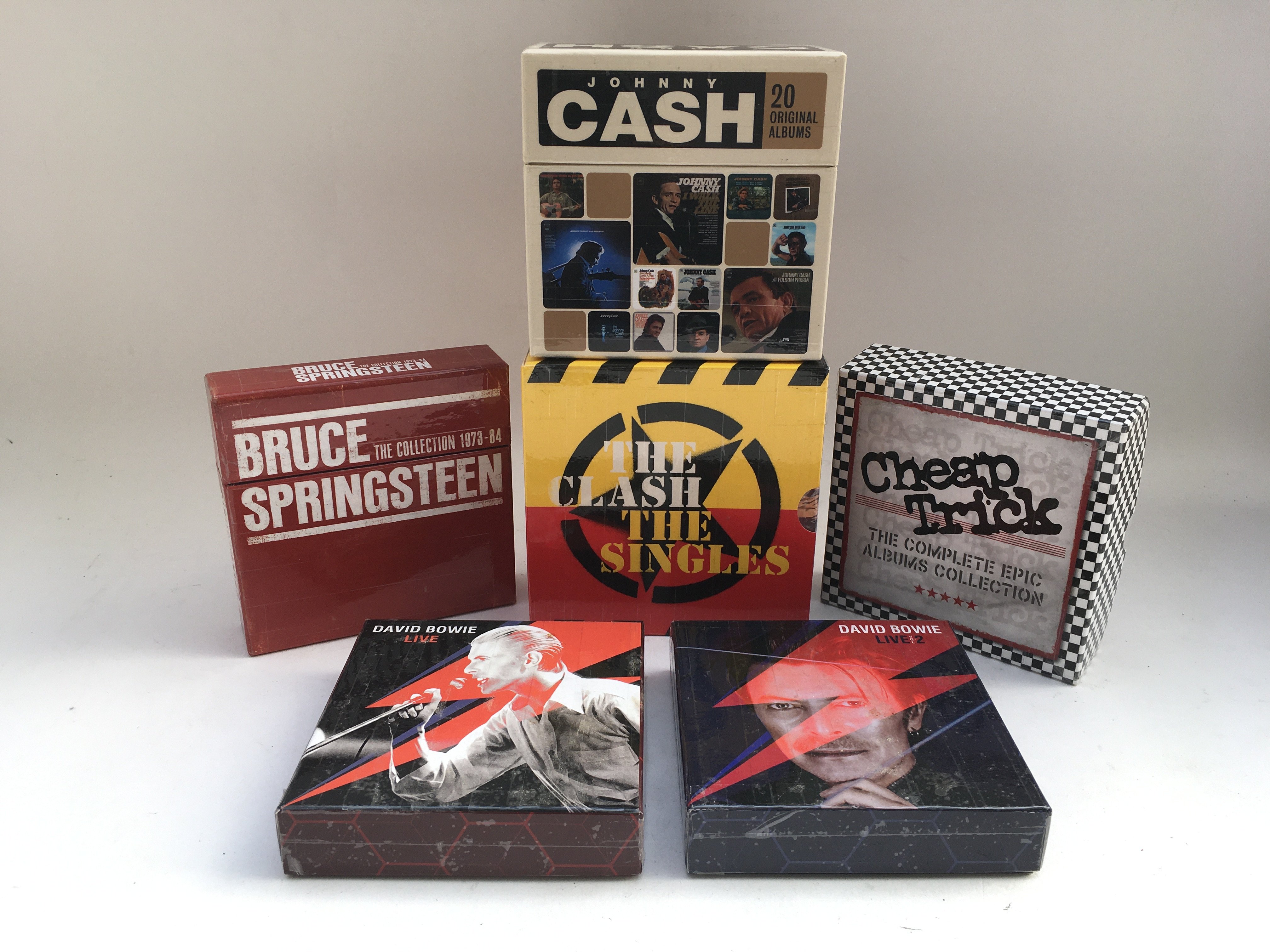 Six CD box sets by various artists including David Bowie, The Clash and others.