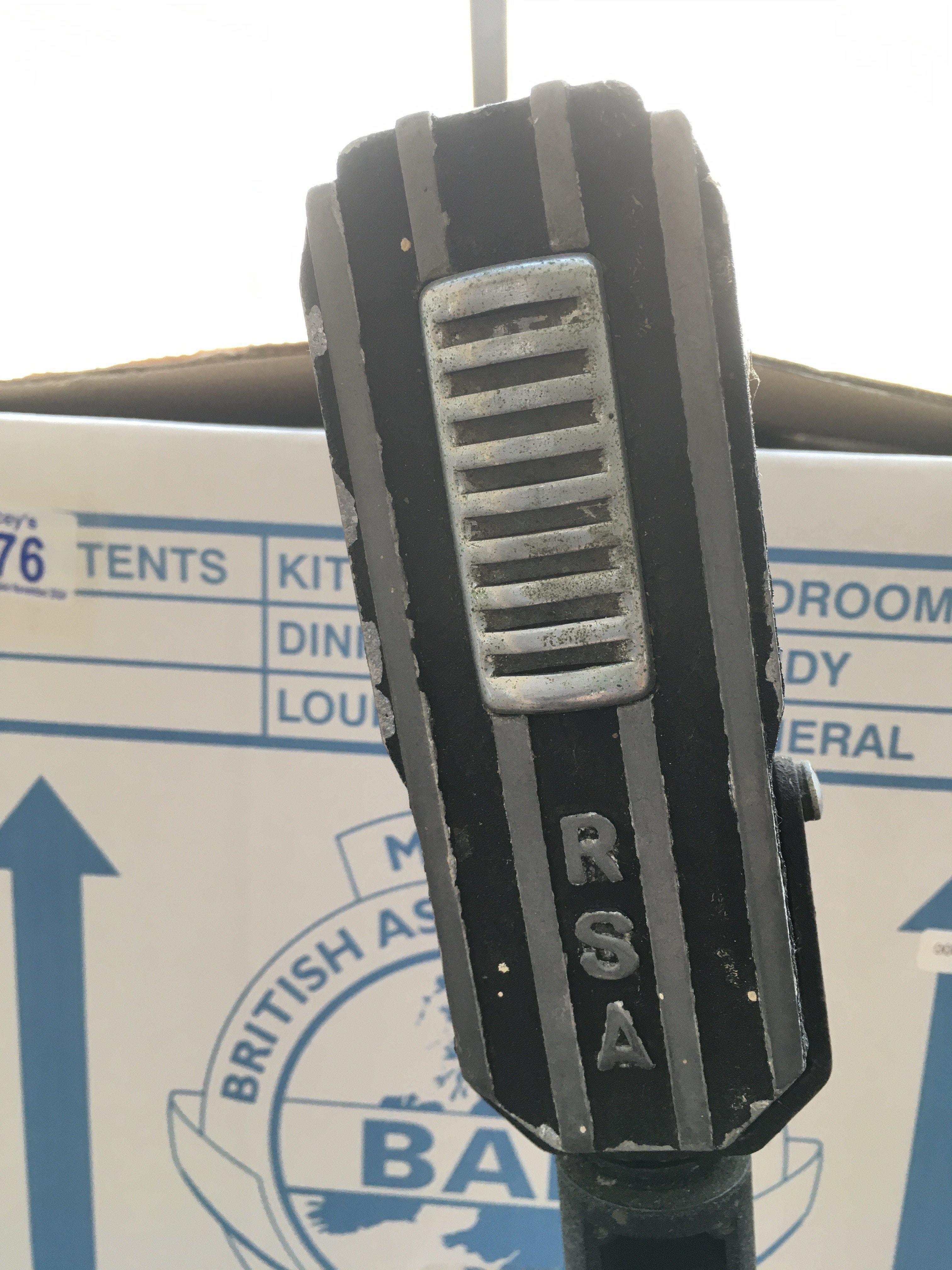 A circa 1940s RSA ribbon microphone with stand. Cable provided.