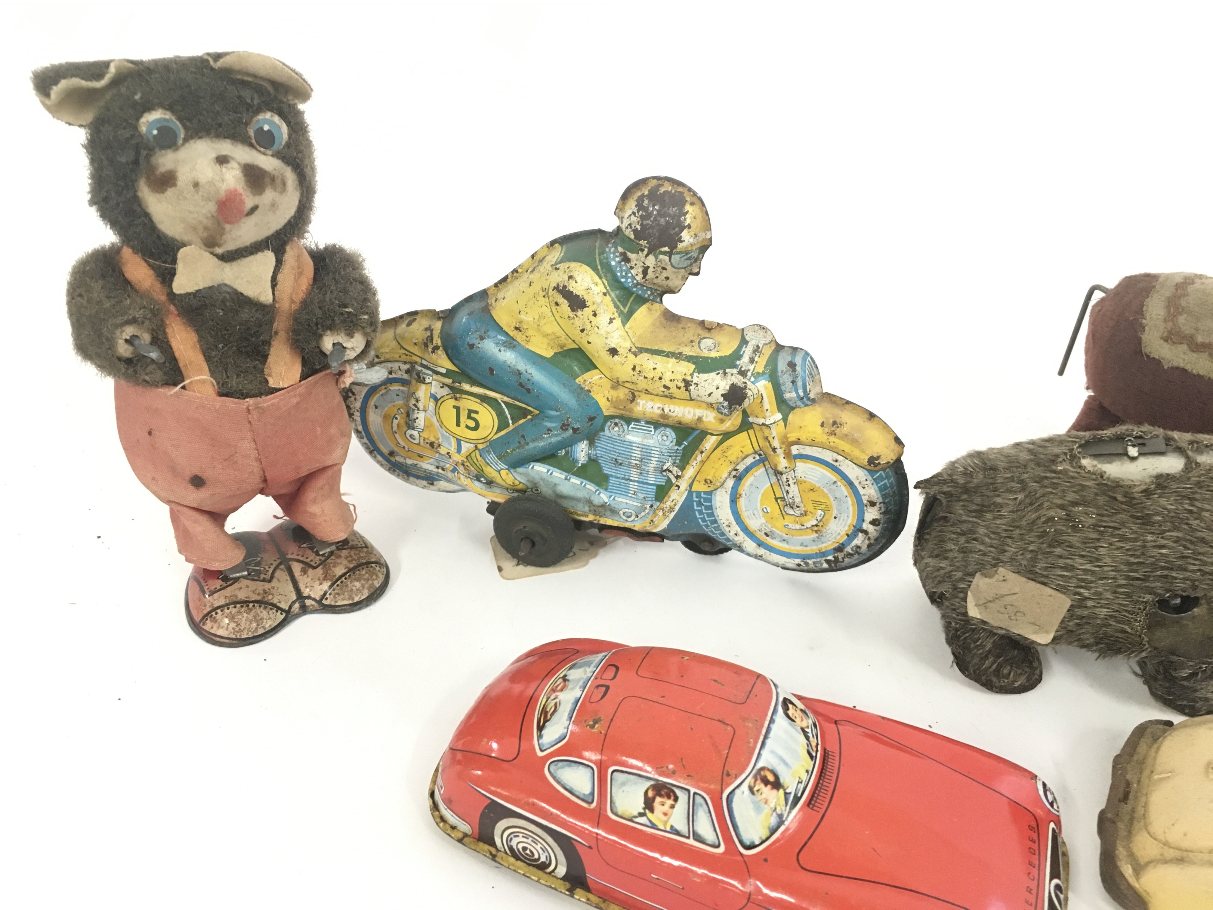 A Collection of Worn Tinplate Toys. Including a Mickey Mouse Money Box. NO RESERVE