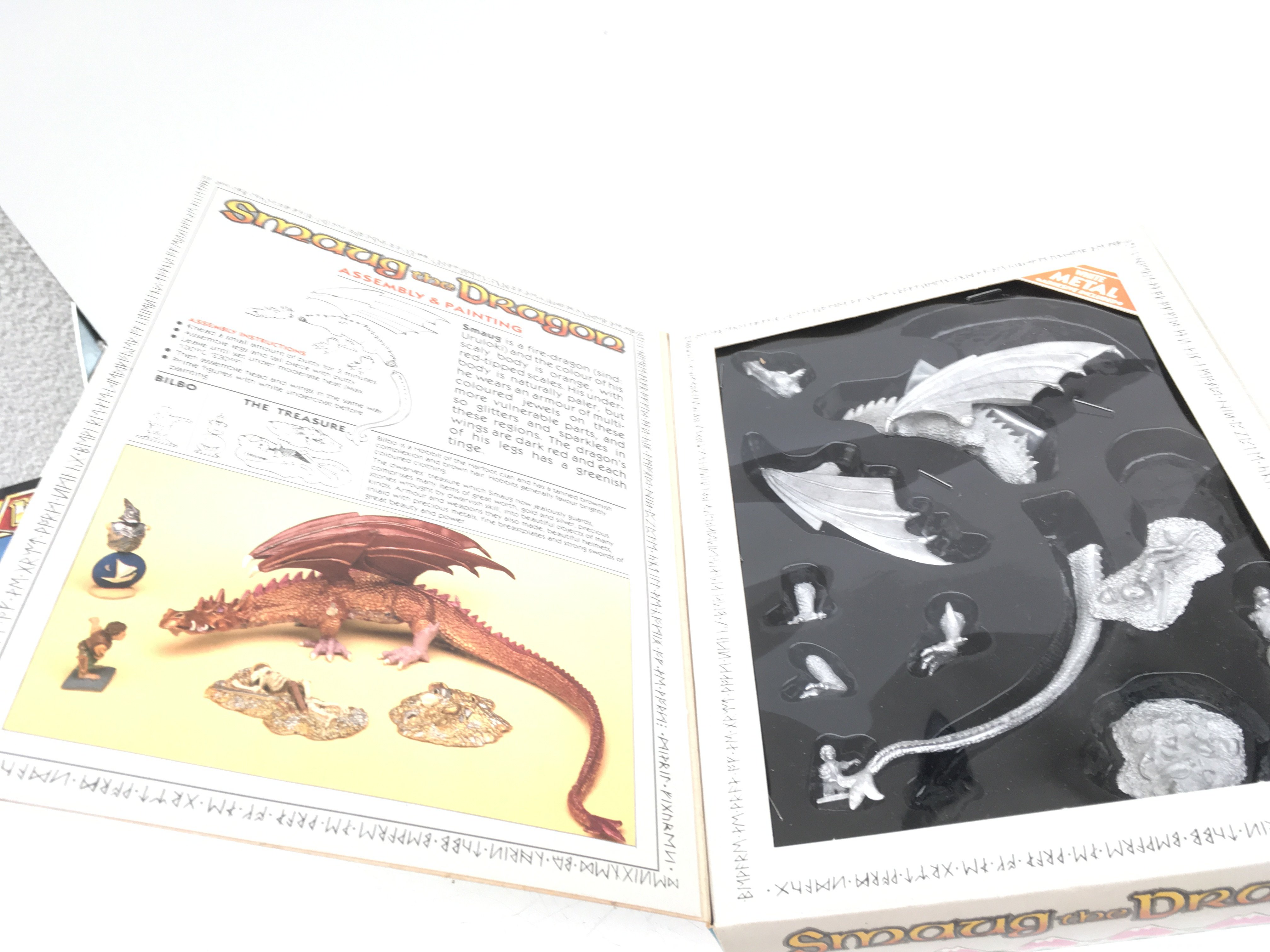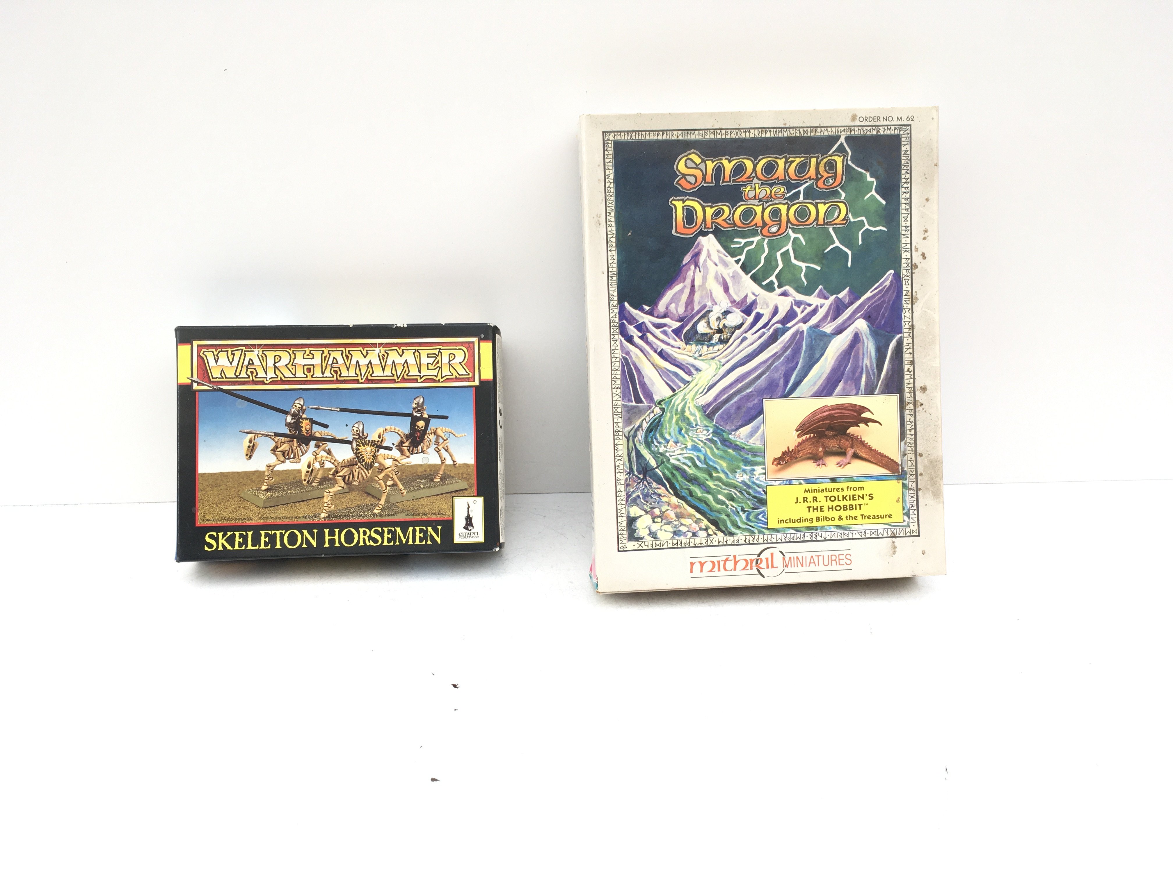Two boxed Mendel miniature sets 1 Warhammer SKELETON HORSEMEN and 1 SMAUG THE DRAGON NO RESERVE