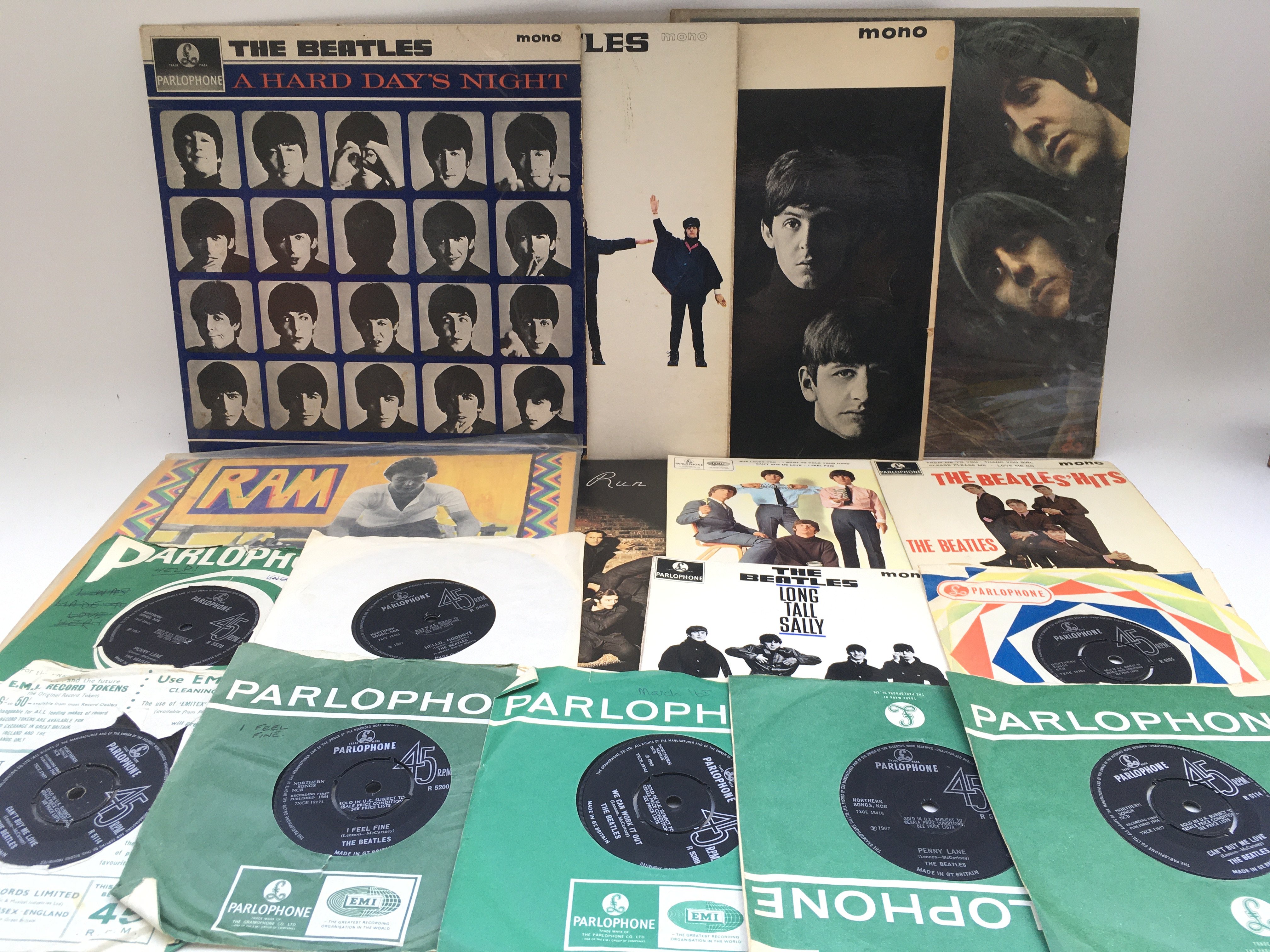 A collection of a Beatles and solo LPs, EPs and 7" singles including 'With The Beatles', 'Long Tall Sally' EP and others.