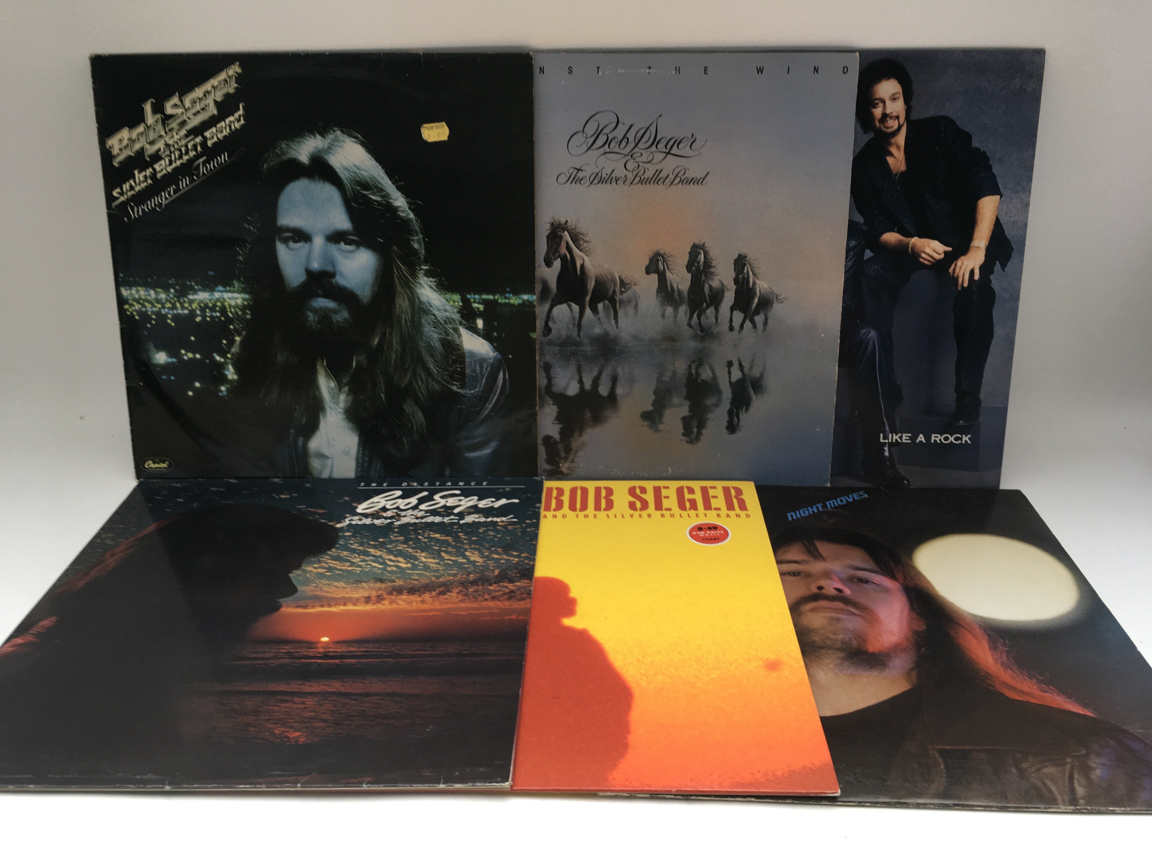 Six Bob Seger & The Silver Bullet Band LPs including 'The Distance', 'Against The Wind' and others.