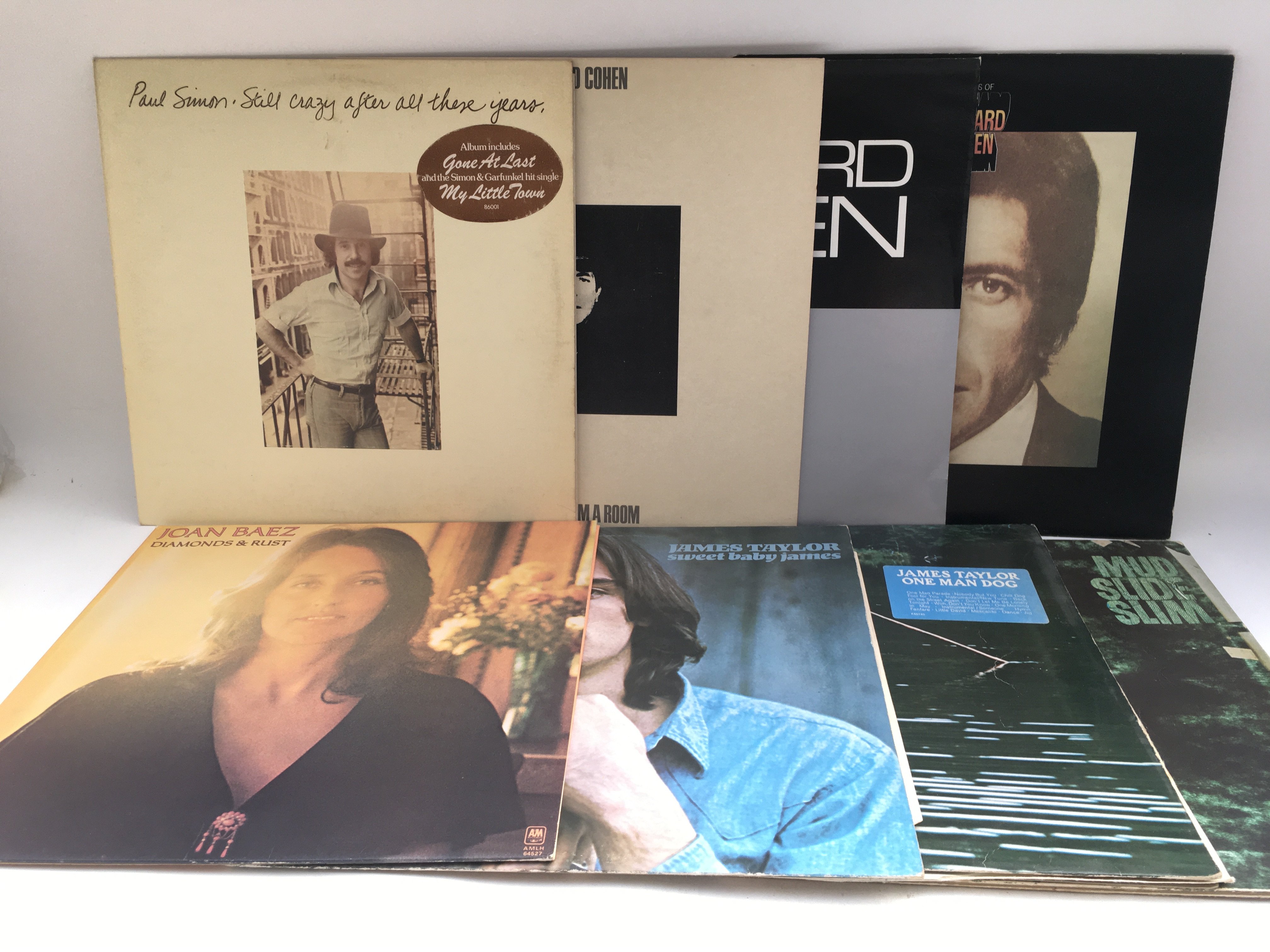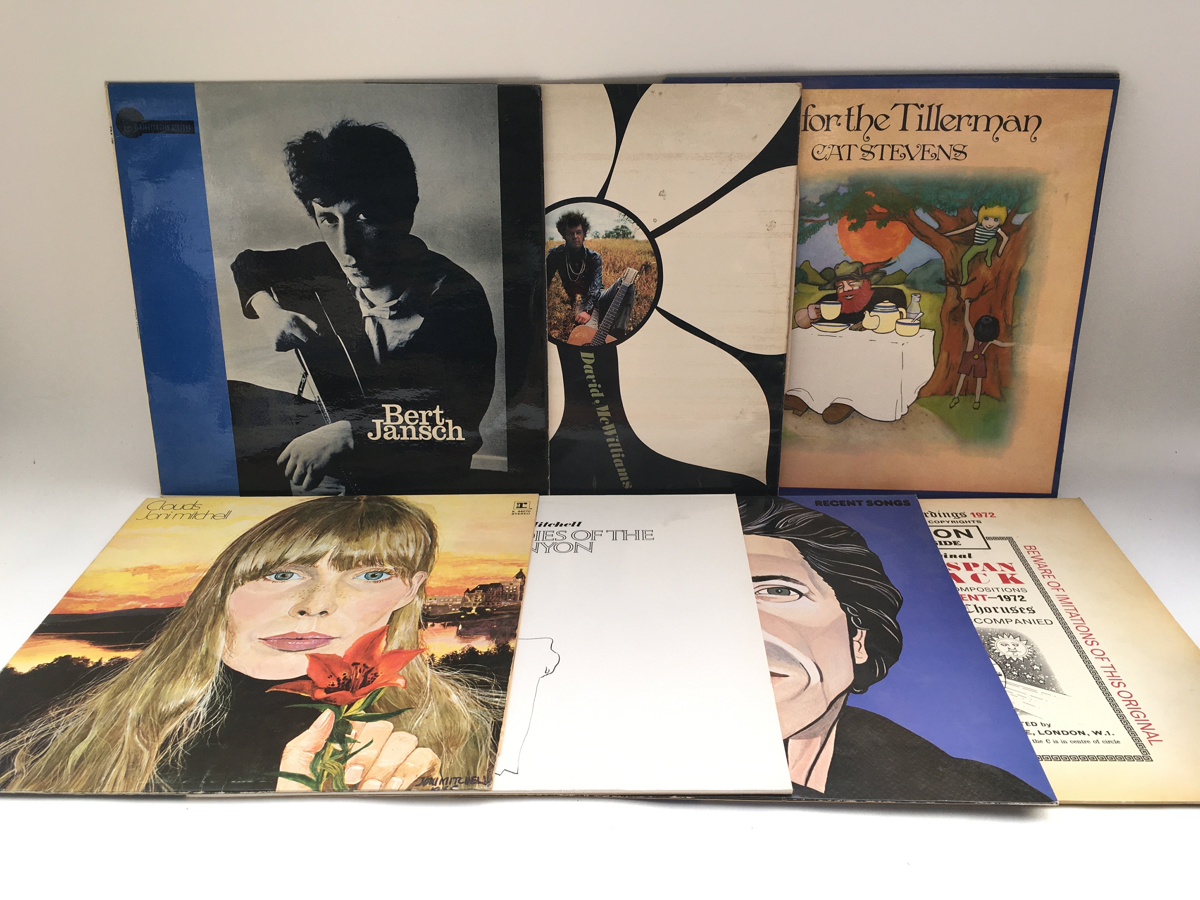 Fifteen folk and singer songwriter LPs by various artists including Bert Jansch, Joni Mitchell, Leonard Cohen and others.