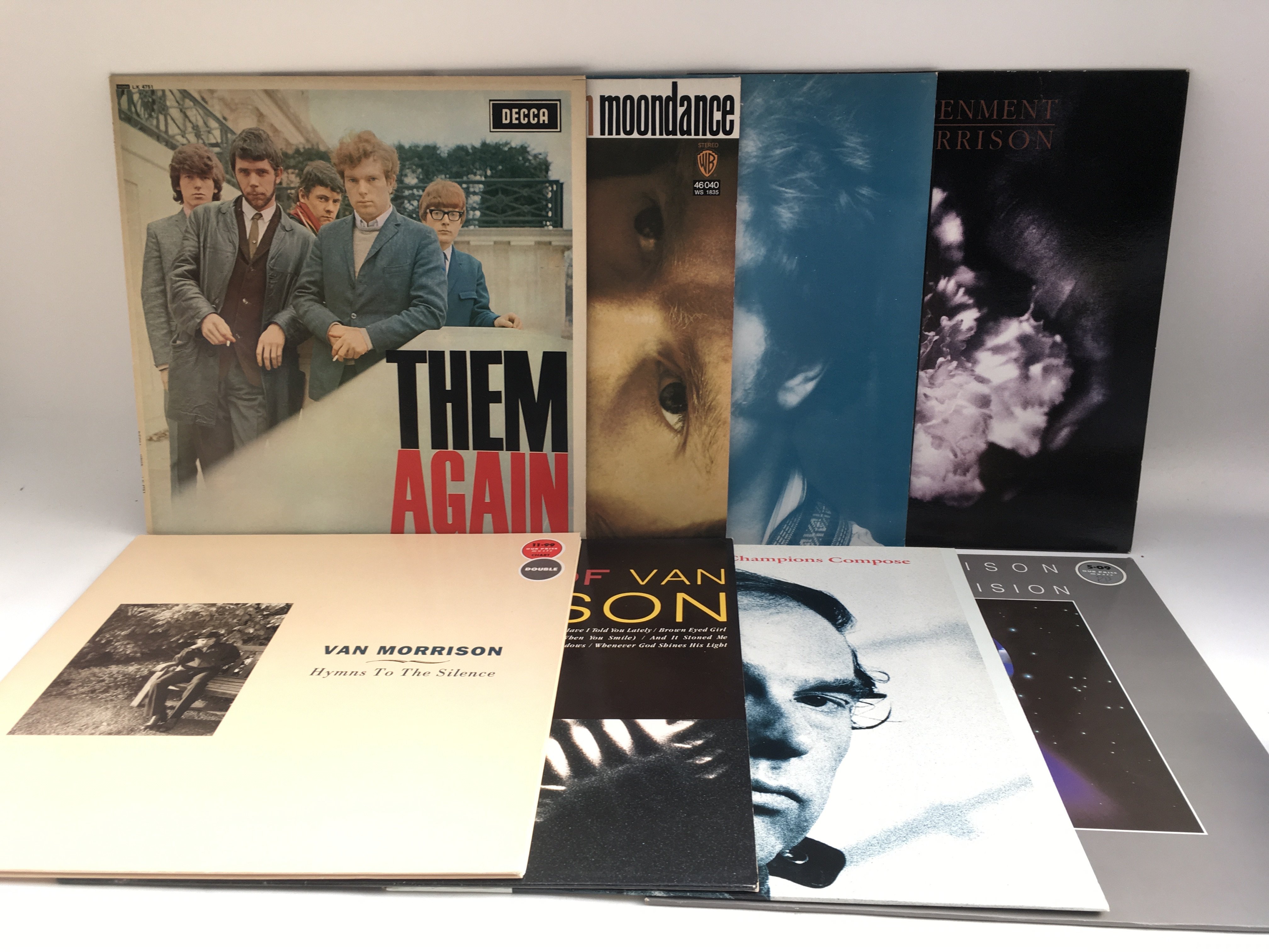 Eight Van Morrison and related LPs comprising a reissue of 'Them Again', 'Moondance' and others.