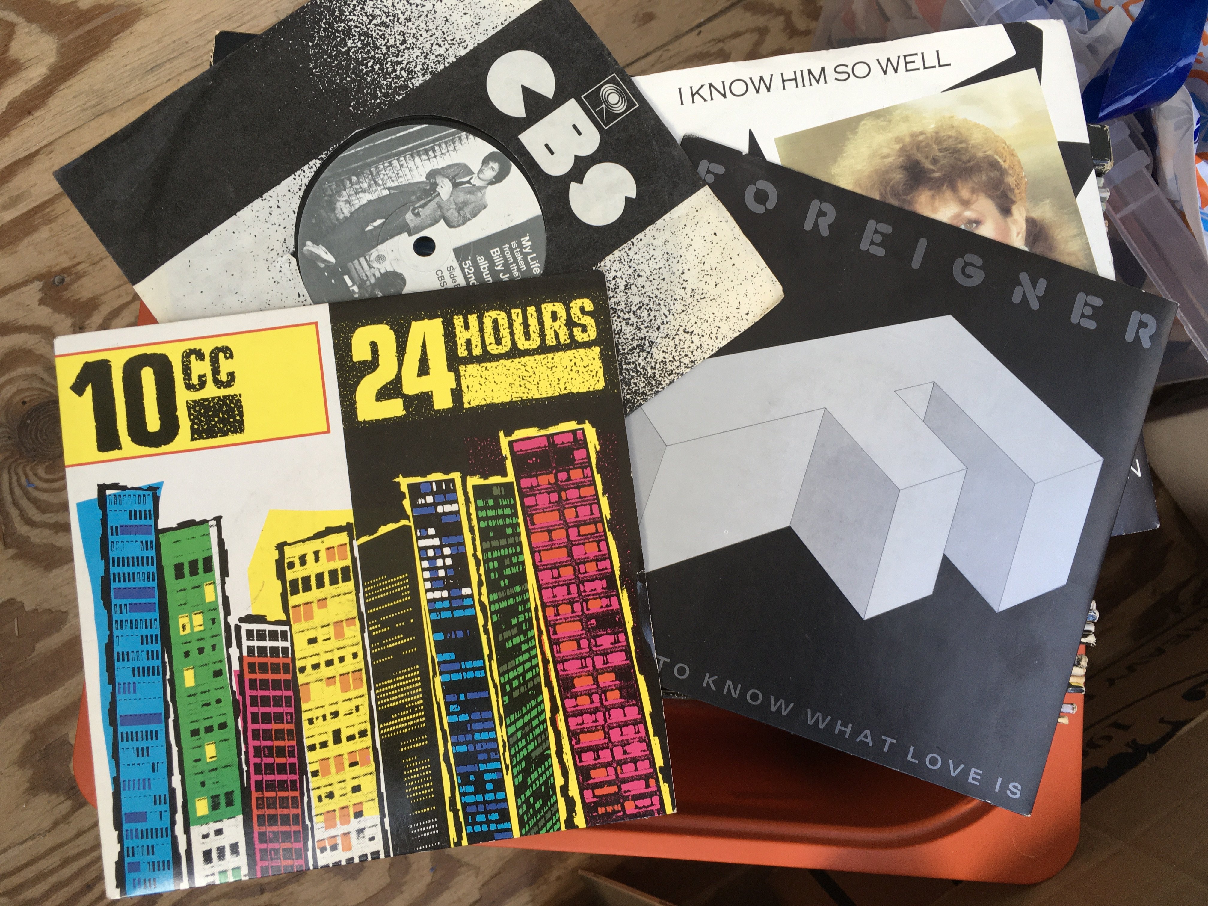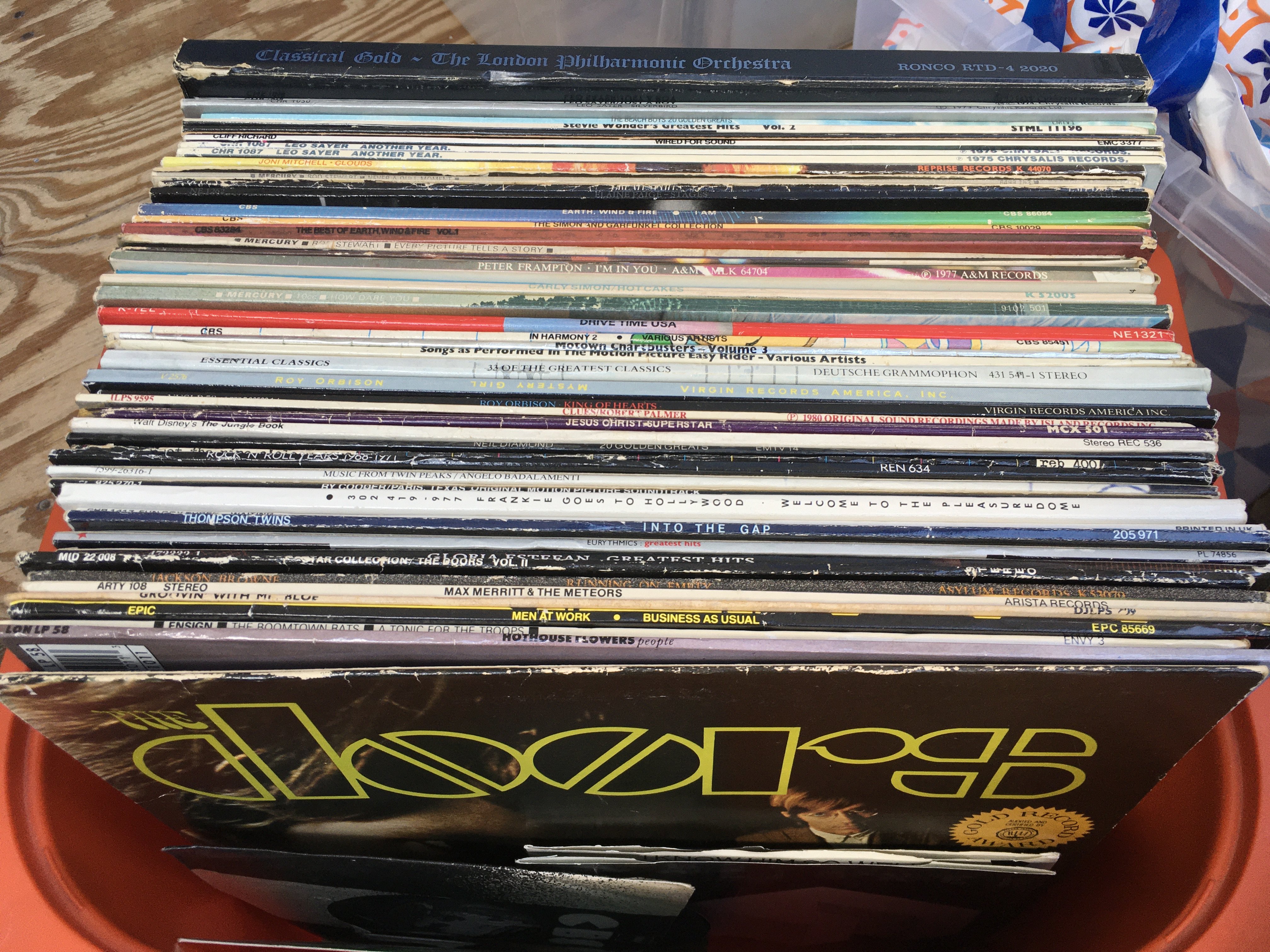 A box of LPs by various artists including Frankie Goes Tao Hollywood, Jackson Browne, The Doors and others plus some 7" singles.