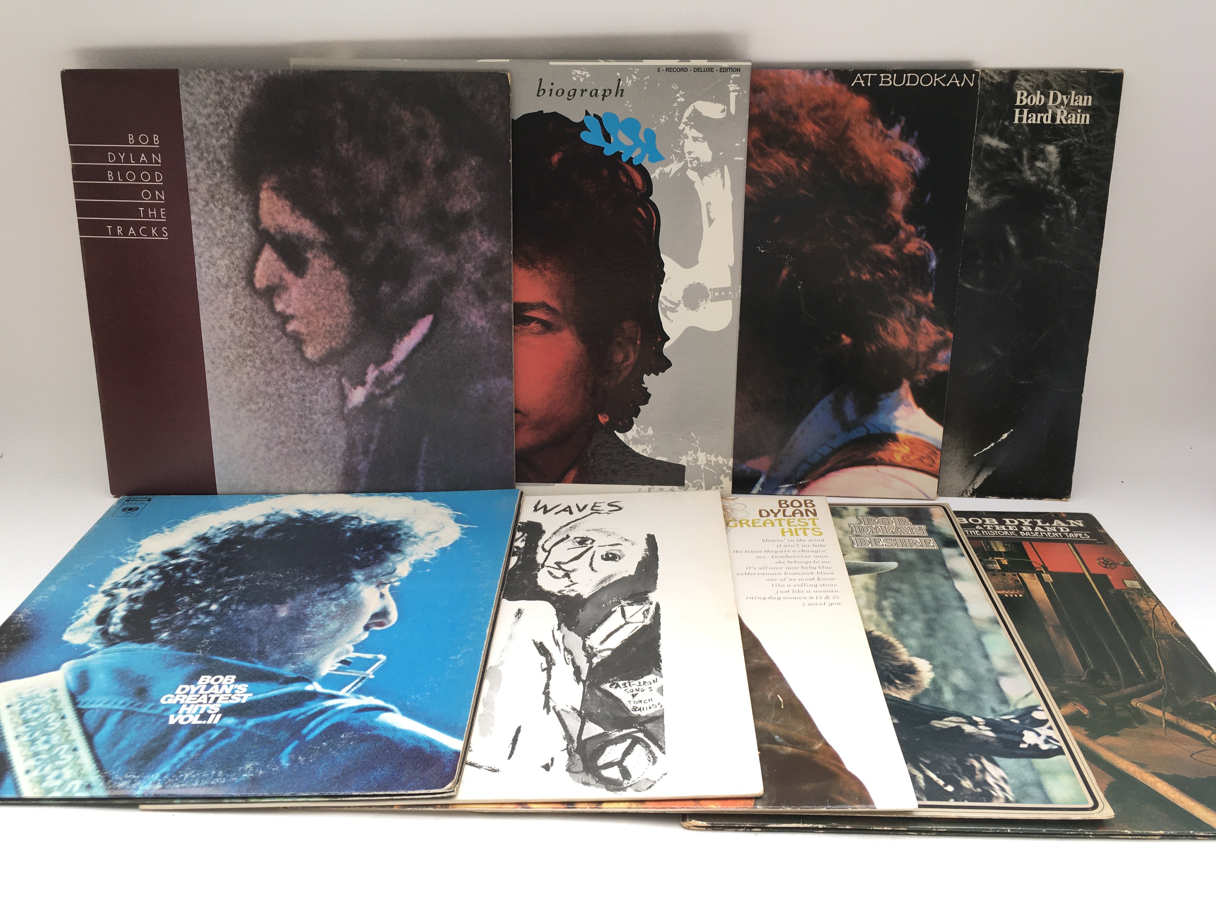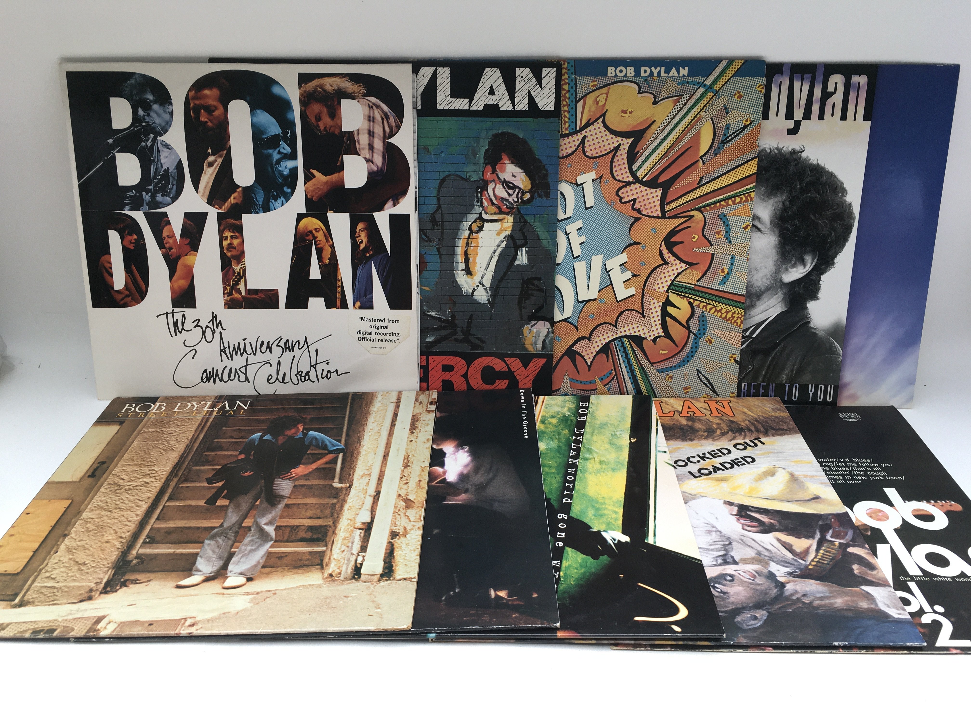 Two bags of 18 Bob Dylan LPs comprising 'Blood On The Tracks', a 5LP 'Biograph' box set, 'Desire' and others.