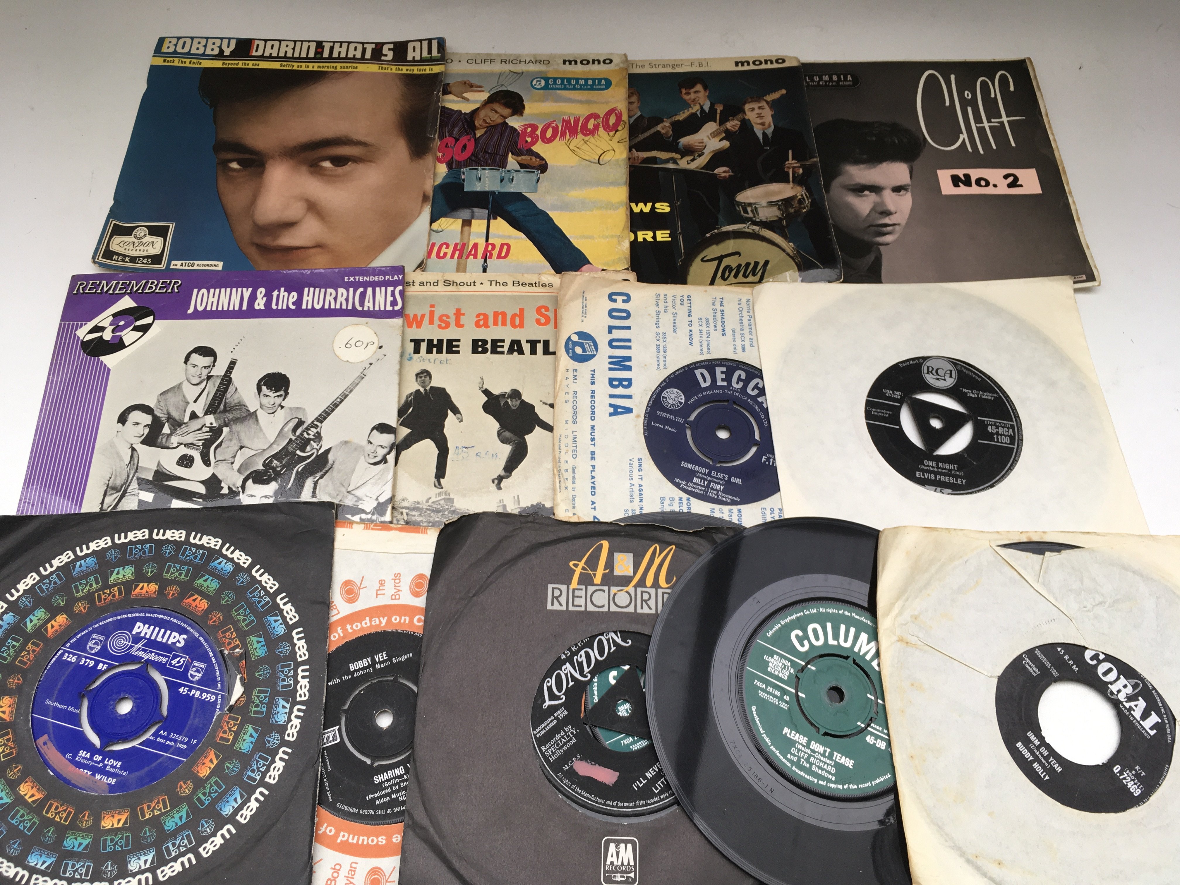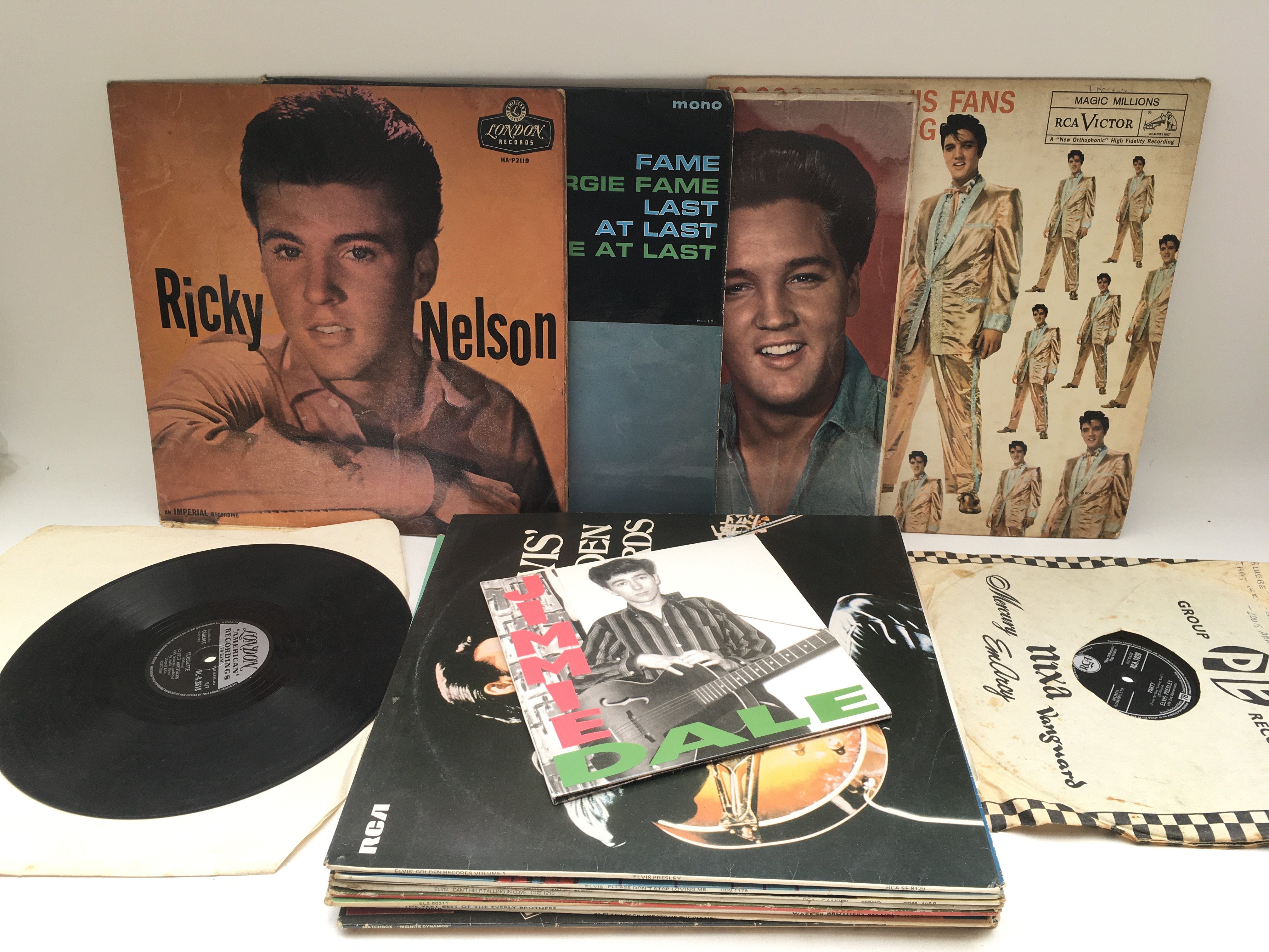 Two bags of mainly 60s rock n roll and pop LPs, 78s, EPs and 7" singles by various artists including Elvis Presley, Billy Fury, Ricky Nelson and others.