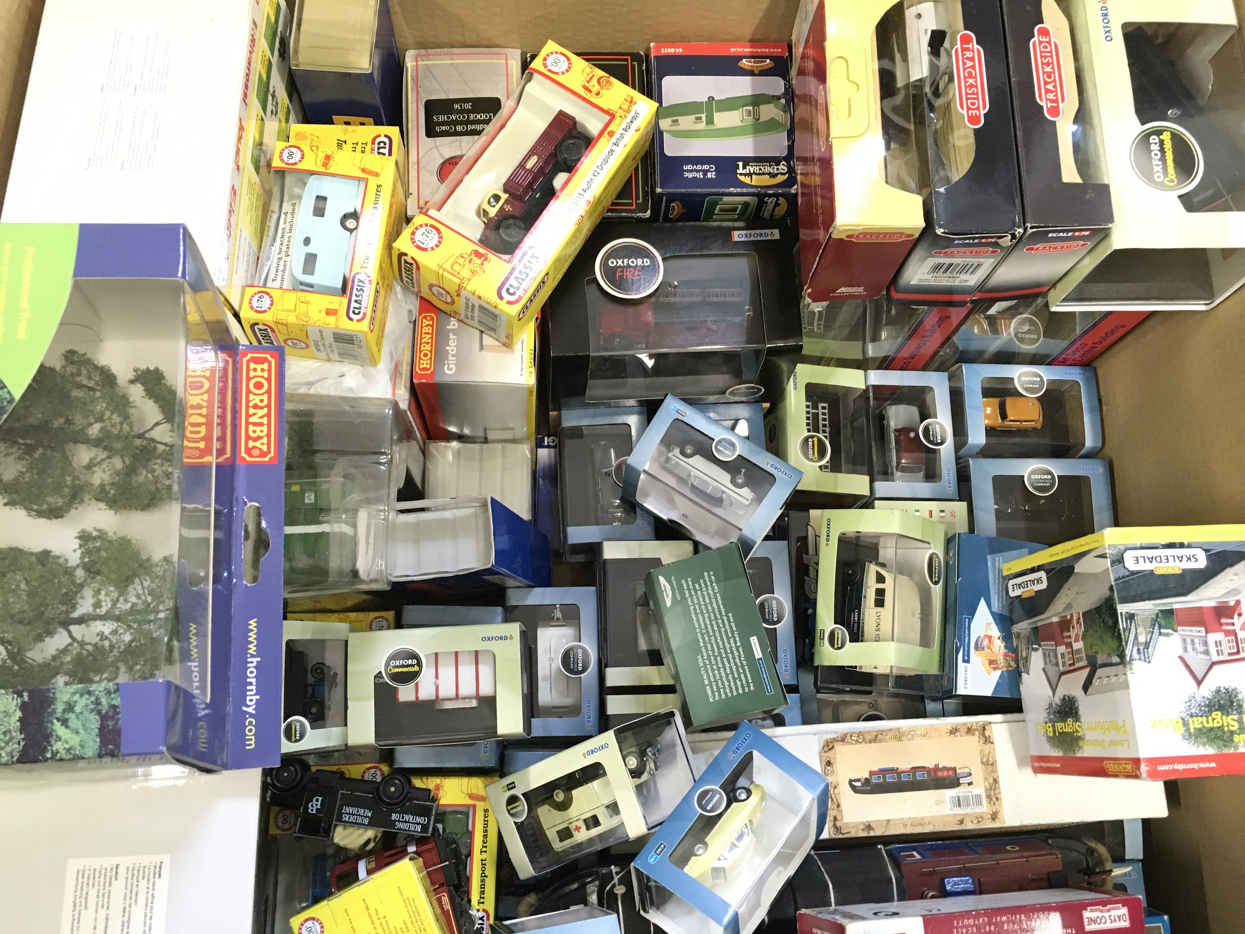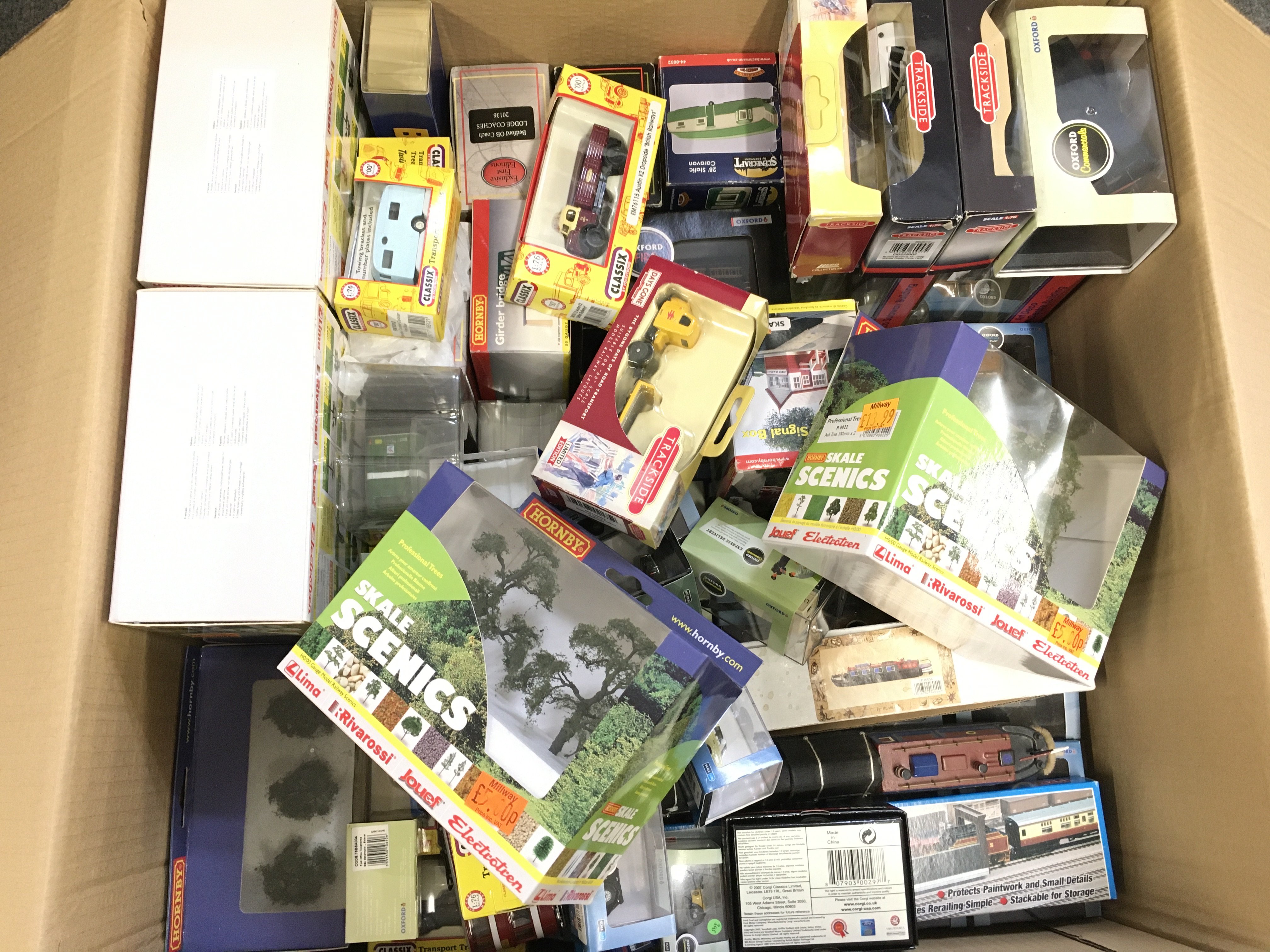 A Box Containing Boxed Oxford Diecast. Hornby Scenes. Exclusive First Editions Etc. No Reserve.