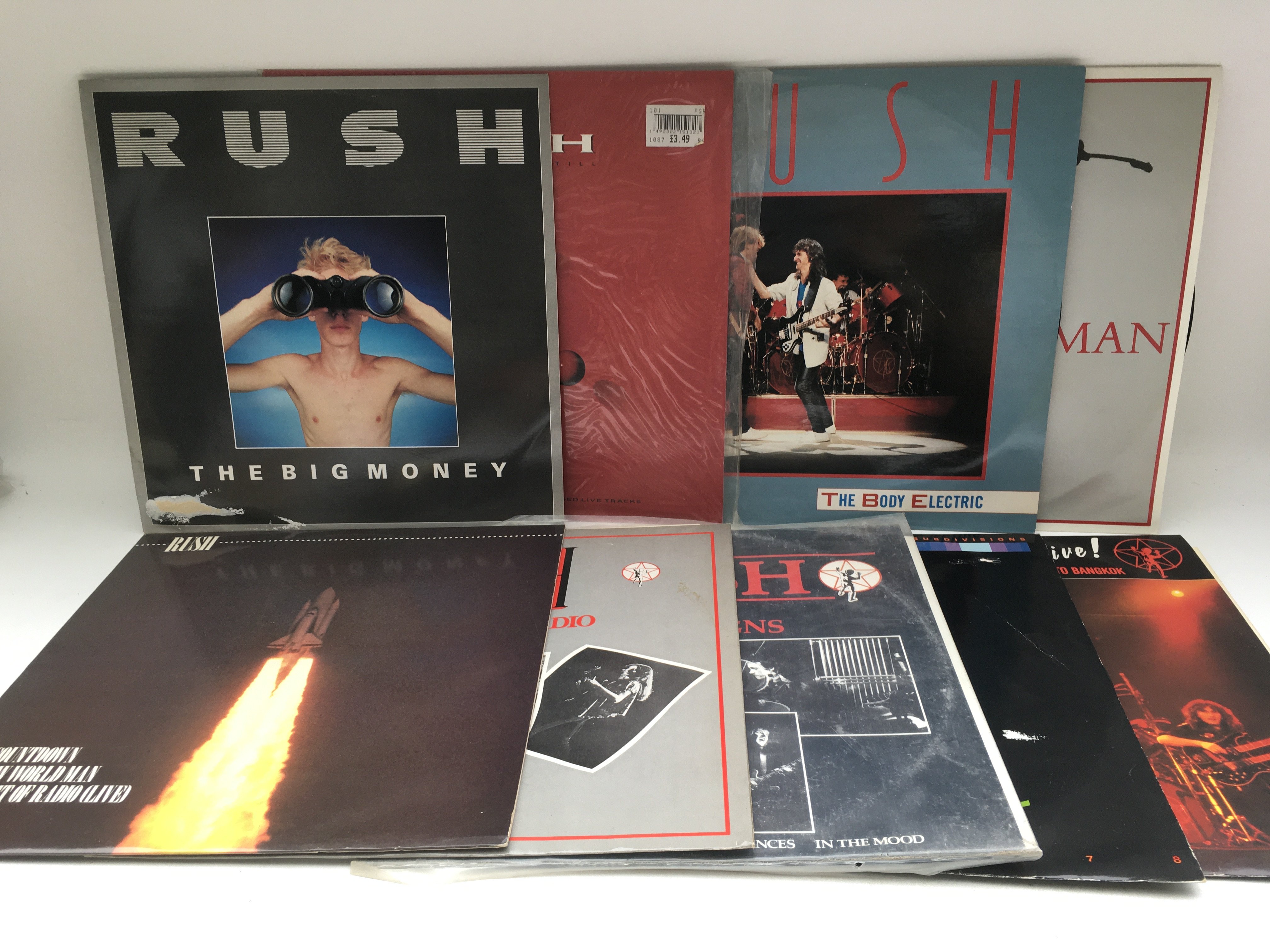 Eighteen Rush LPs and 12" singles comprising 'Power Windows', 'Hold Your Fire', 'Signals' and others.