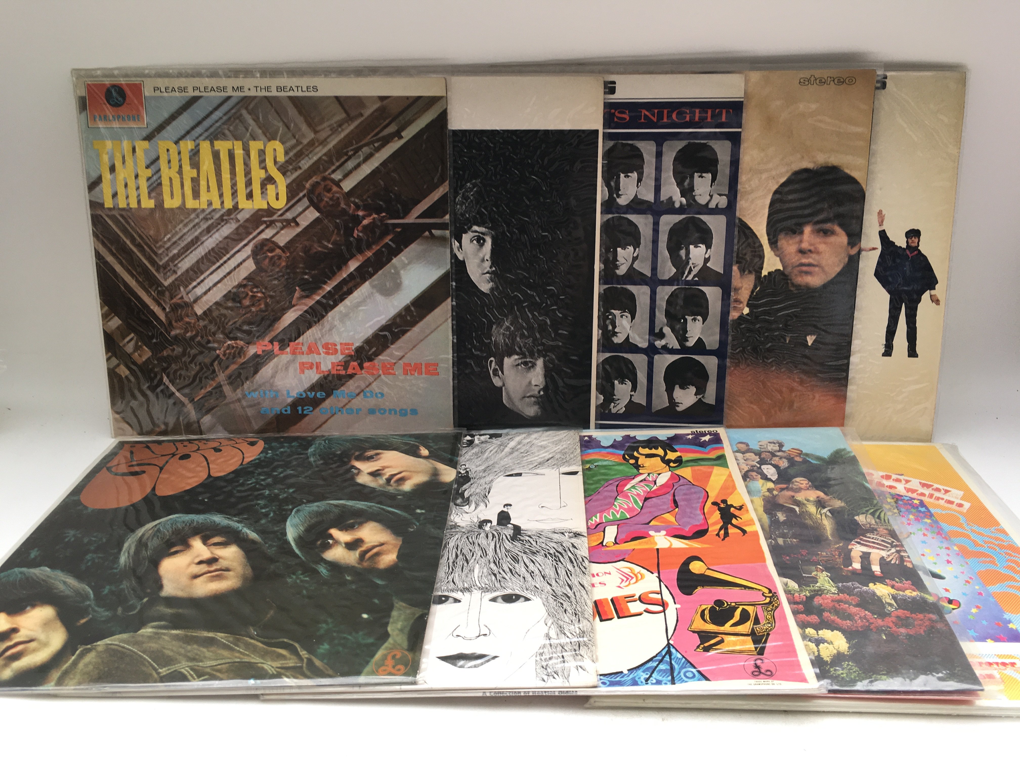 Ten Beatles LPs comprising later pressings of 'Please Please Me', 'Revolver', 'Magical Mystery Tour' and others.