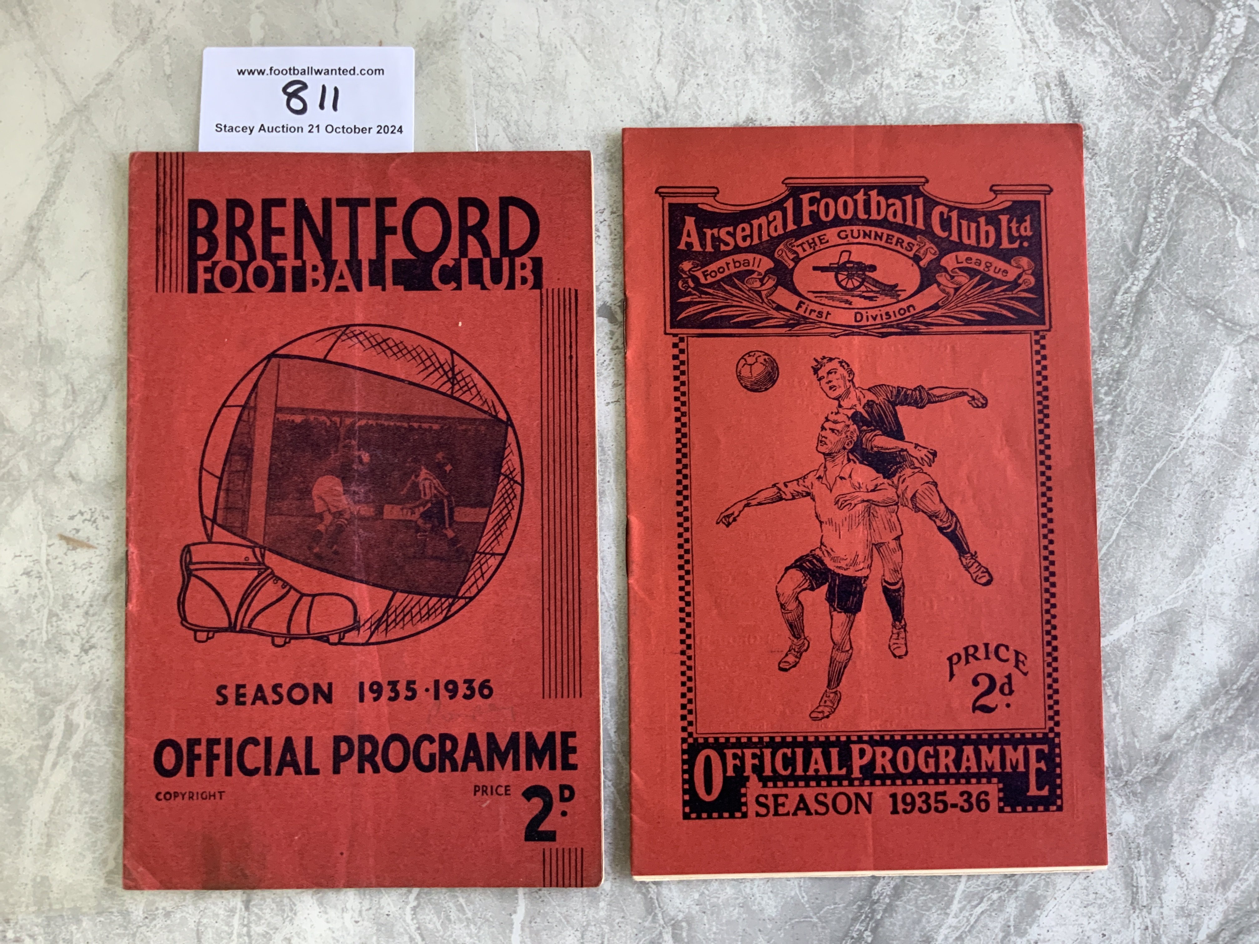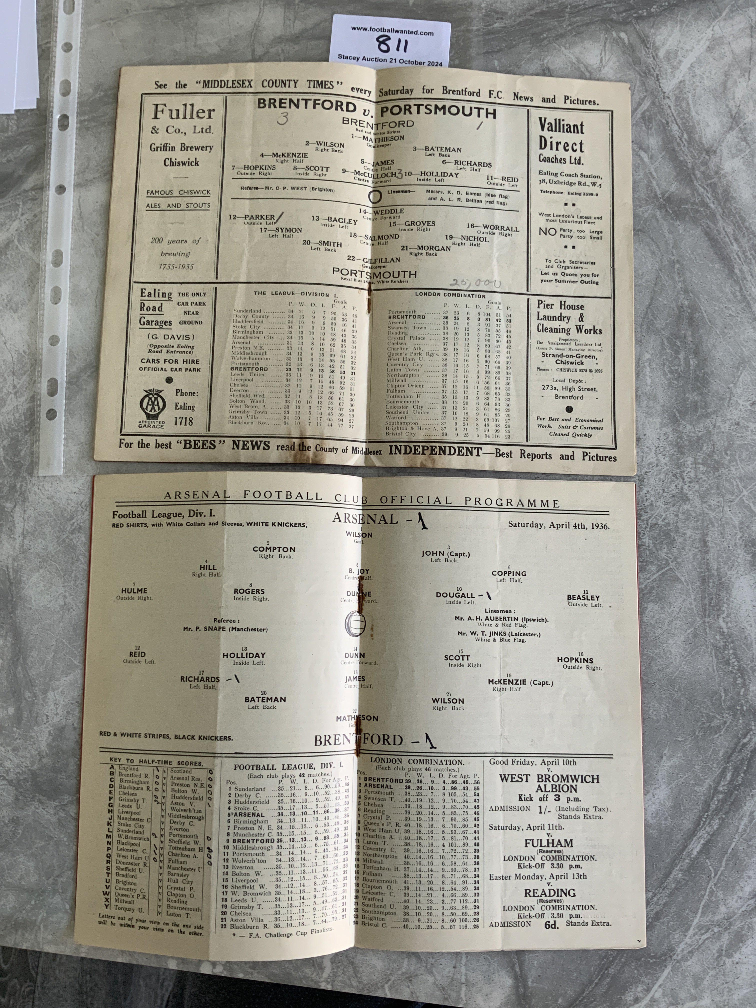 Brentford 35/36 Football Programmes: Arsenal away and Portsmouth at home both good with score and scorers noted inside. (2)