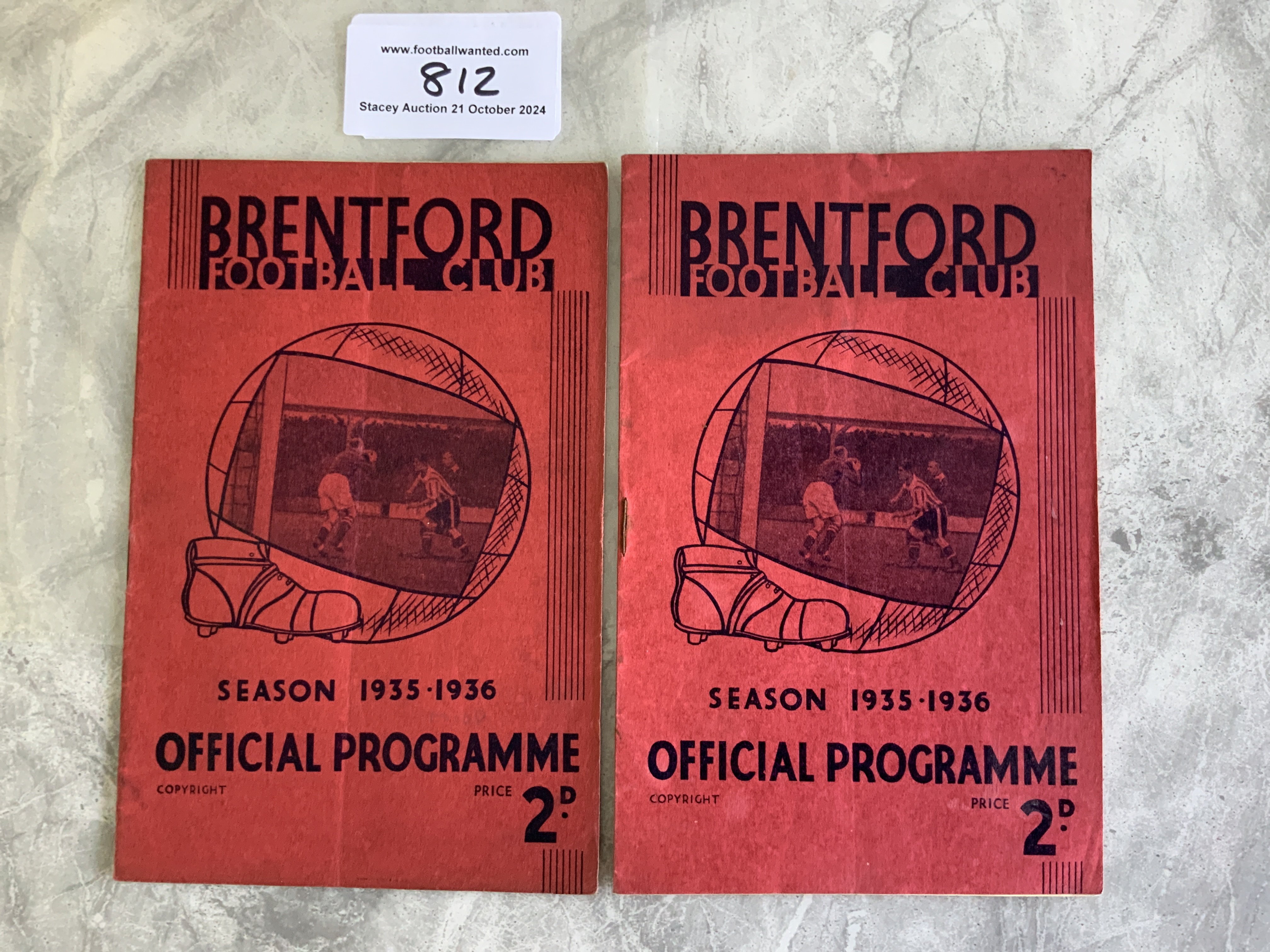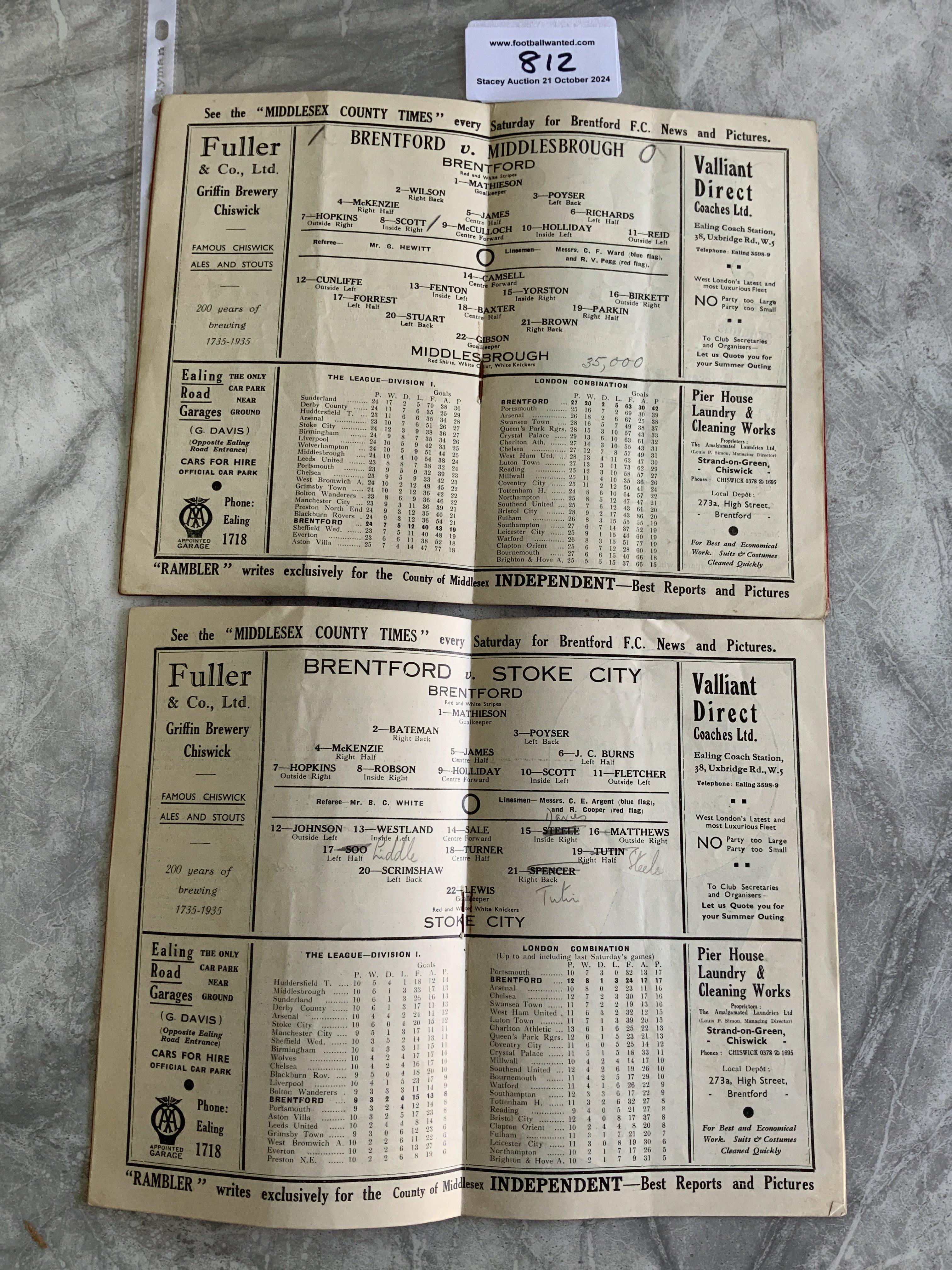 Brentford 35/36 Home Football Programmes: Stoke and Middlesbrough both very good with pencilled team changes. (2)