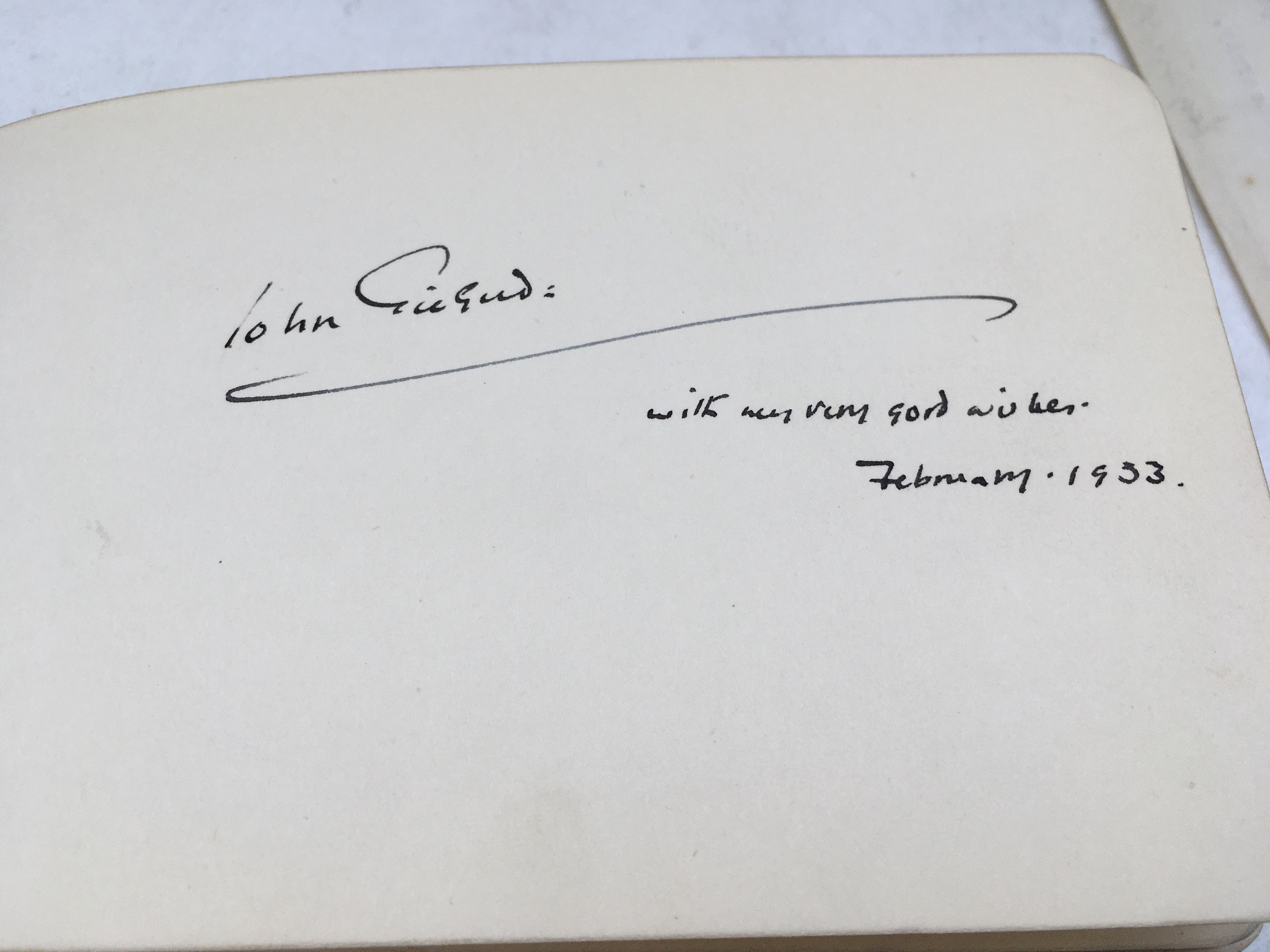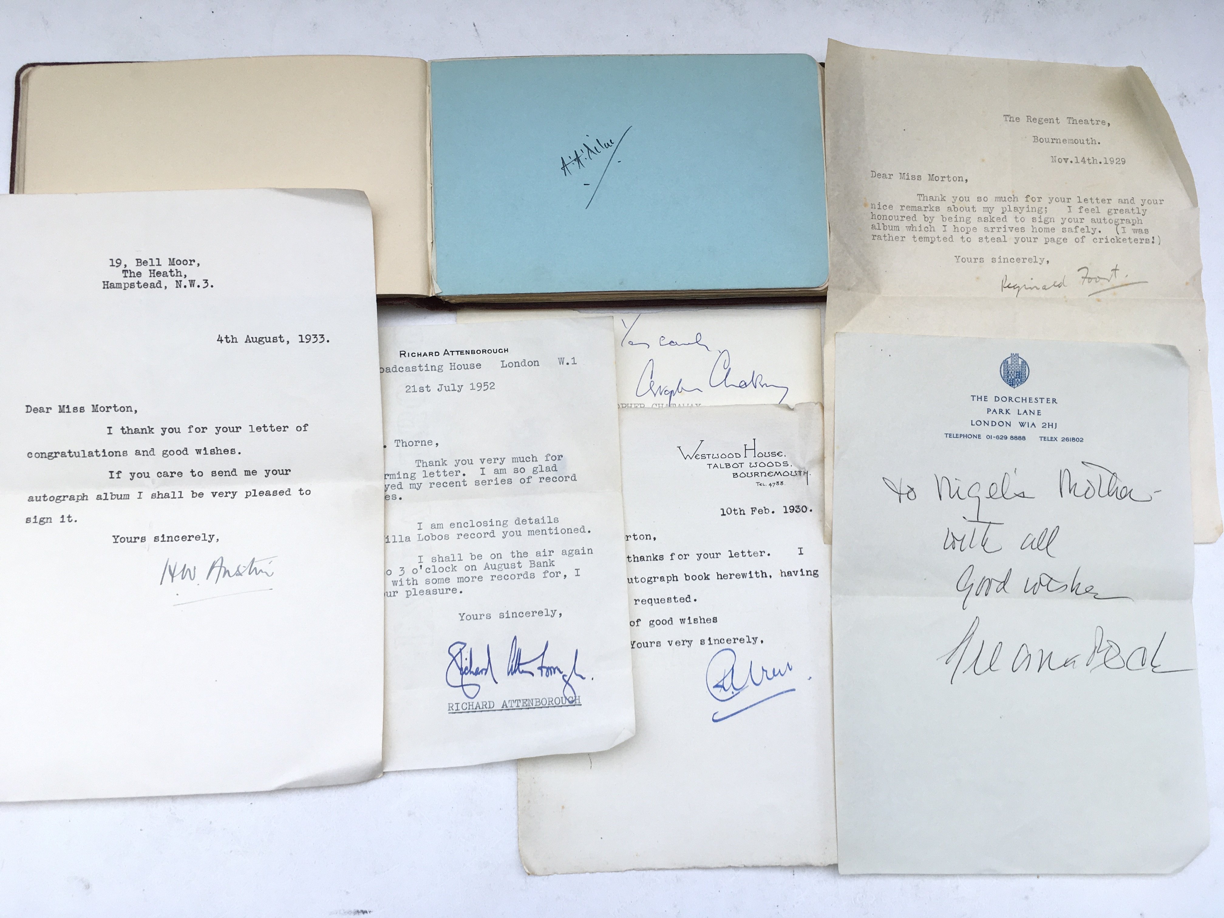 A collection of autographs, both loose and in an autograph booklet. Names include Richard Attenborough, AA Milne, John Gielgud, Ivor Novello, Gracie Fields and others. Also includes a collection of theatre programmes.