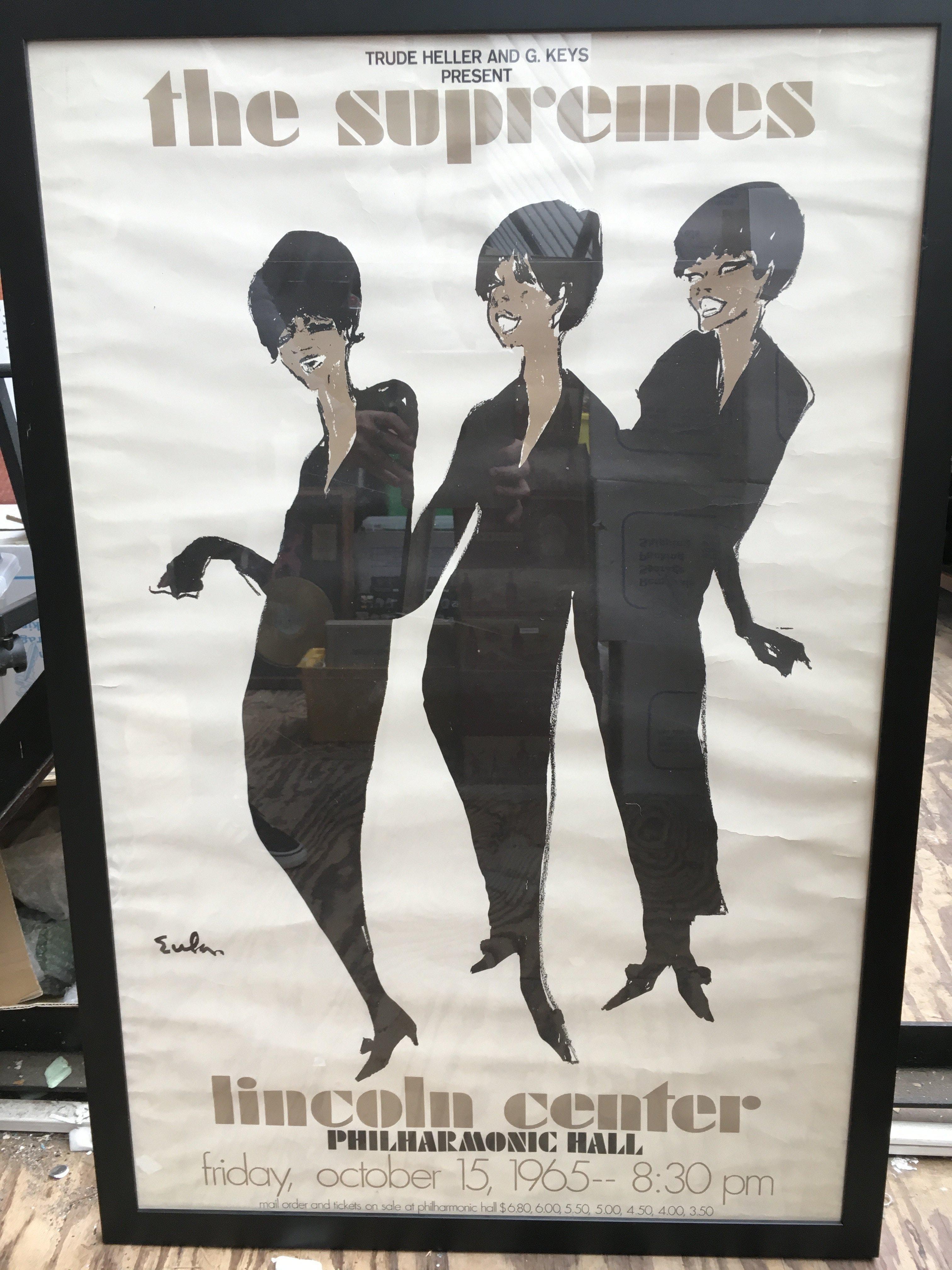 A framed and glazed Supremes poster advertising an appearance at the Philharmonic Hall, Lincoln on Friday, 15th October 1965, approx 69.5cm x 102.5cm.
