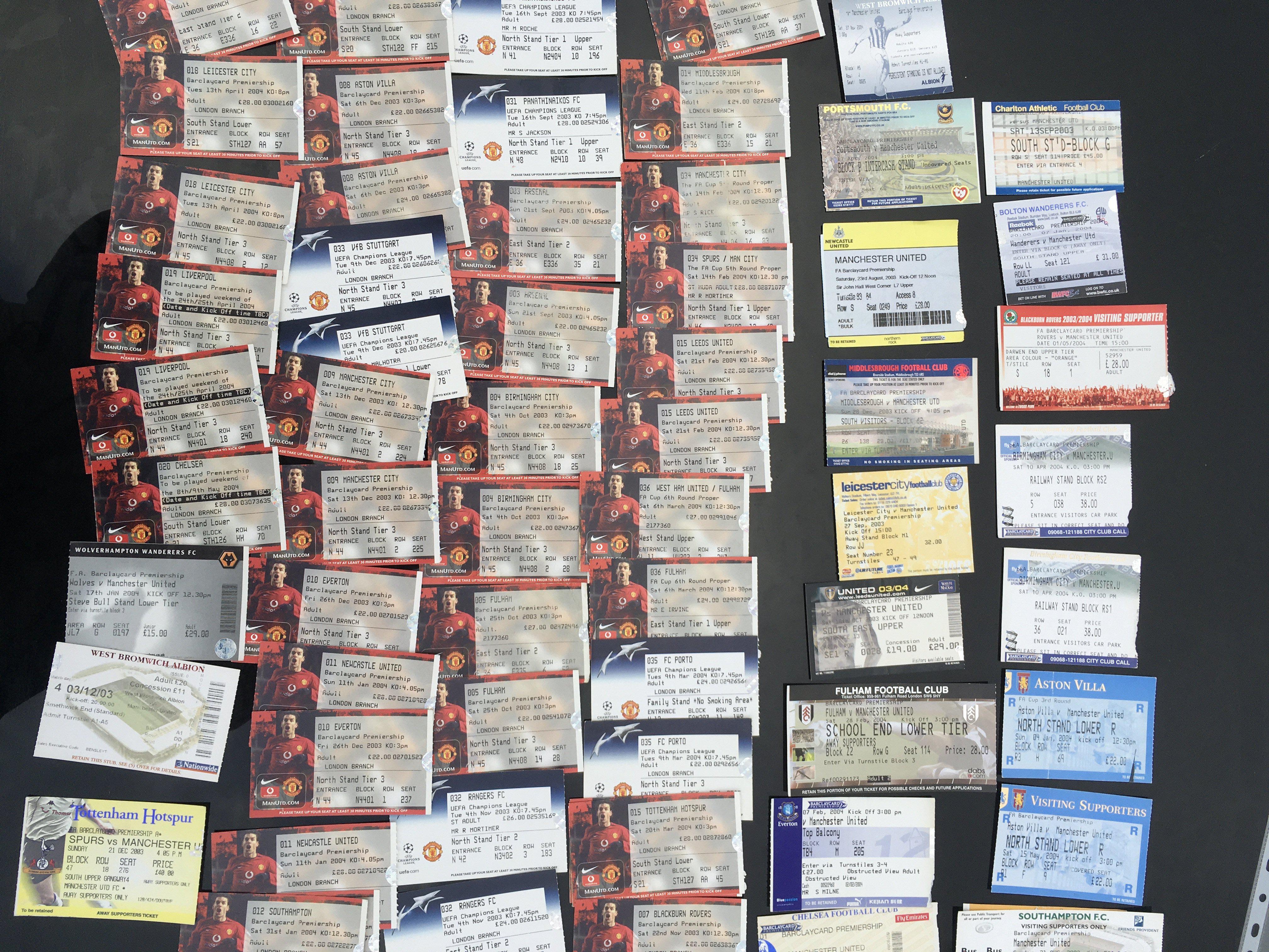 2003/2004 Manchester United Football Tickets: 42 home tickets and 21 away tickets in good condition with duplication. (63)