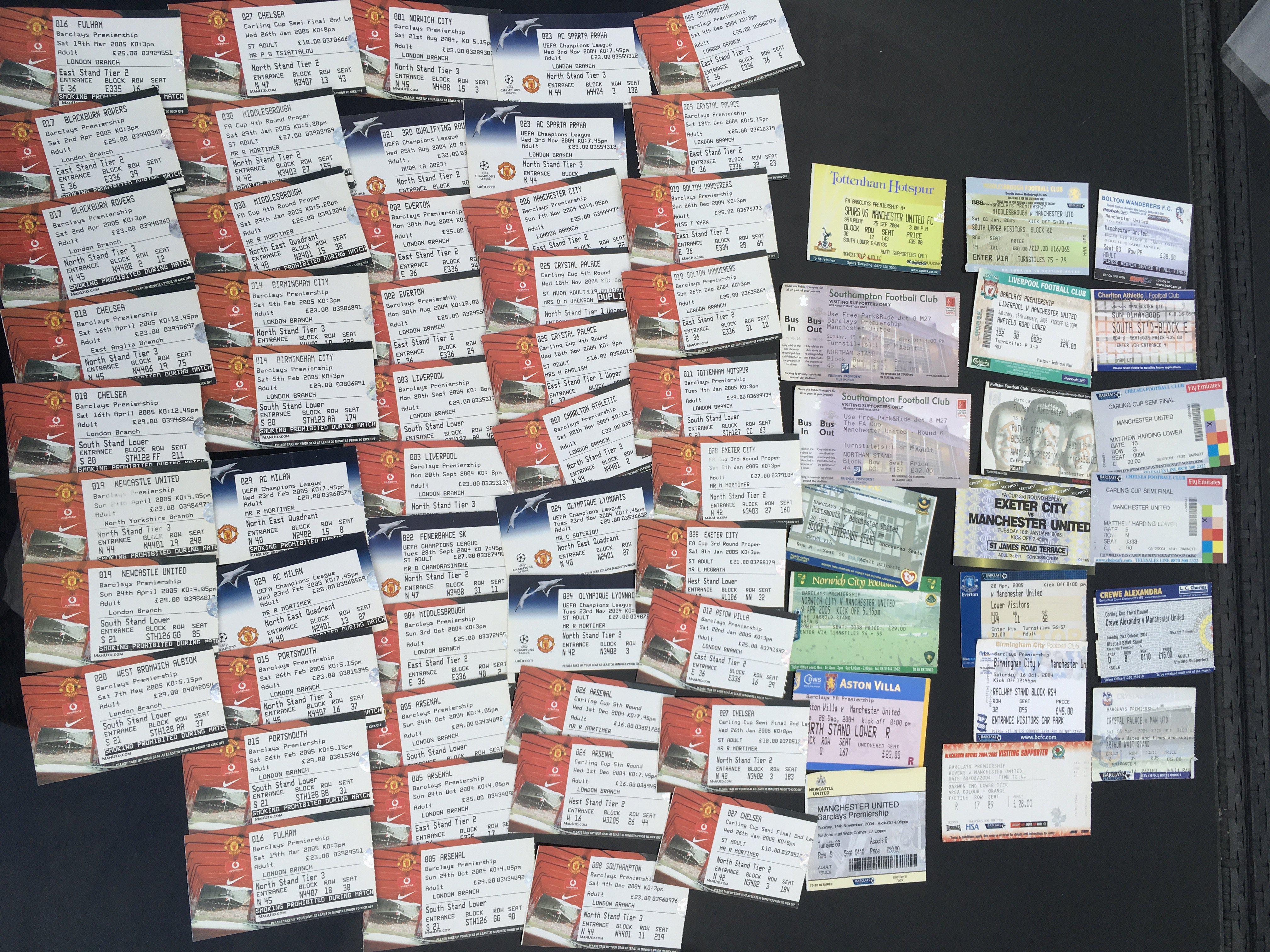2004/2005 Manchester United Football Tickets: 50 home tickets and 20 away tickets in good condition with duplication. (70)