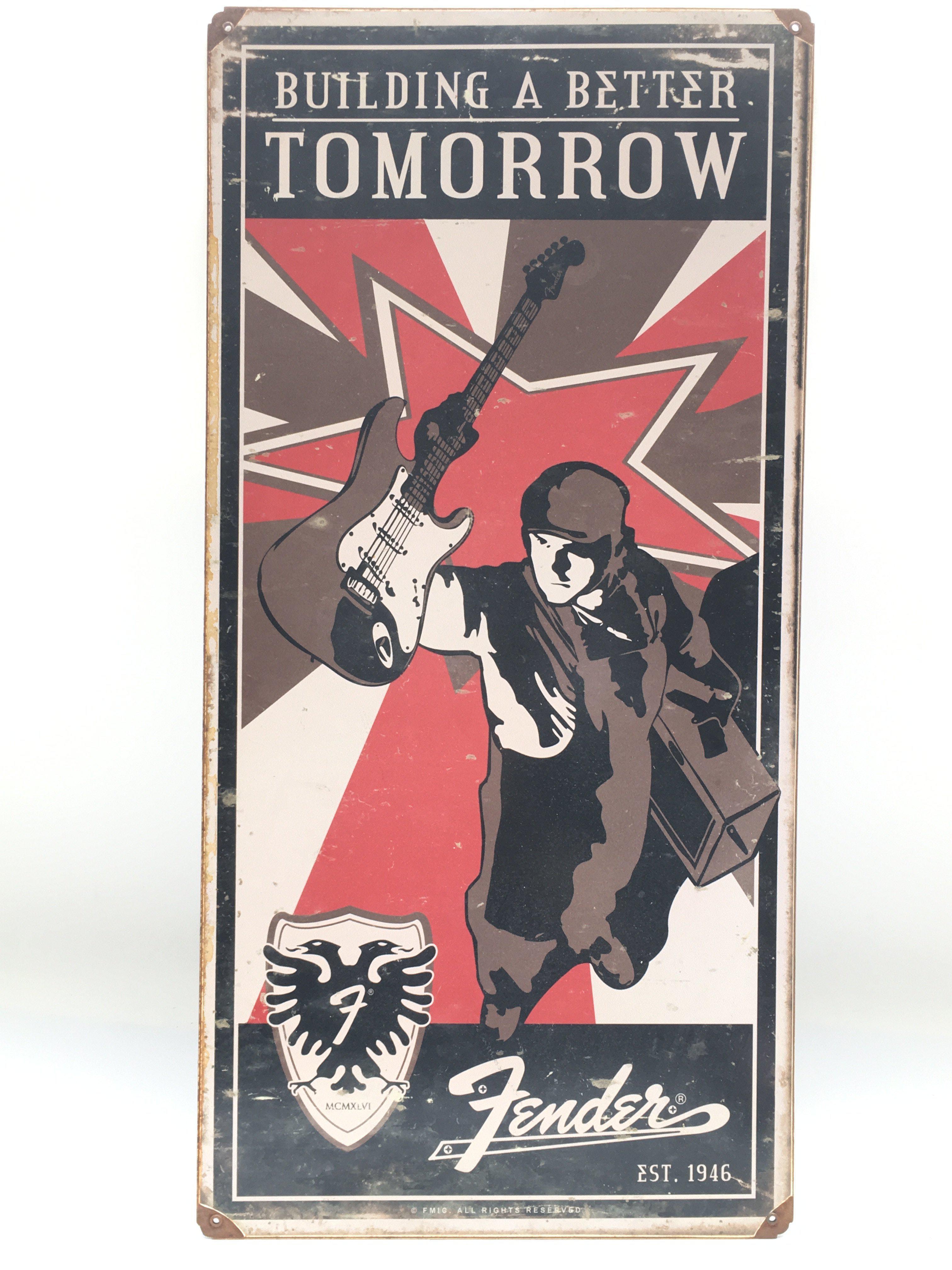 A tin plate Fender advertising sign, approx 29.5cm x 59.5cm.