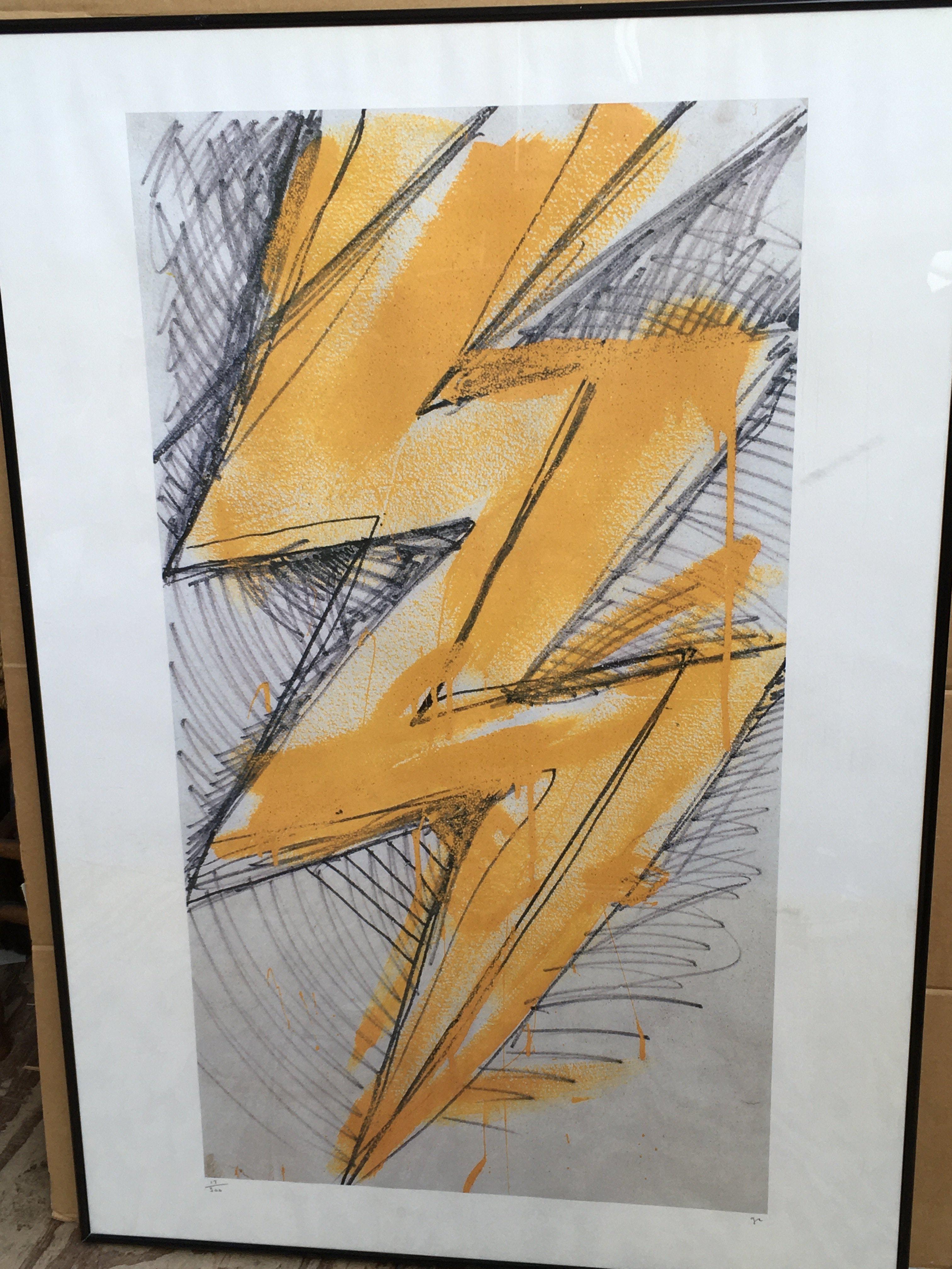A framed and glazed limited edition, signed and hand numbered Graham Coxon lithographic print titled 'Scream Thy Last Scream', 17/300, approx 70cm x 101cm.