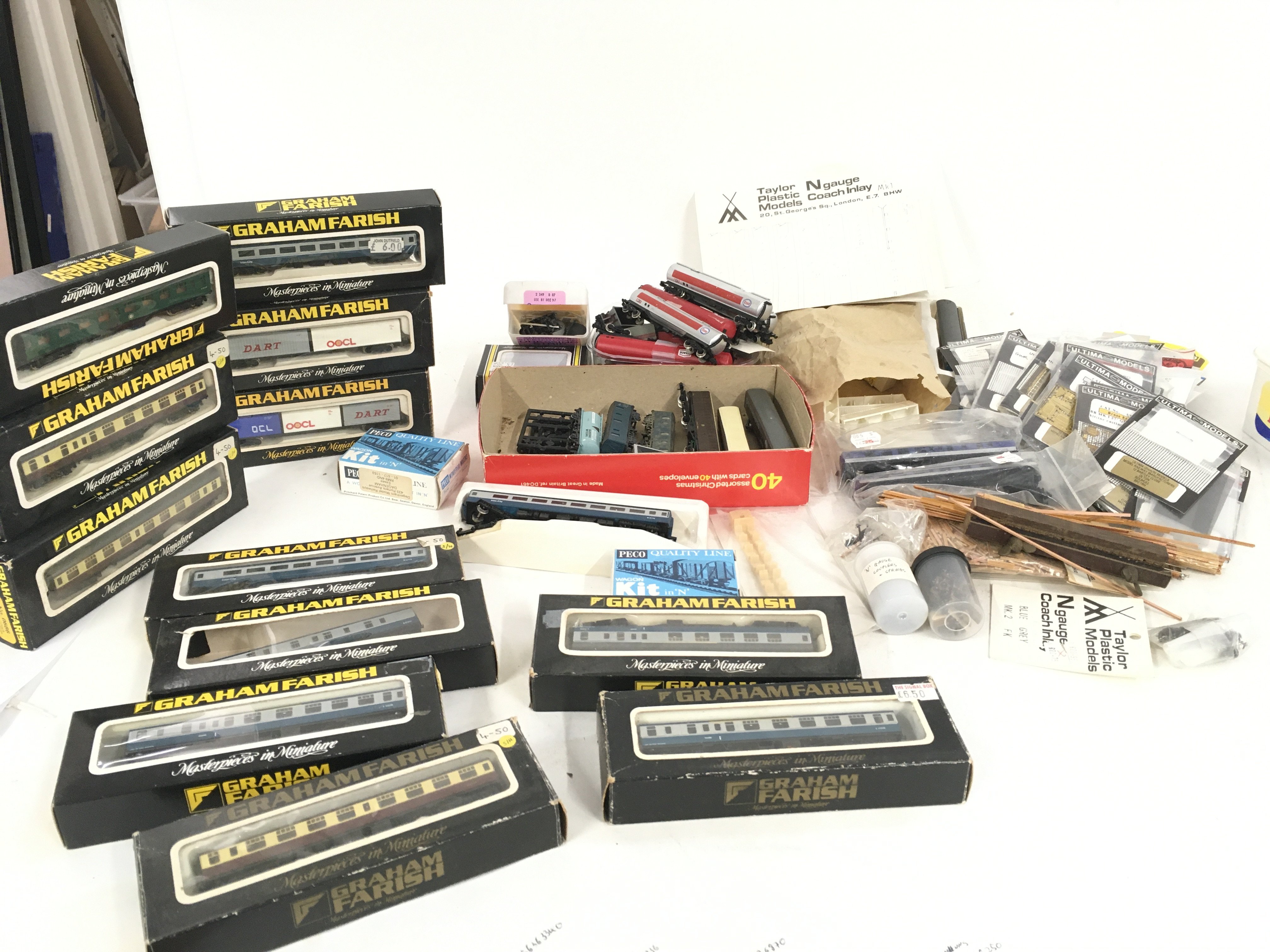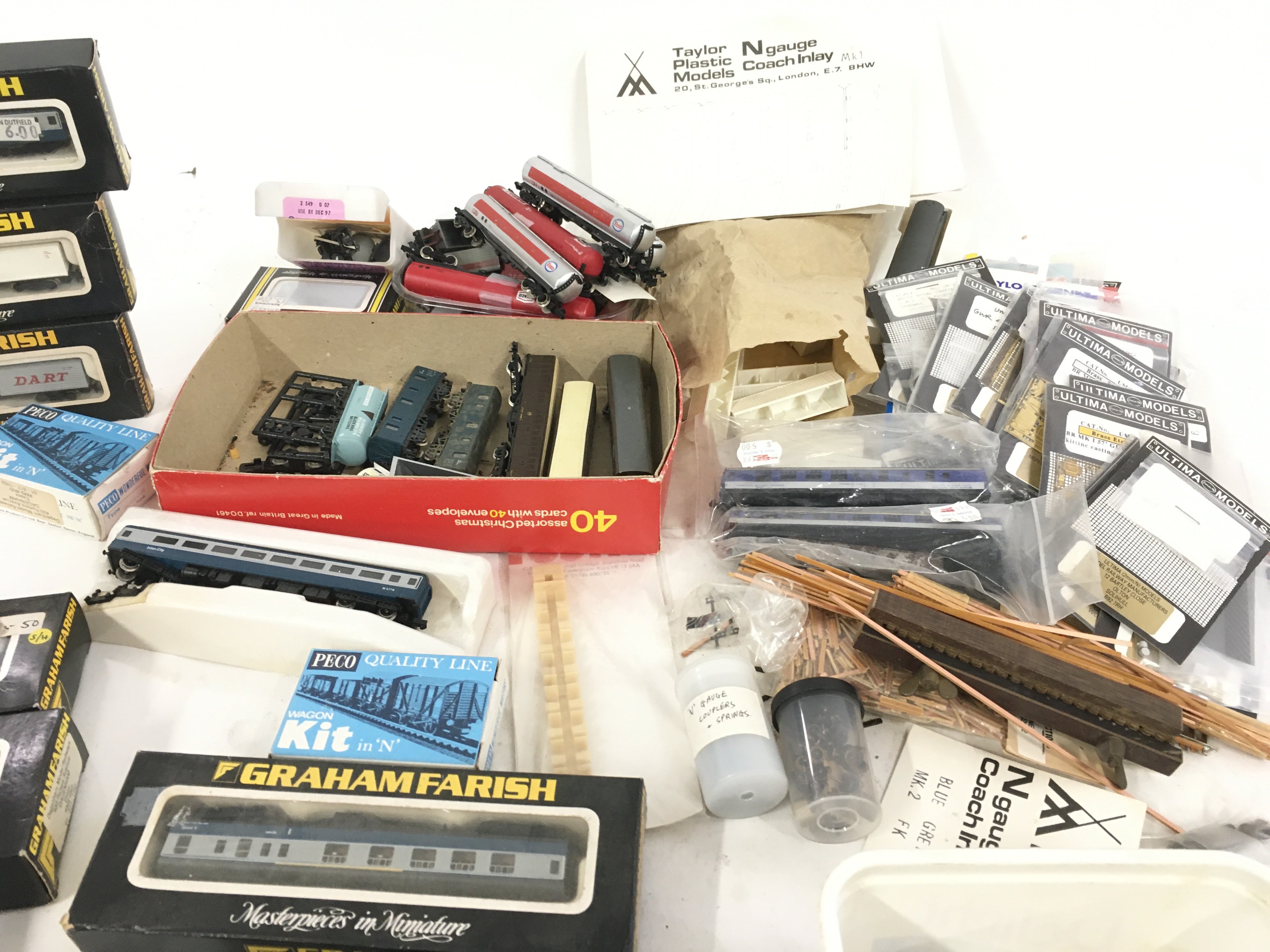 A collection of of n gauge wagons..coaches and accessories by various manufacturers including Graham Farish ..Ultimate Models etc.