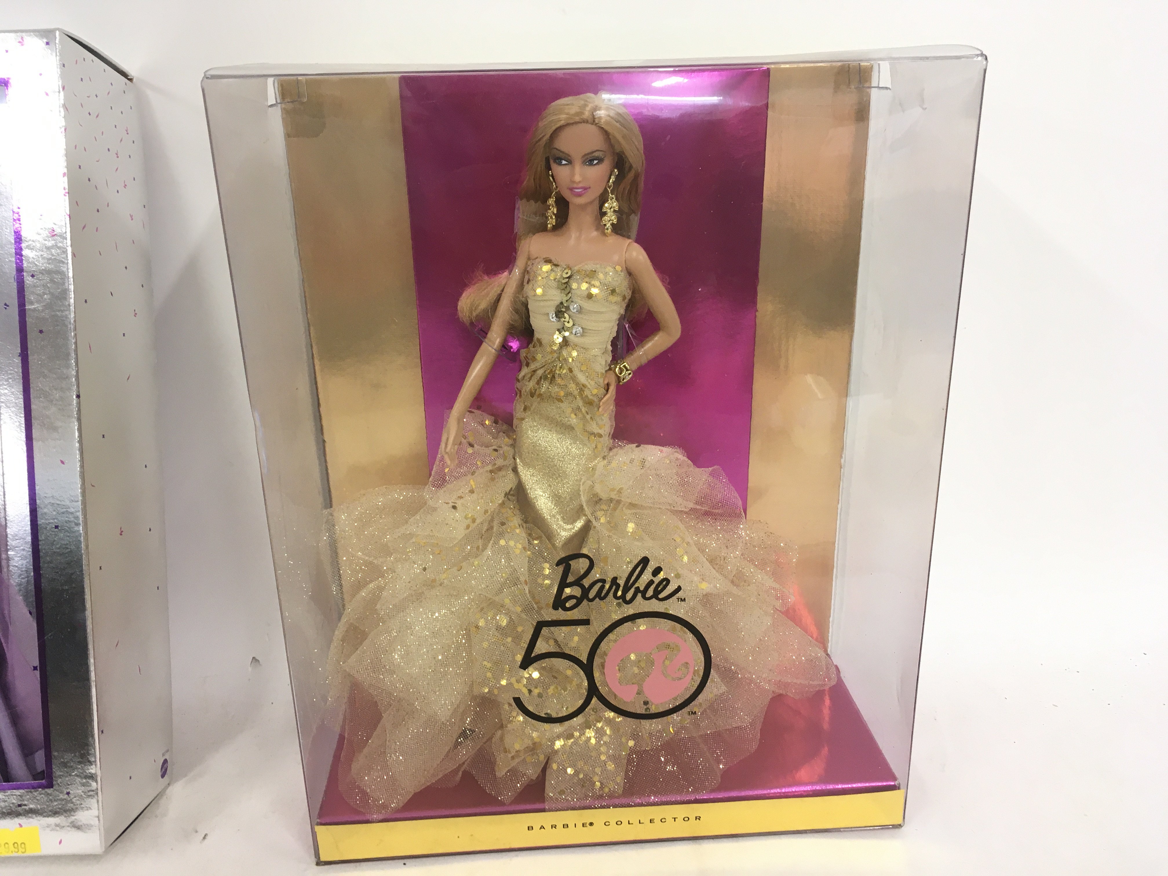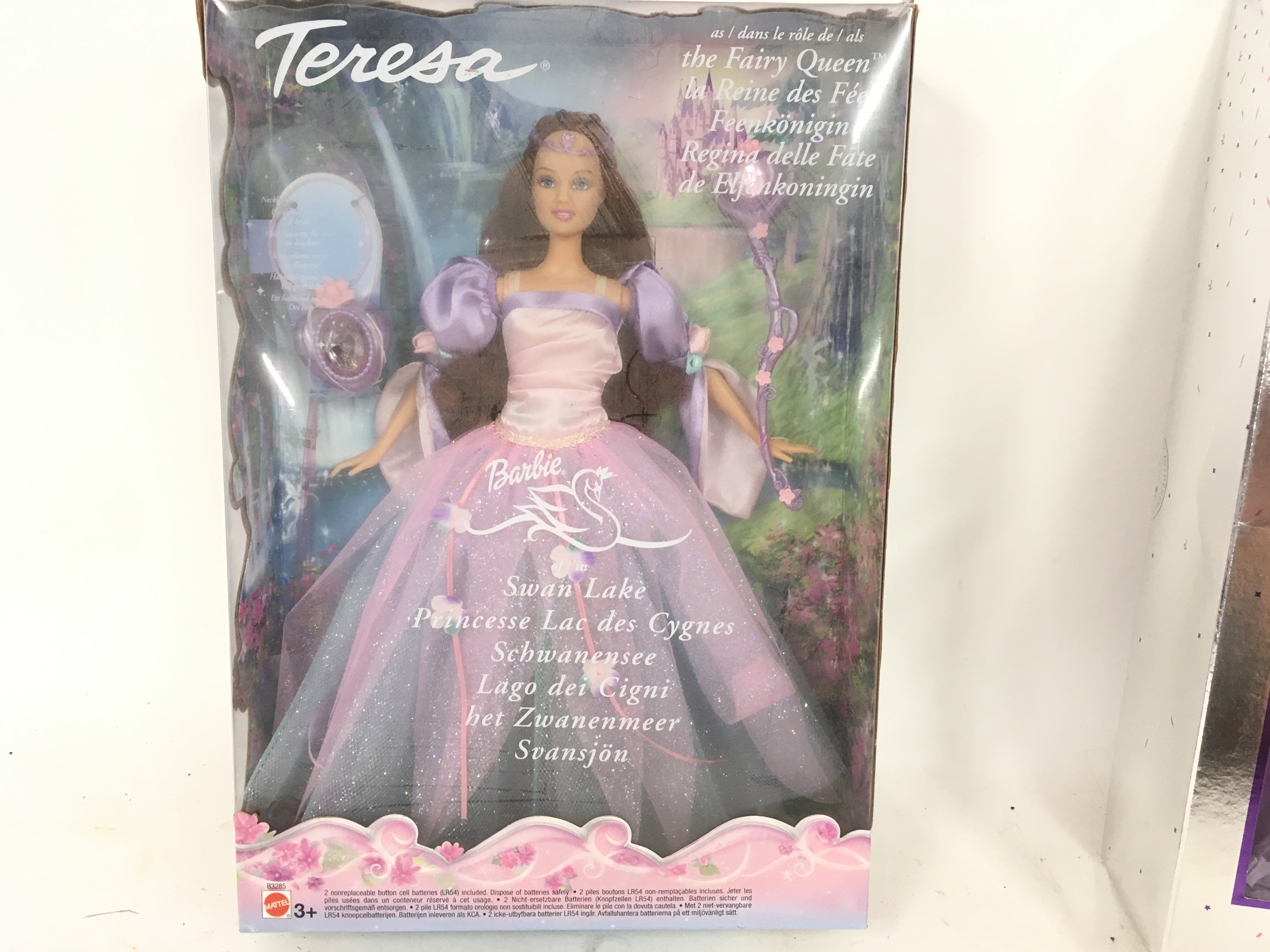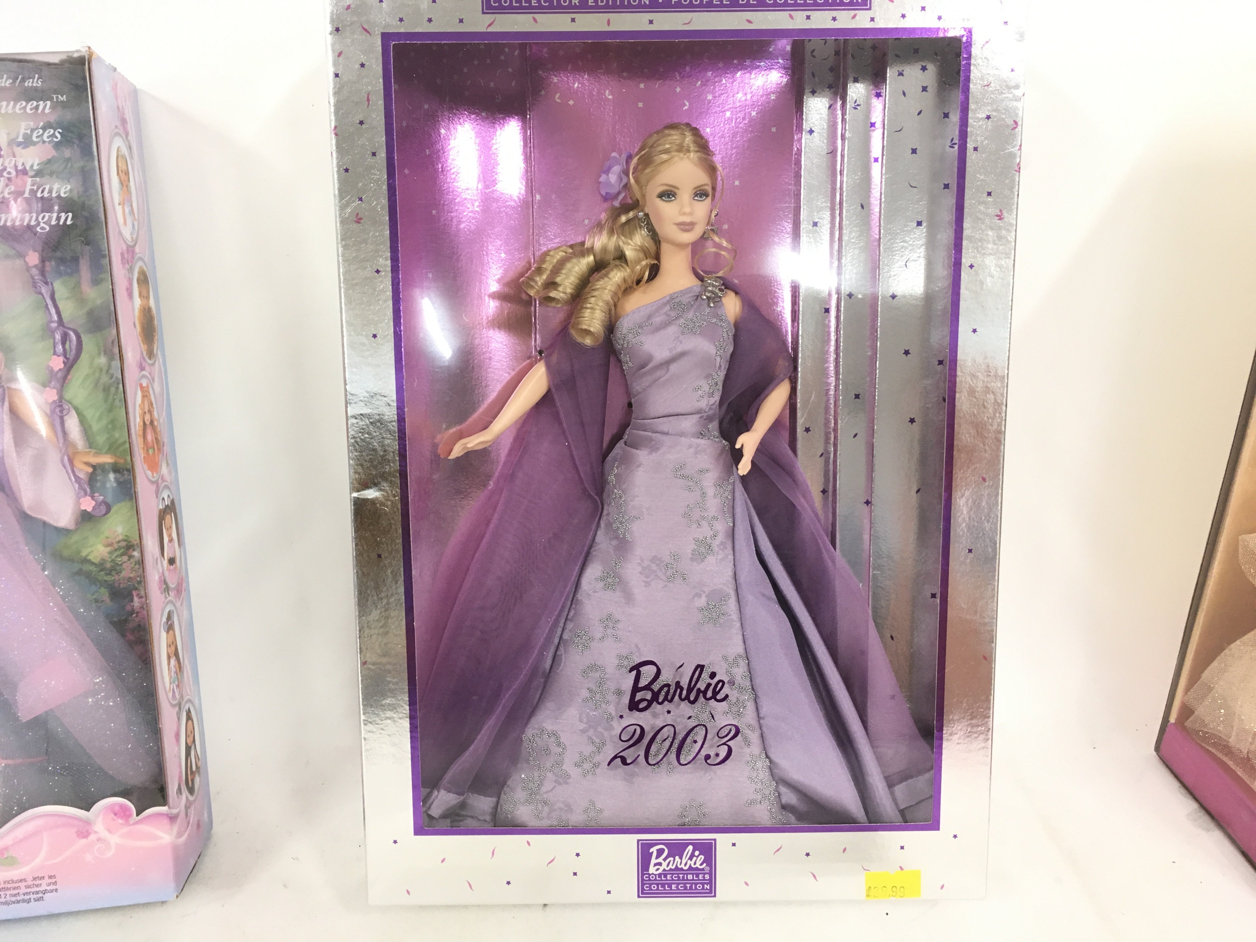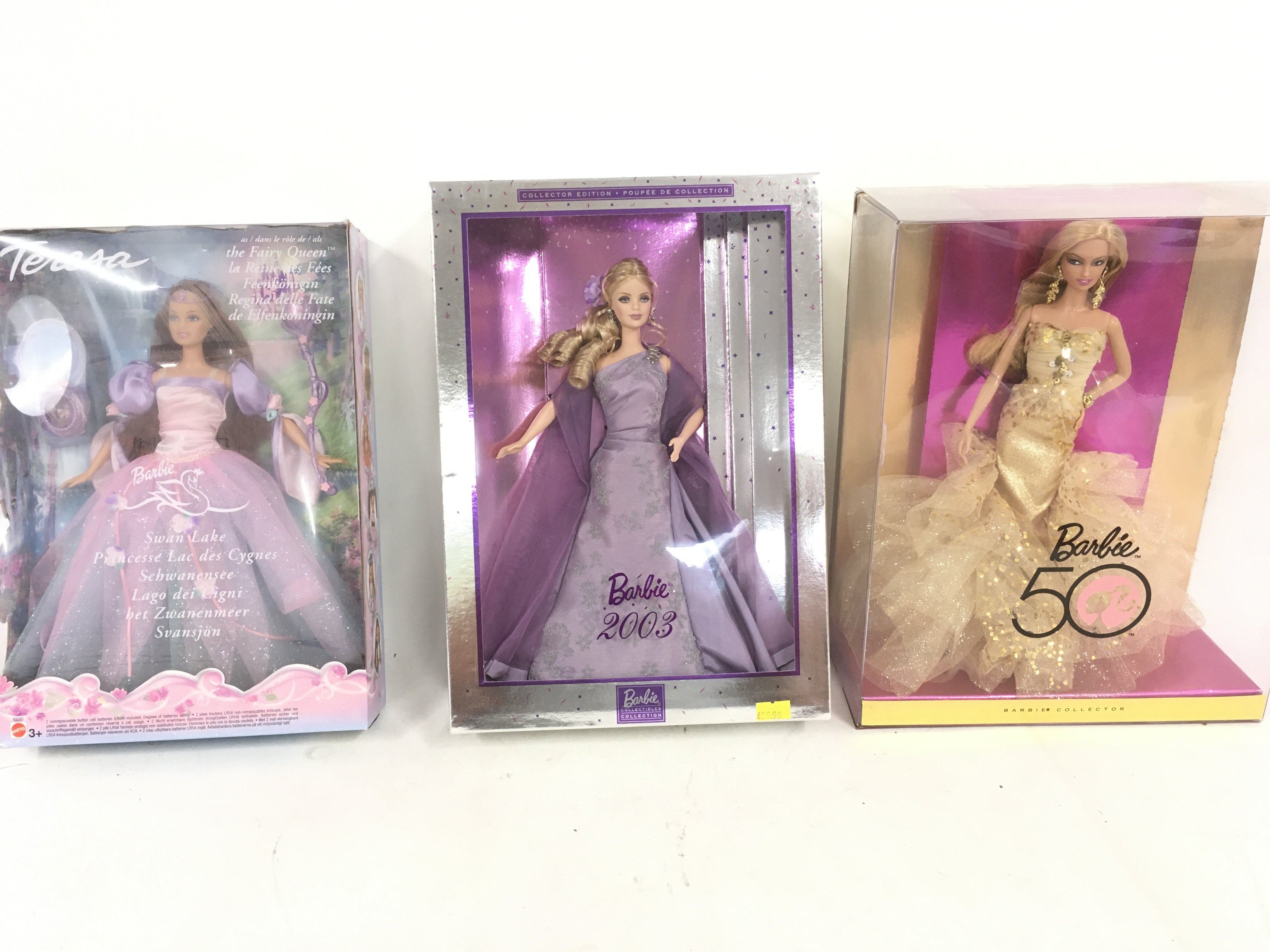 A collection of three boxed Barbie dolls featuring The Fairy Queen..Barbie 2003..Barbie 50. (3)
