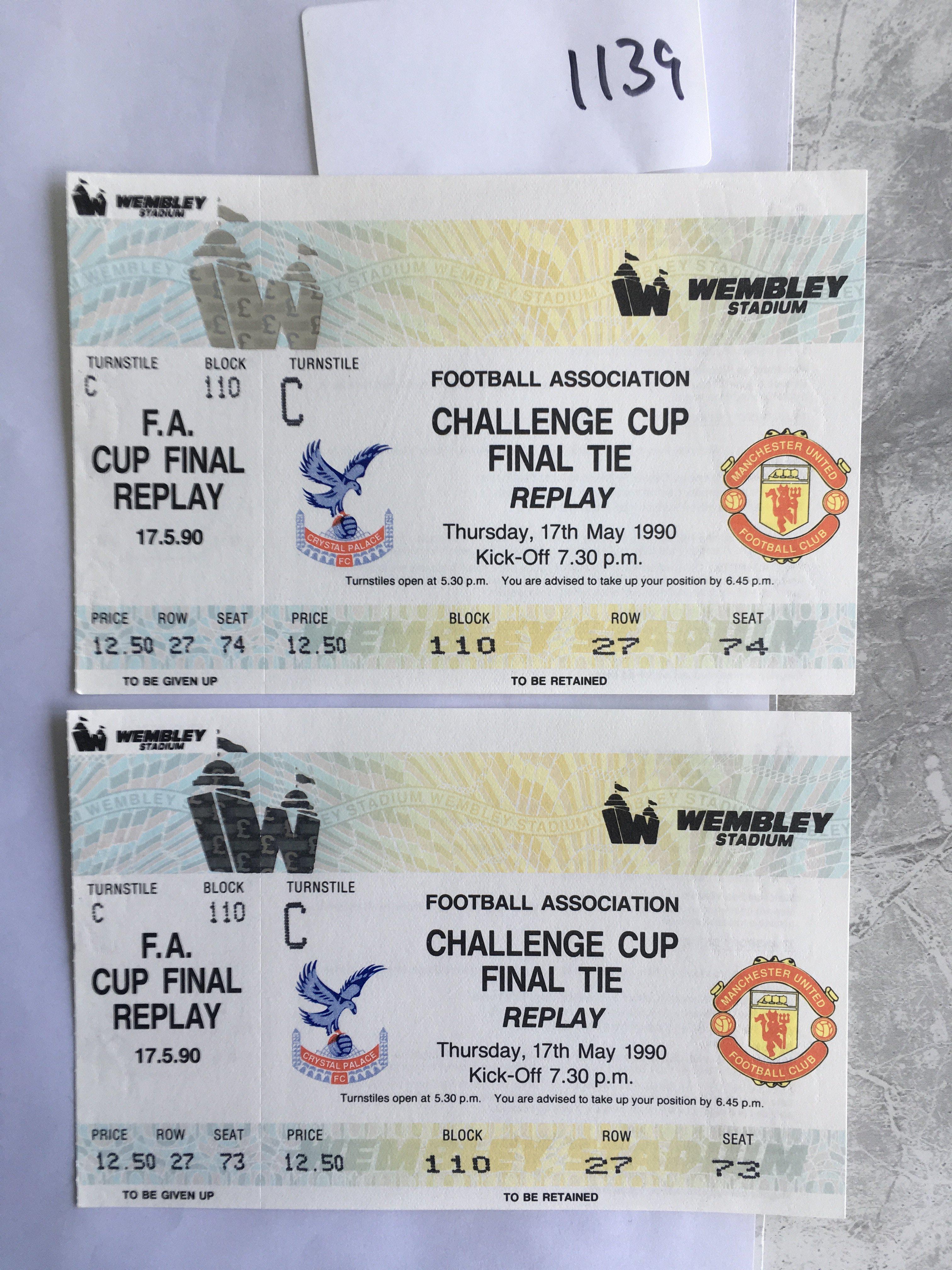 1990 FA Cup Final Replay Unused Manchester United Football Tickets: Pair of unused tickets with counterfoils for the Match where Alex Ferguson won his first Man Utd trophy in the victory over Crystal Palace. (2)