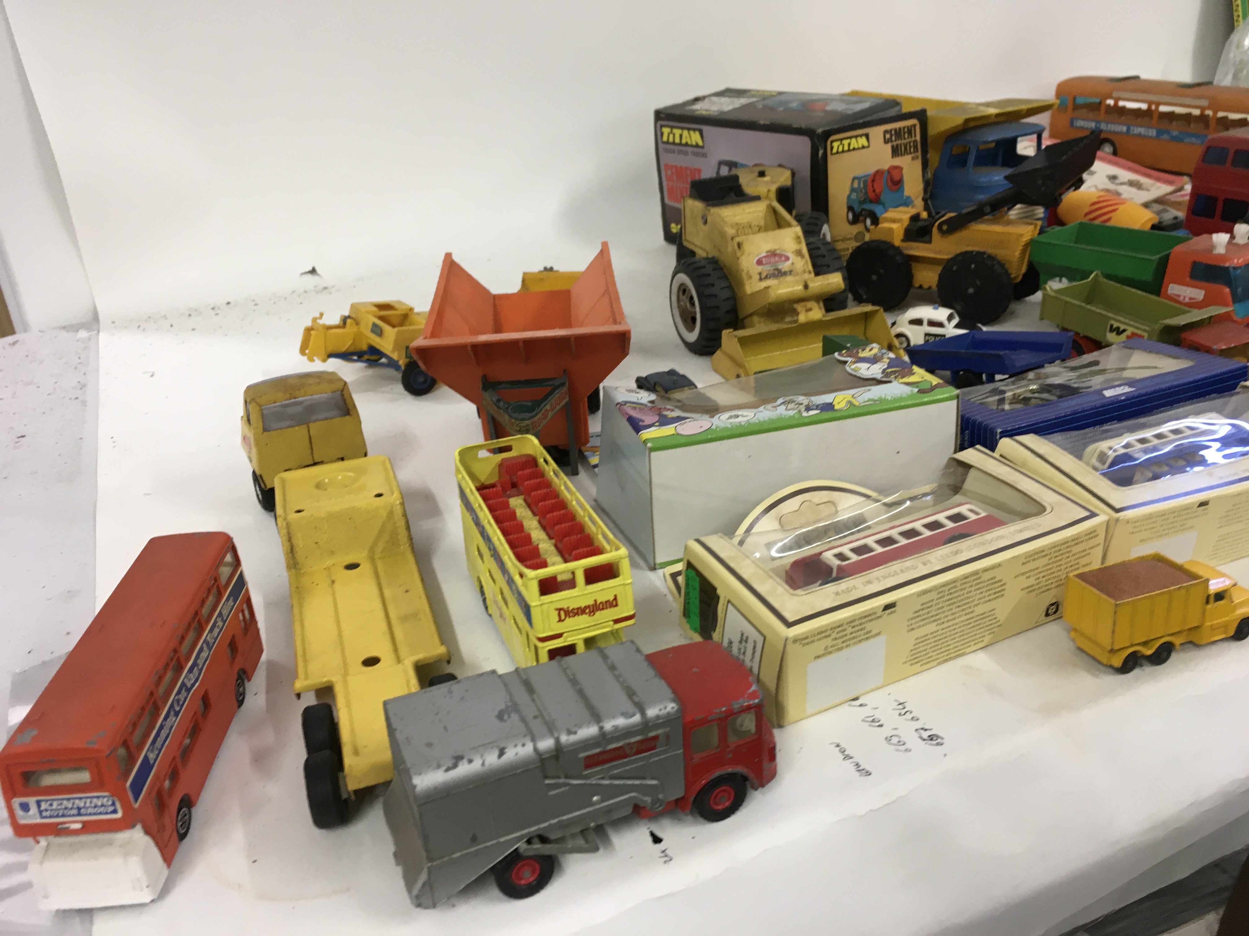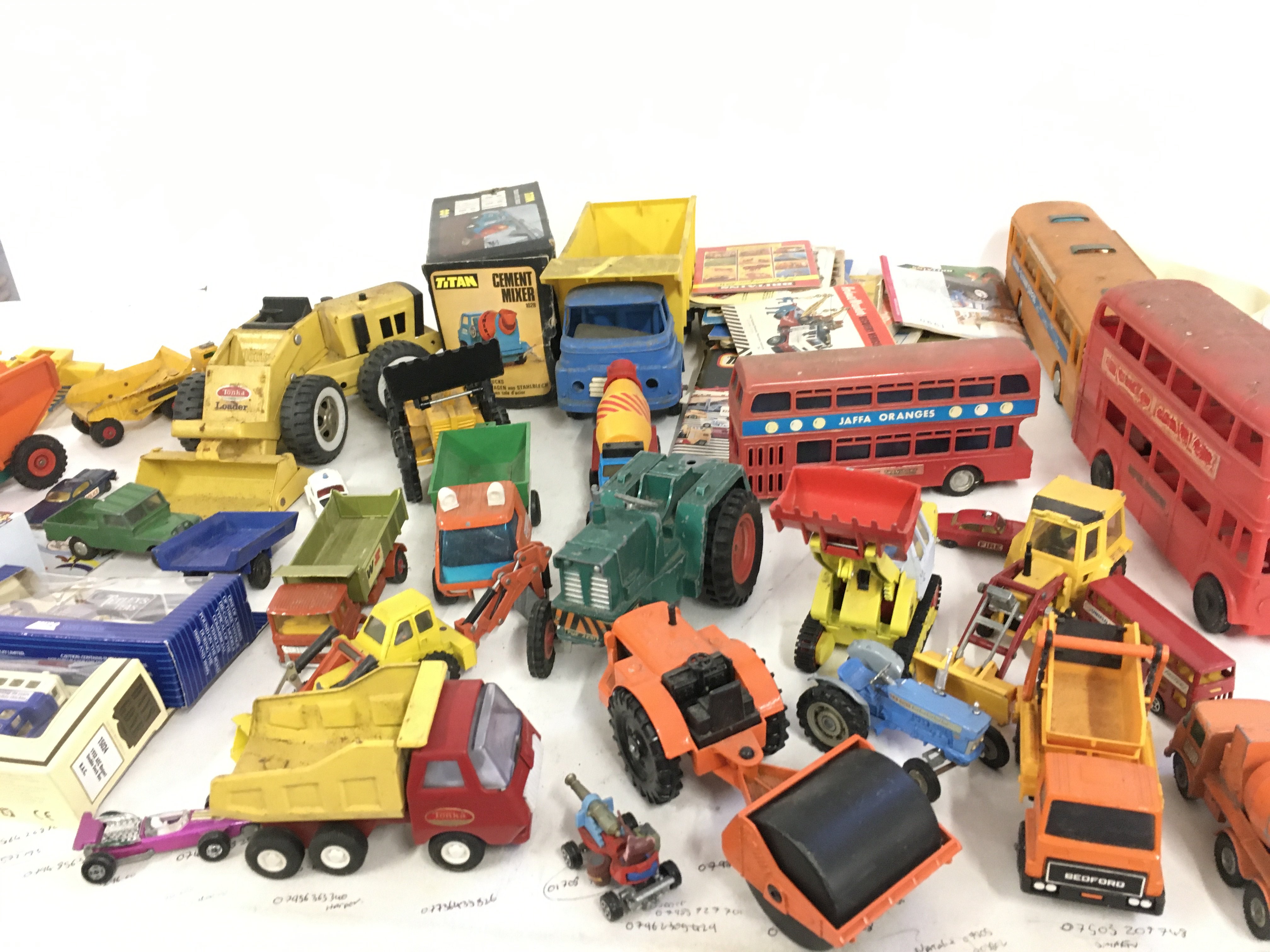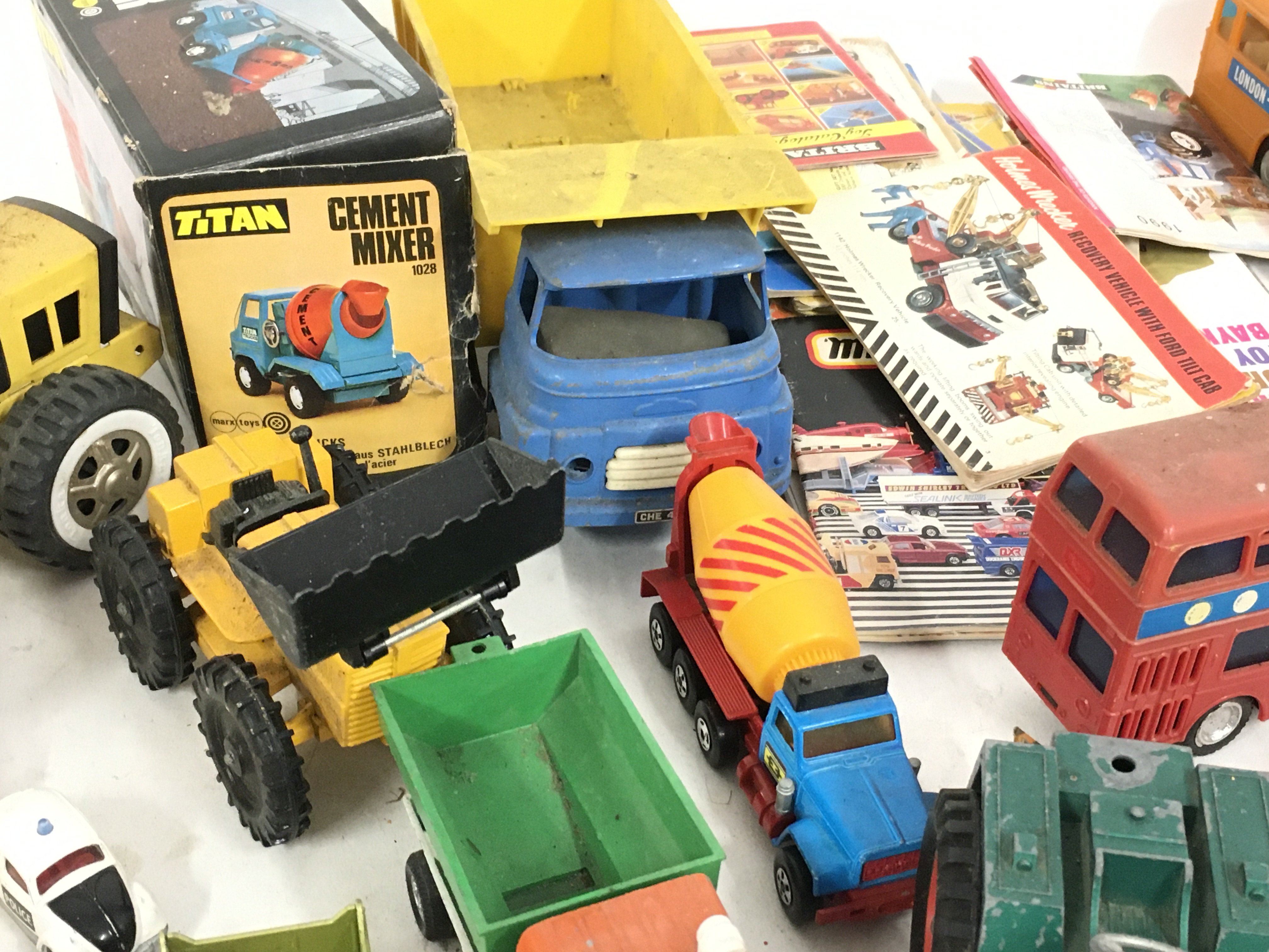 A collection of of Playworn model vehicles both diecast and plastic by various manufacturers. Also includes a number of toy catalogues.