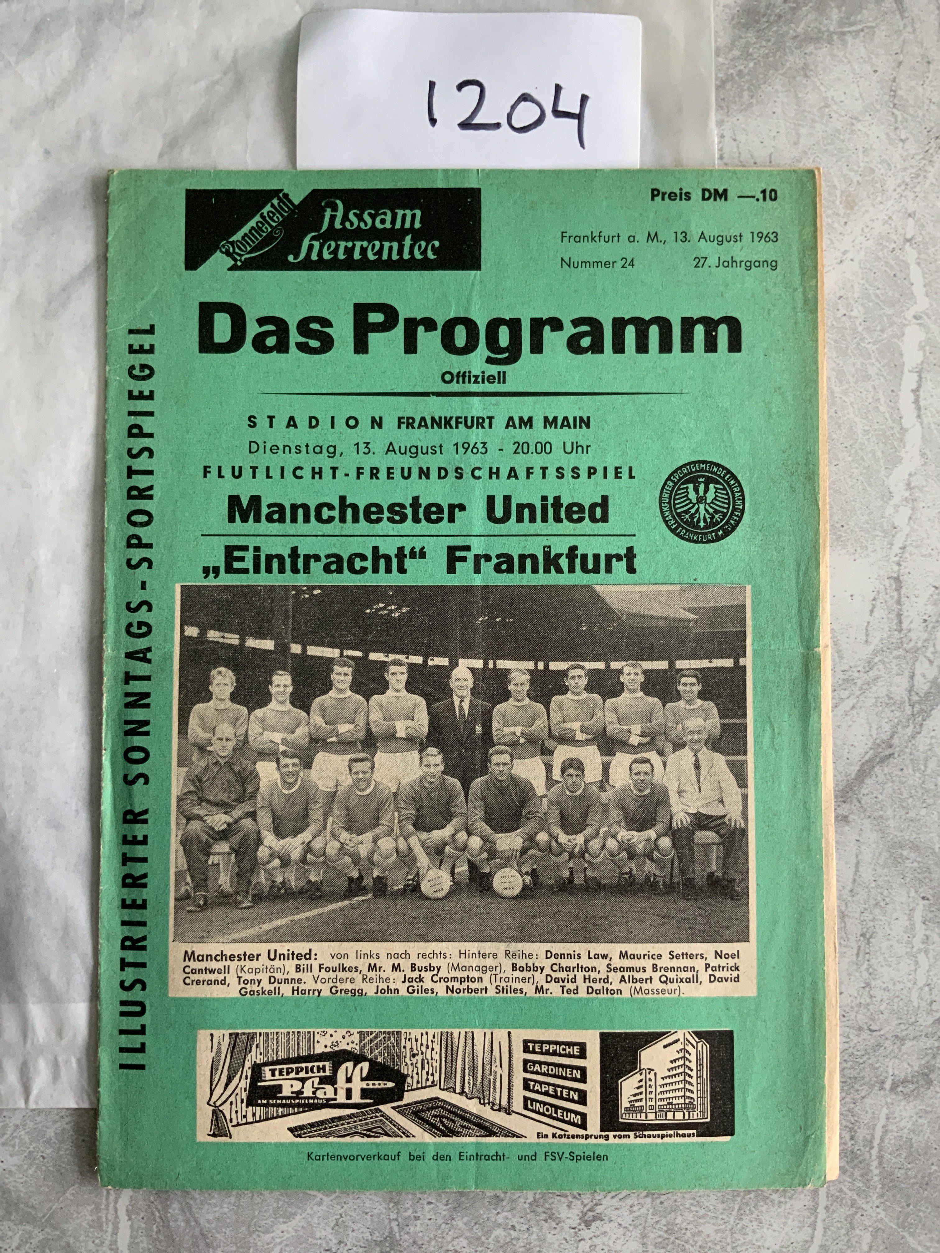 63/64 Eintracht Frankfurt v Manchester United Football Programme: Pre season match dated 13 8 1963 in good condition with team changes.