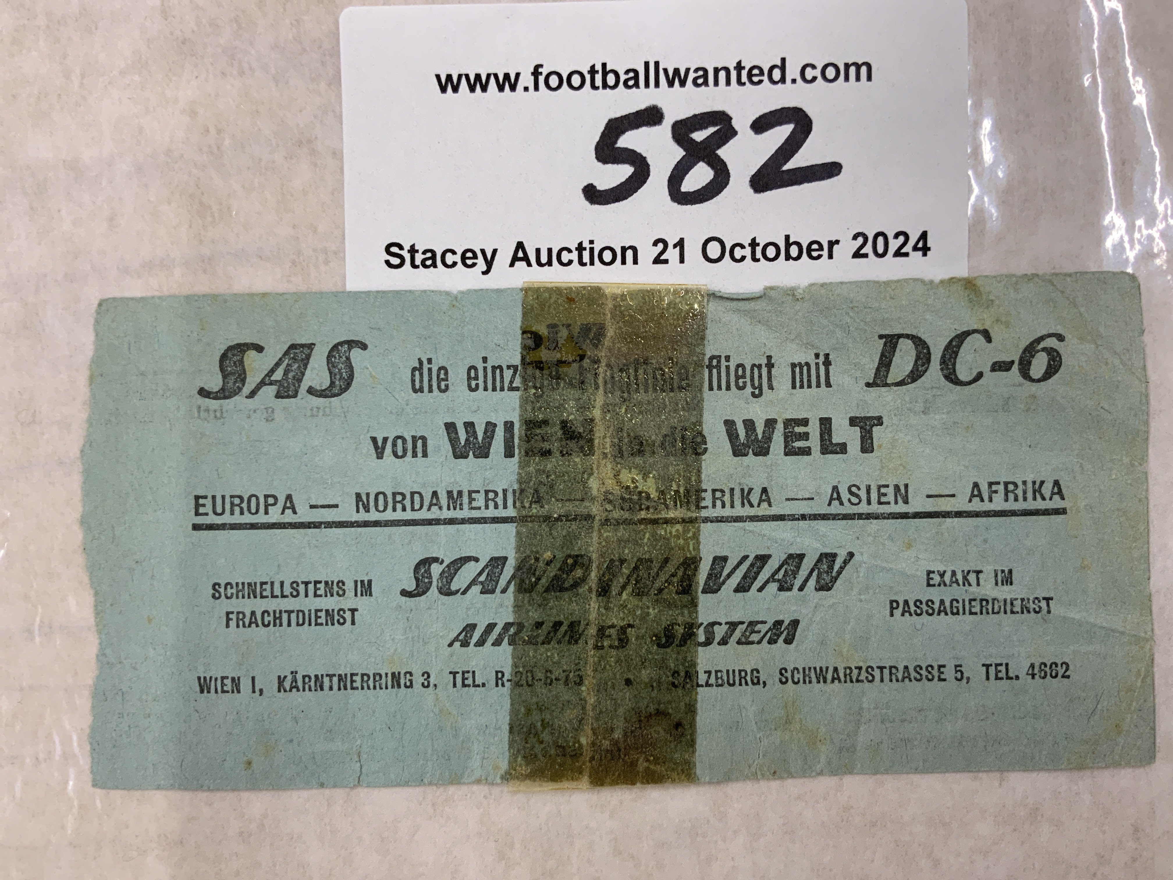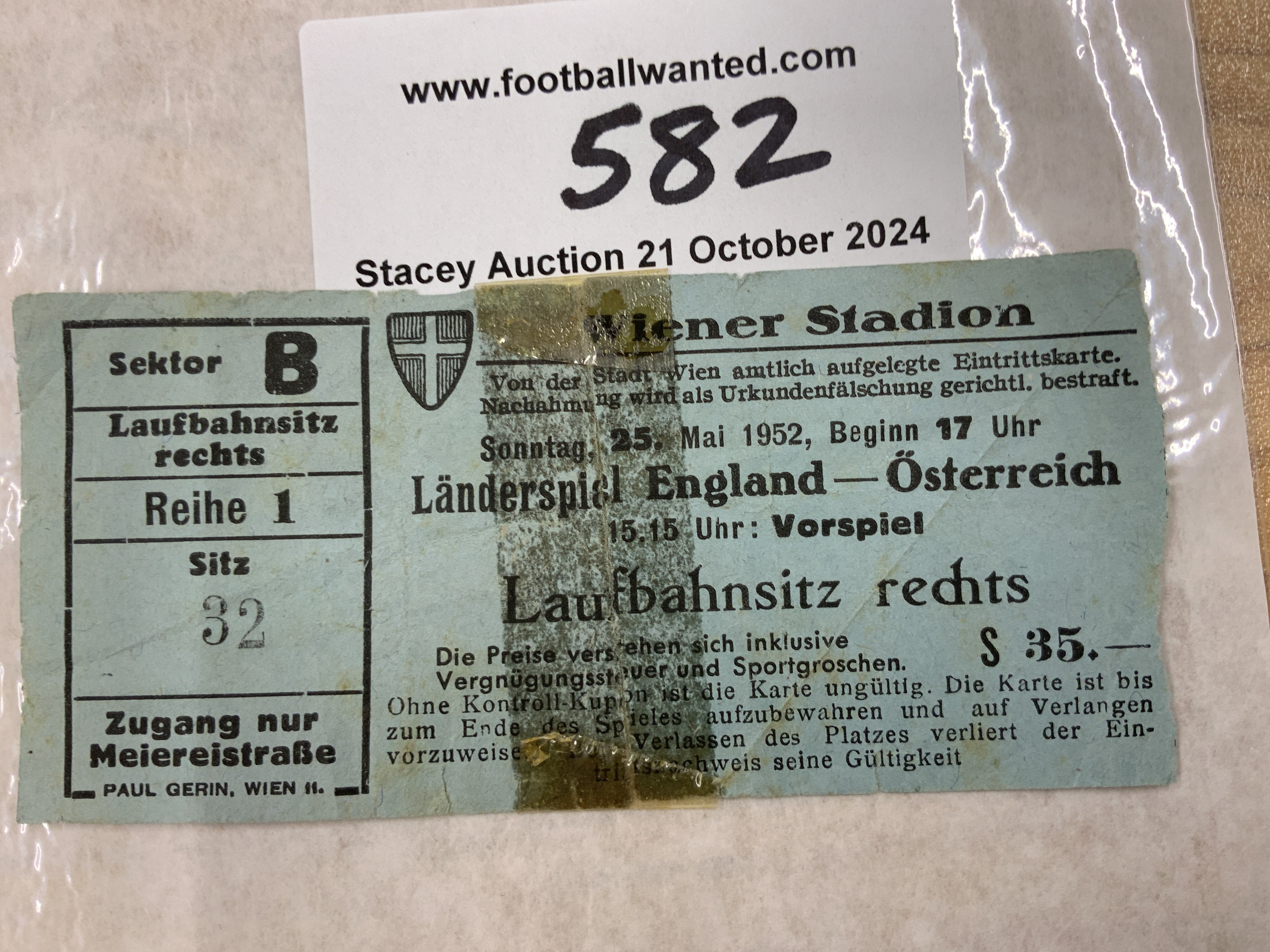 1952 Austria v England Football Ticket: Dated 25 5 1952 played in Vienna and the famous Lion of Vienna match which Nat Lofthouse was famous for. Taped together with cellotape on this full international ticket.