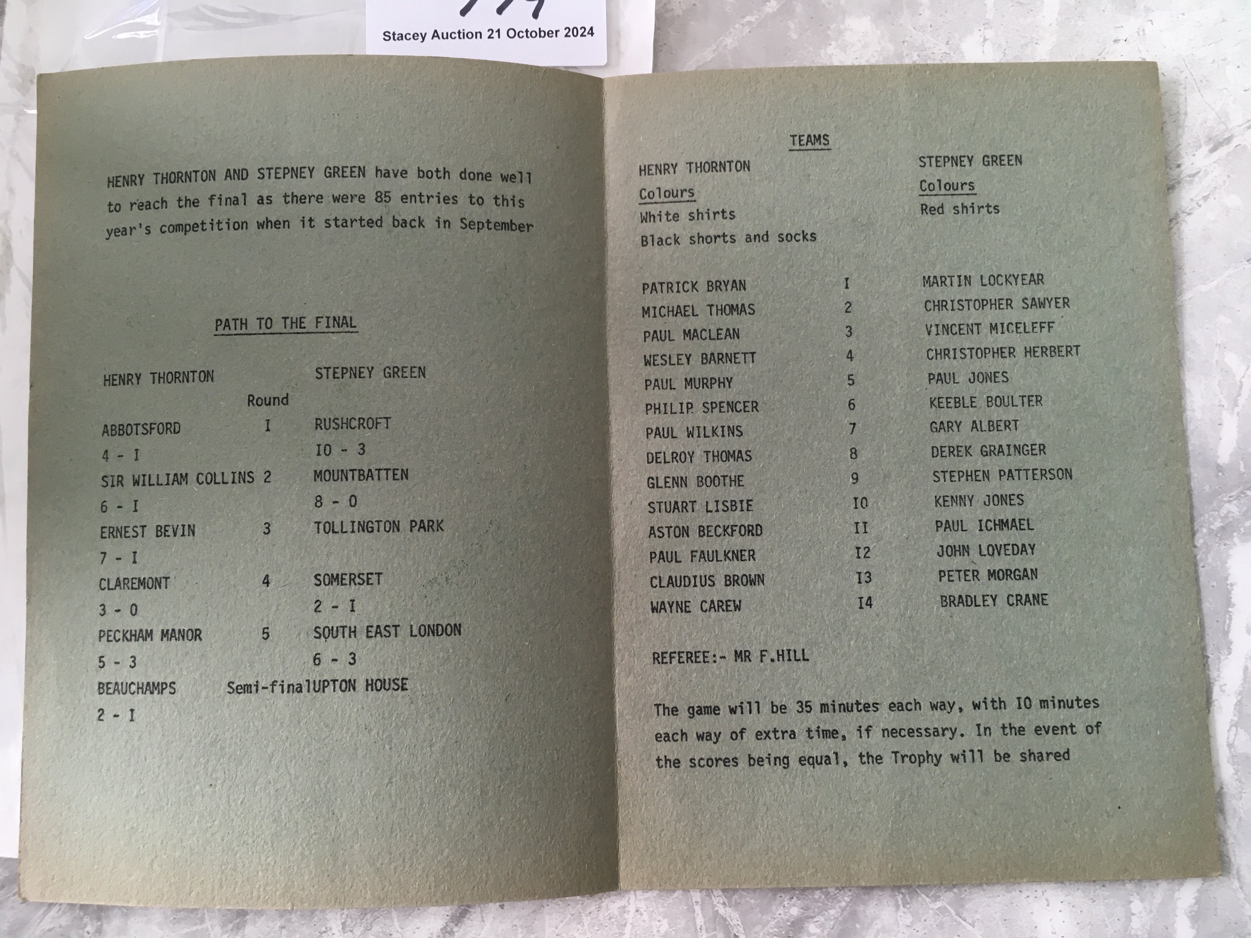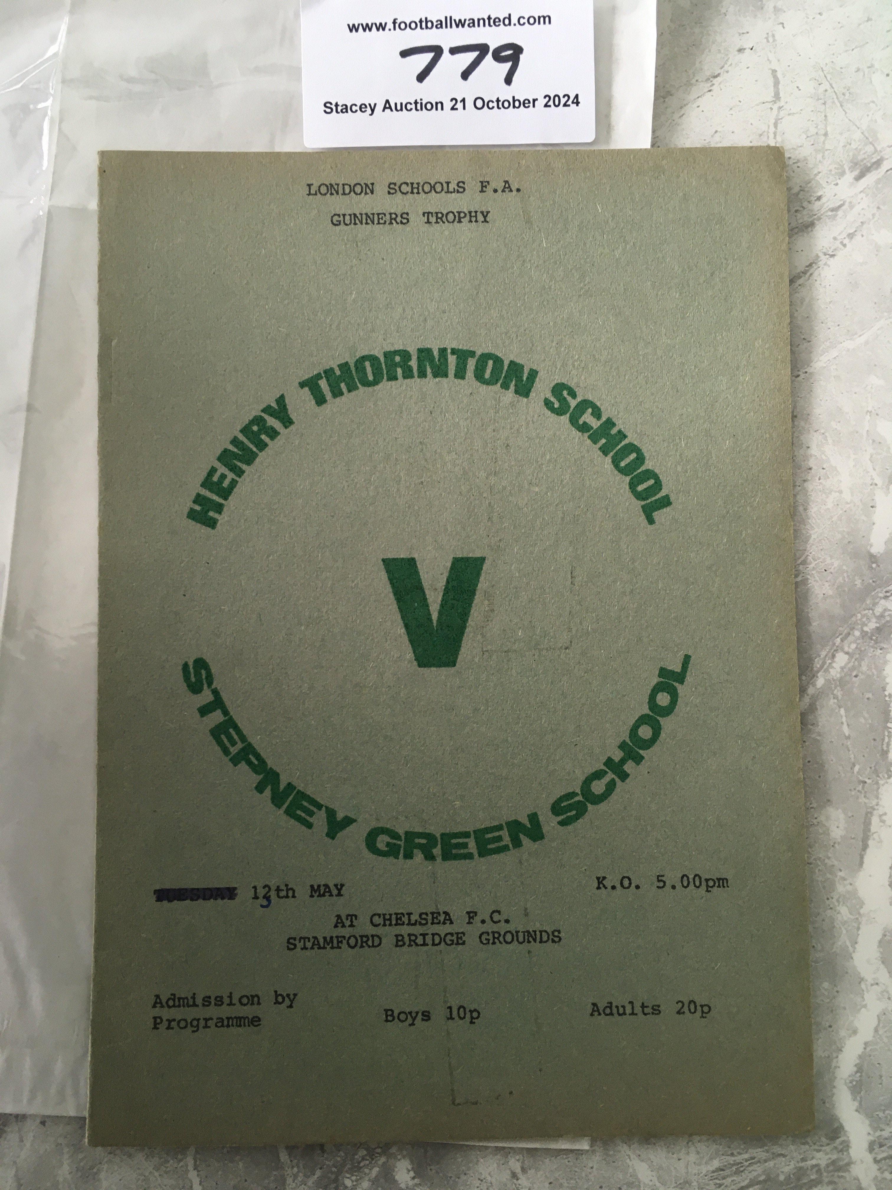 79/80 At Chelsea London Schools Football Programme: Henry Thornton v Stepney Green Schools for the London Schools FA Gunners Trophy Final at Stamford Bridge.