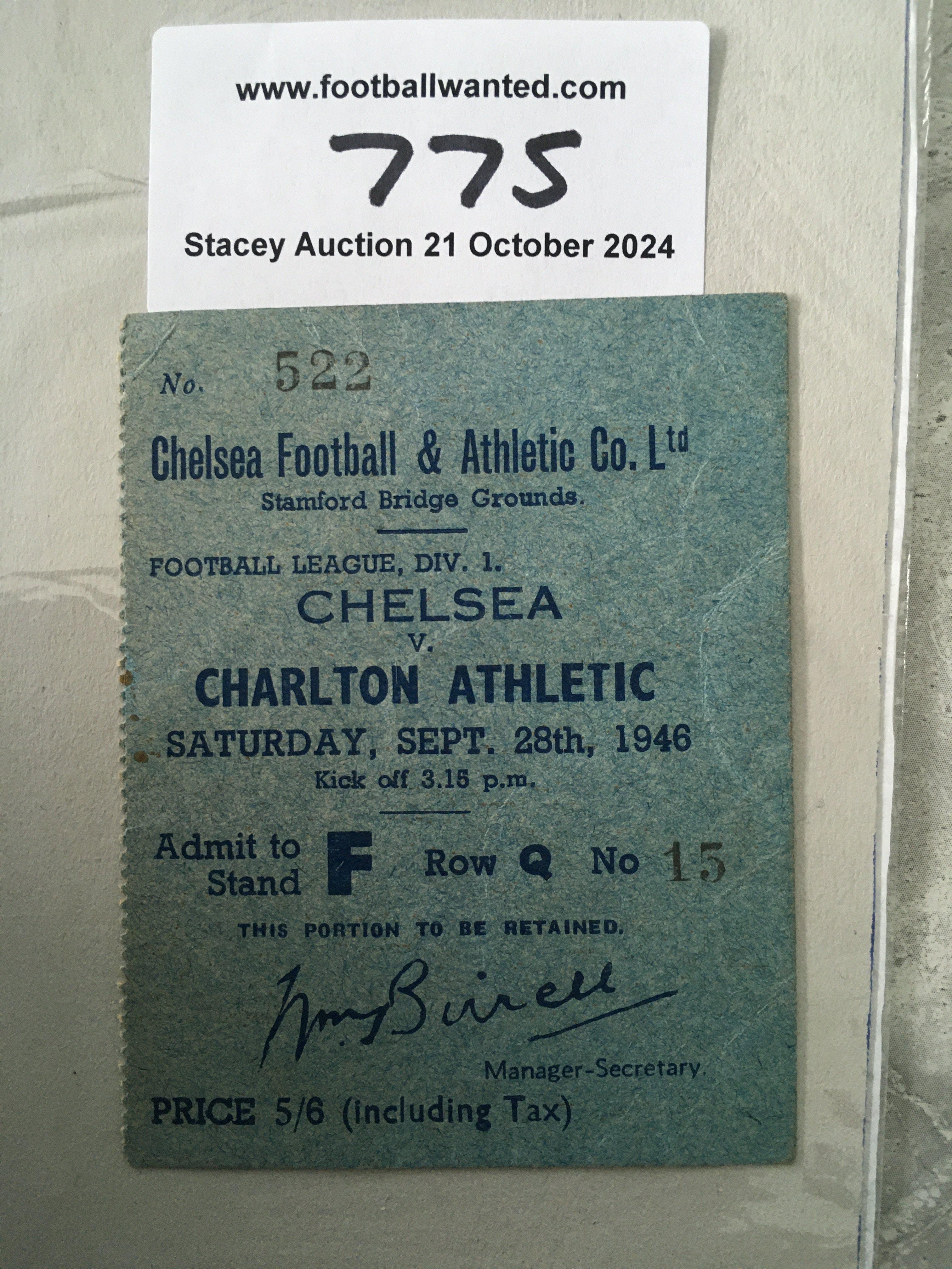 46/47 Chelsea v Charlton Football Ticket: Good condition league match ticket dated 28 9 1946.