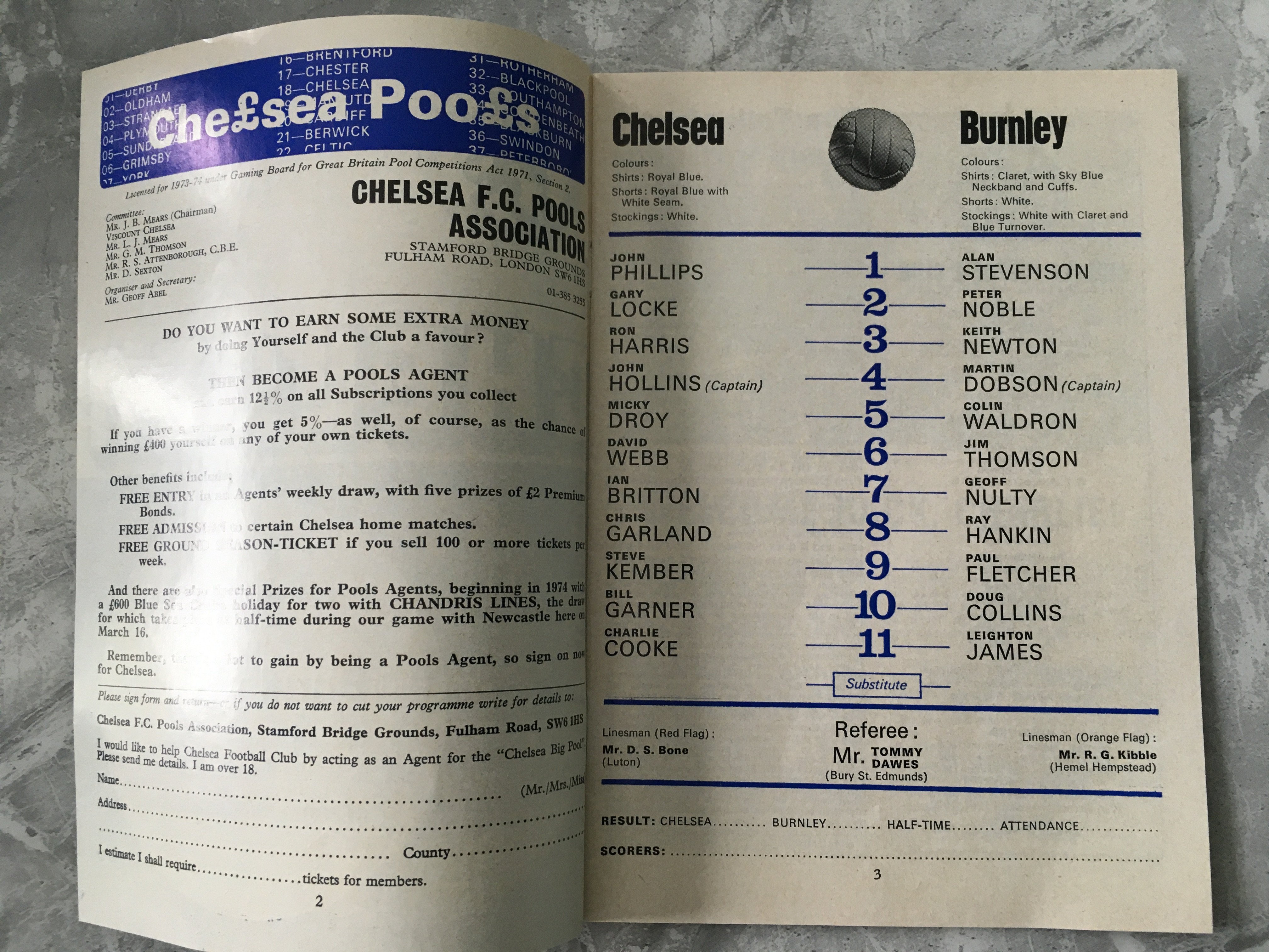 73/74 Chelsea v Burnley Postponed Football Programme: Dated 6 2 1974 in excellent condition with no team changes.