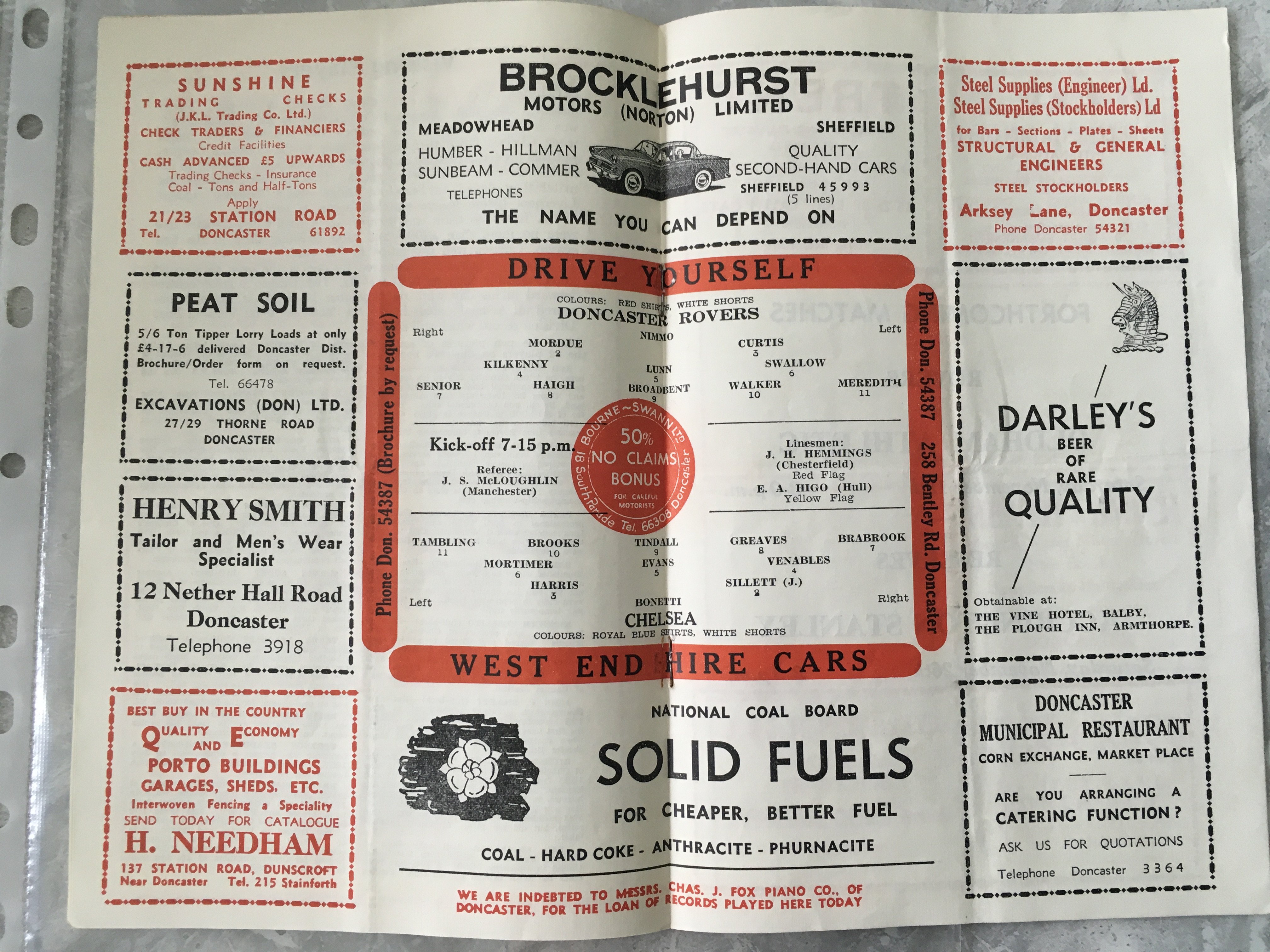 60/61 Doncaster Rovers v Chelsea League Cup Football Programme: Very good condition from the inaugural season with no team changes.