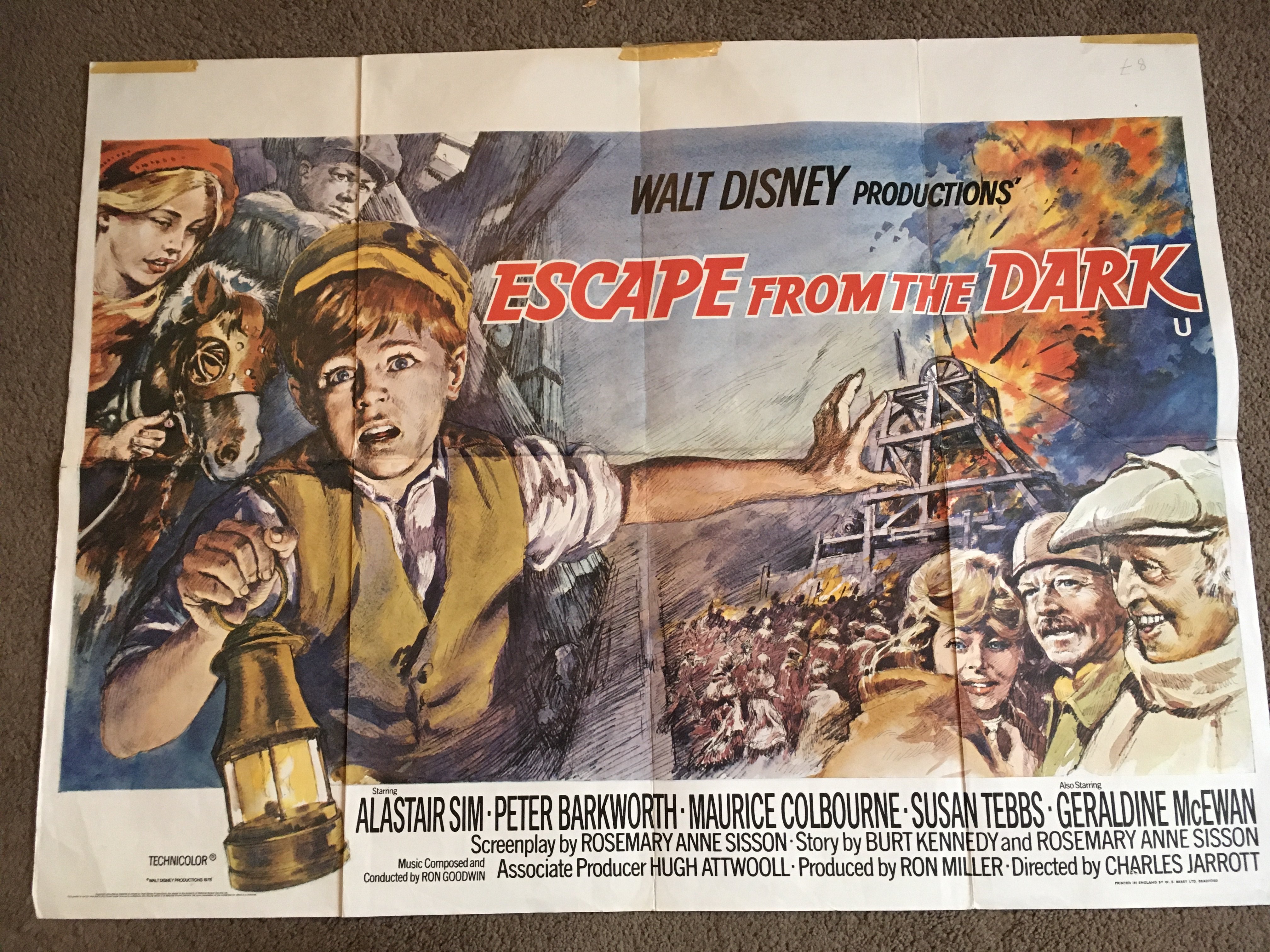 A UK quad film poster for 'Escape From The Dark', sellotape residue in corners and top centre, approx 101cm x 76cm.
